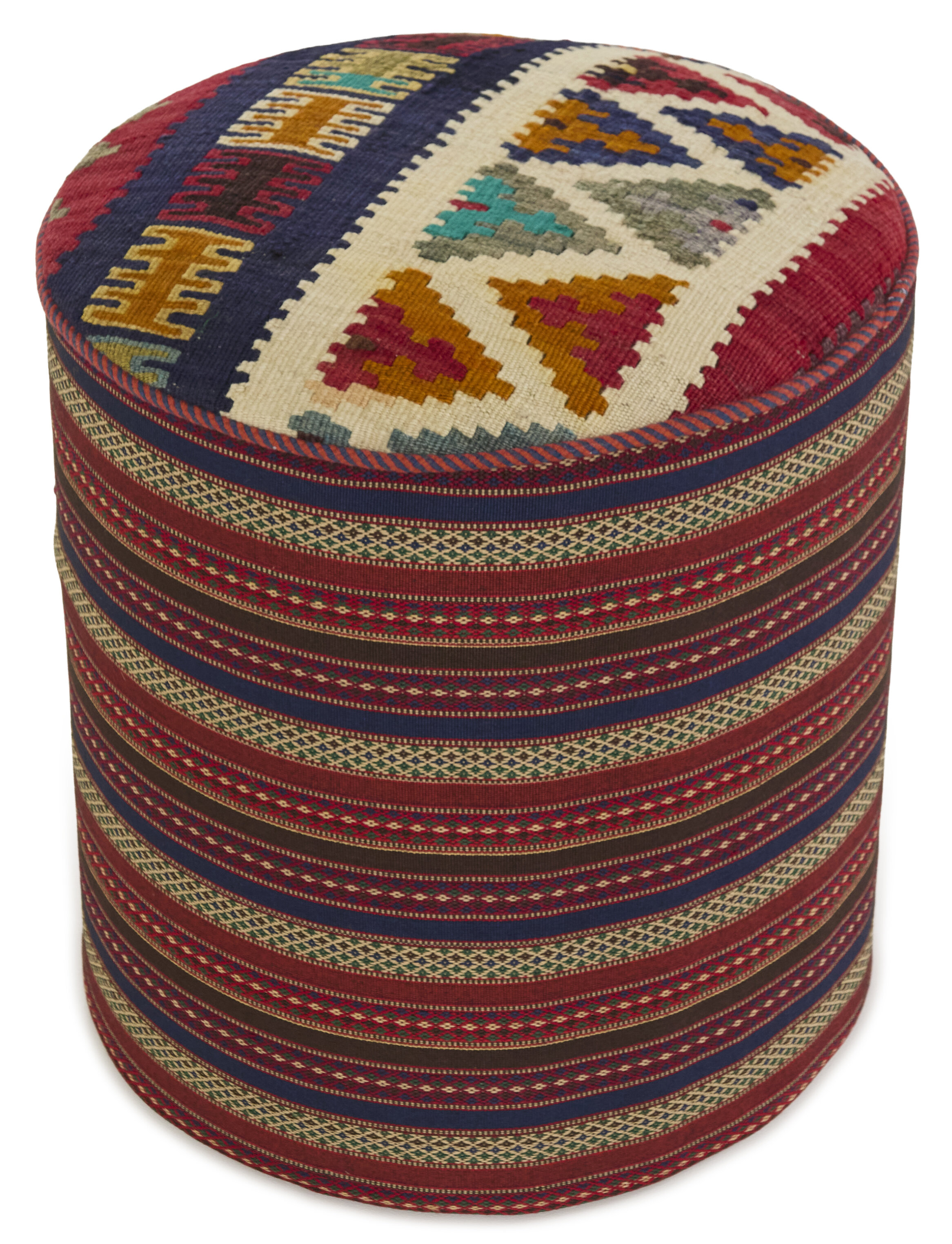 PoufItem no.: 1509772 Size: 45 cm x 45 cmPoufs are produced in the southern part of Persia. The poufs are made from Kelim rugs that are between 20 and 50 years old. The Kelims used for the poufs are hand woven rugs crafted with a special weaving technique, which gives the rugs a thinner, felt-like quality. Both round and square poufs are available, and they are entirely unique. The poufs are naturally coloured.