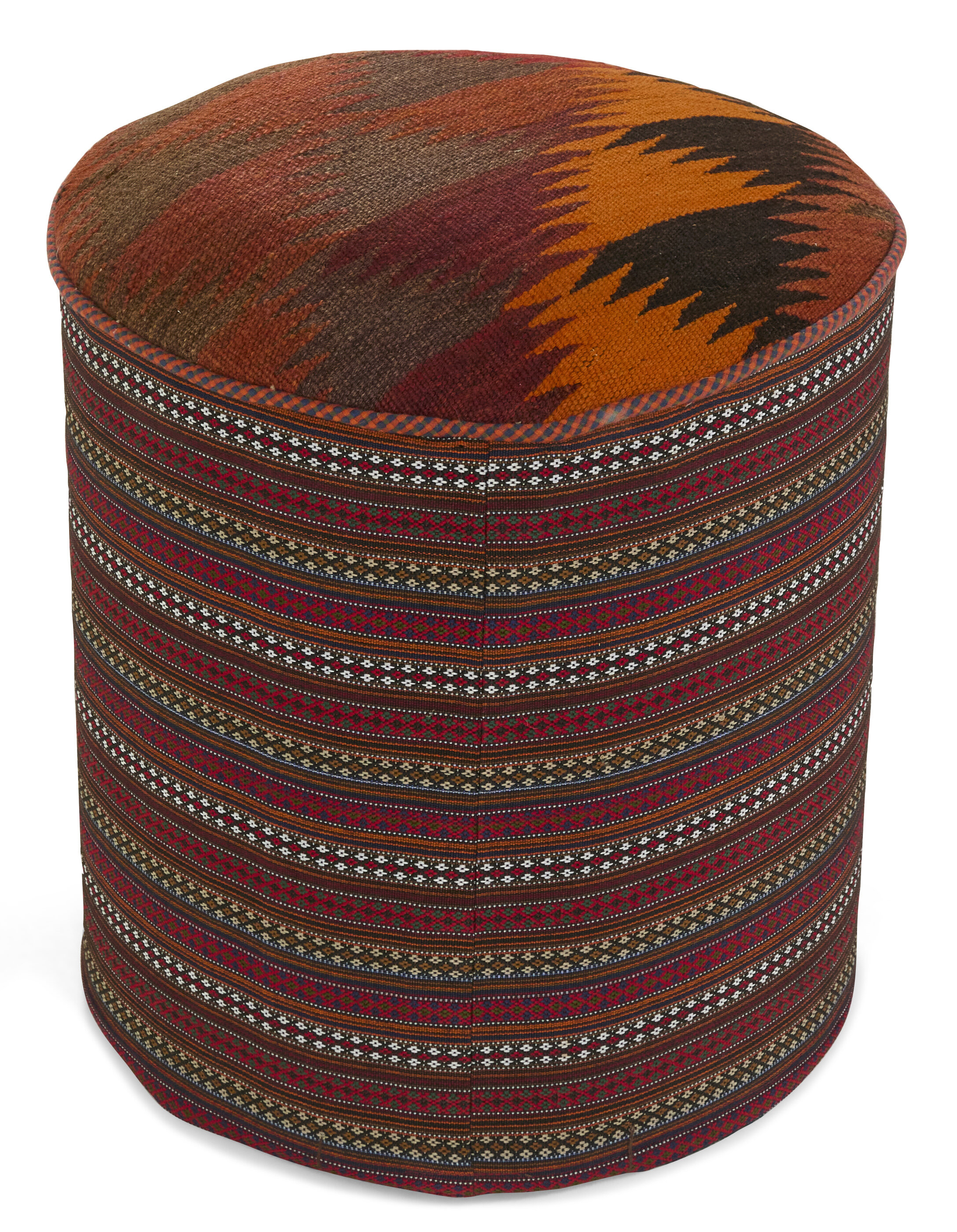 PoufItem no.: 1509794 Size: 45 cm x 45 cmPoufs are produced in the southern part of Persia. The poufs are made from Kelim rugs that are between 20 and 50 years old. The Kelims used for the poufs are hand woven rugs crafted with a special weaving technique, which gives the rugs a thinner, felt-like quality. Both round and square poufs are available, and they are entirely unique. The poufs are naturally coloured.