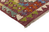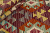 Afghan KelimItem no.: 1519097 Size: 153 cm x 195 cmAfghan Kelim rugs are hand woven by Turkmens in northern Afghanistan. Kelim is the name of a common Persian weave, but also of the technology used in the production. Kelims are primarily produced by nomads and are pile-less rugs, which are also used for bags, as wall decoration, or as curtains for tents. A natural colour scale with geometrical symbols and octagons is used.