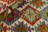 Afghan KelimItem no.: 1520500 Size: 117 cm x 194 cmAfghan Kelim rugs are hand woven by Turkmens in northern Afghanistan. Kelim is the name of a common Persian weave, but also of the technology used in the production. Kelims are primarily produced by nomads and are pile-less rugs, which are also used for bags, as wall decoration, or as curtains for tents. A natural colour scale with geometrical symbols and octagons is used.