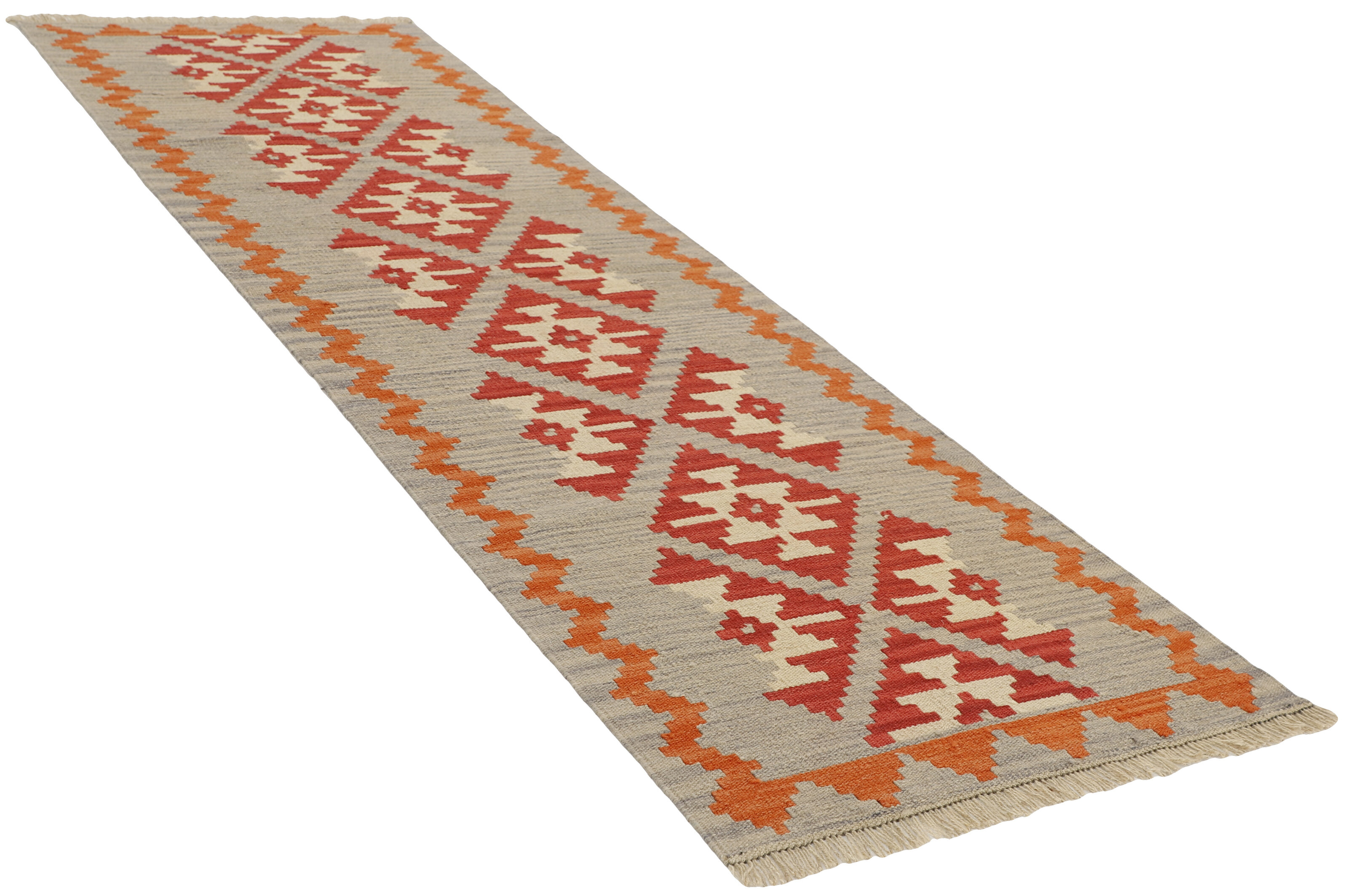 KelimItem no.: 1519218 Size: 83 cm x 261 cmThese Kelims are flat woven rugs, woven by nomads in western Persia. A special weaving technique is used, giving the rug a thinner, flatter surface, with no pile. Kelims are also quicker to produce, compared to common Oriental rugs. The colours are natural and no two rugs are alike. Kelims are produced in several regions and under many names, but the most well known Kelim types are Seneh, Sumak, Fars, and Kelim Gashghai.