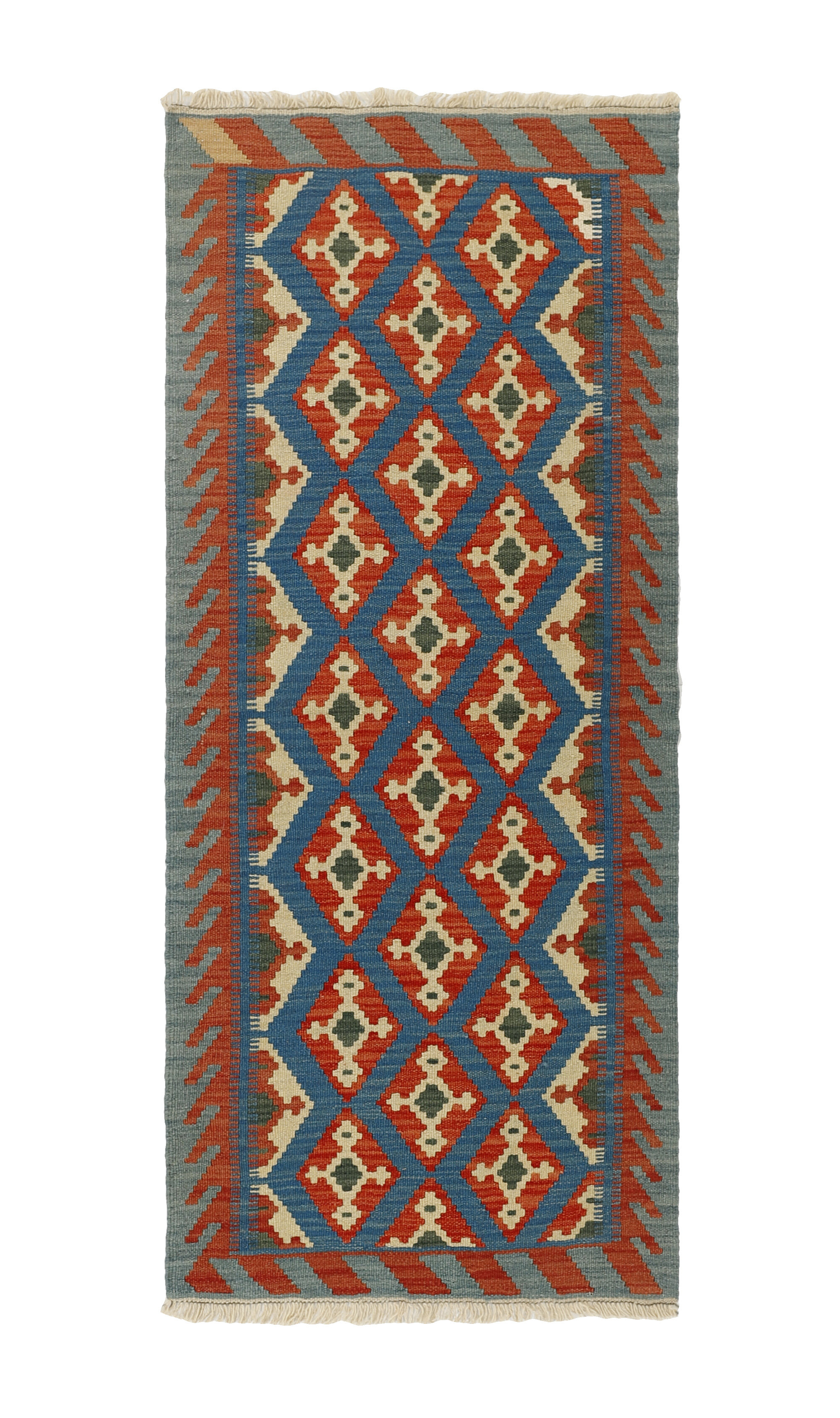 KelimItem no.: 1519224 Size: 83 cm x 198 cmThese Kelims are flat woven rugs, woven by nomads in western Persia. A special weaving technique is used, giving the rug a thinner, flatter surface, with no pile. Kelims are also quicker to produce, compared to common Oriental rugs. The colours are natural and no two rugs are alike. Kelims are produced in several regions and under many names, but the most well known Kelim types are Seneh, Sumak, Fars, and Kelim Gashghai.
