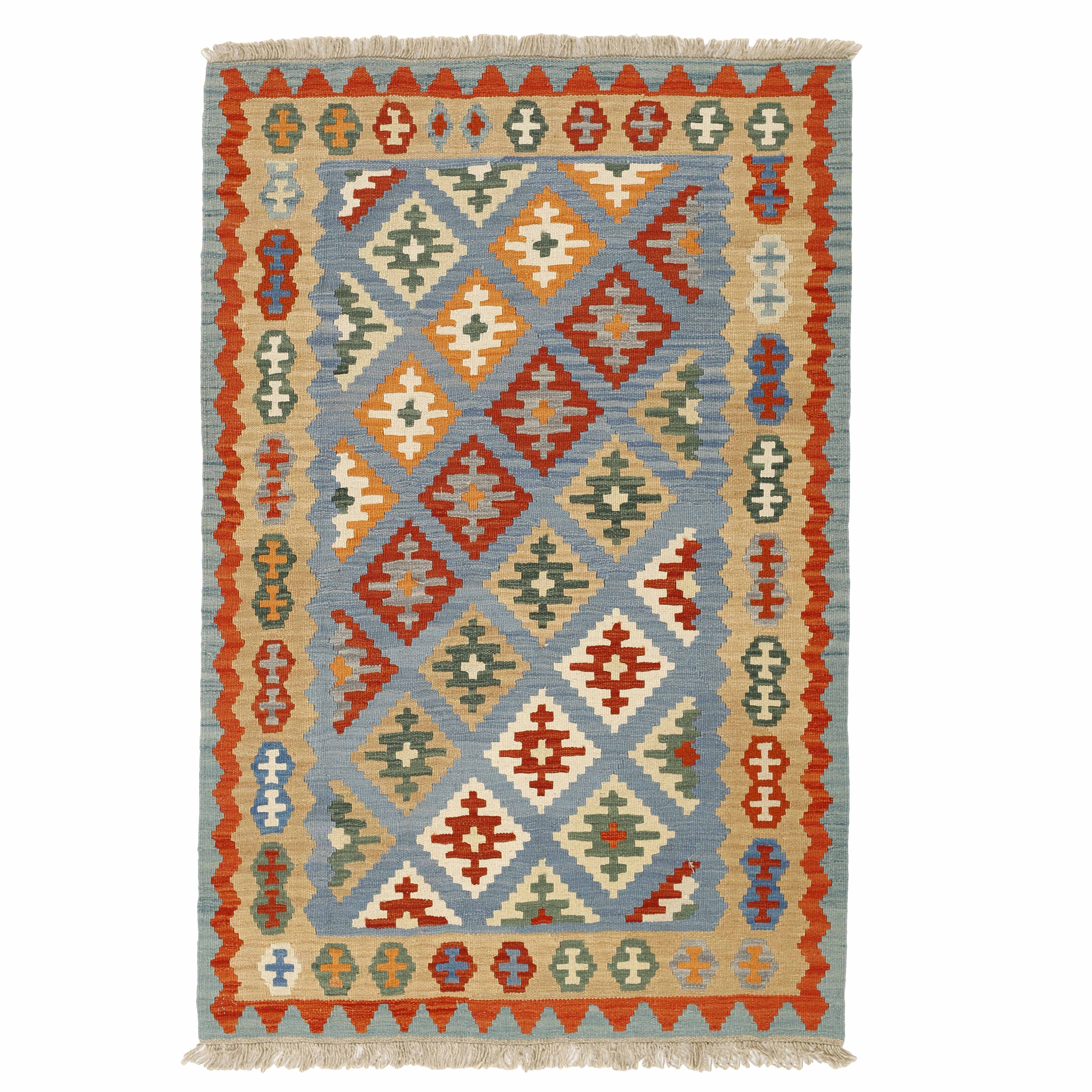 KelimItem no.: 1519270 Size: 120 cm x 181 cmThese Kelims are flat woven rugs, woven by nomads in western Persia. A special weaving technique is used, giving the rug a thinner, flatter surface, with no pile. Kelims are also quicker to produce, compared to common Oriental rugs. The colours are natural and no two rugs are alike. Kelims are produced in several regions and under many names, but the most well known Kelim types are Seneh, Sumak, Fars, and Kelim Gashghai.