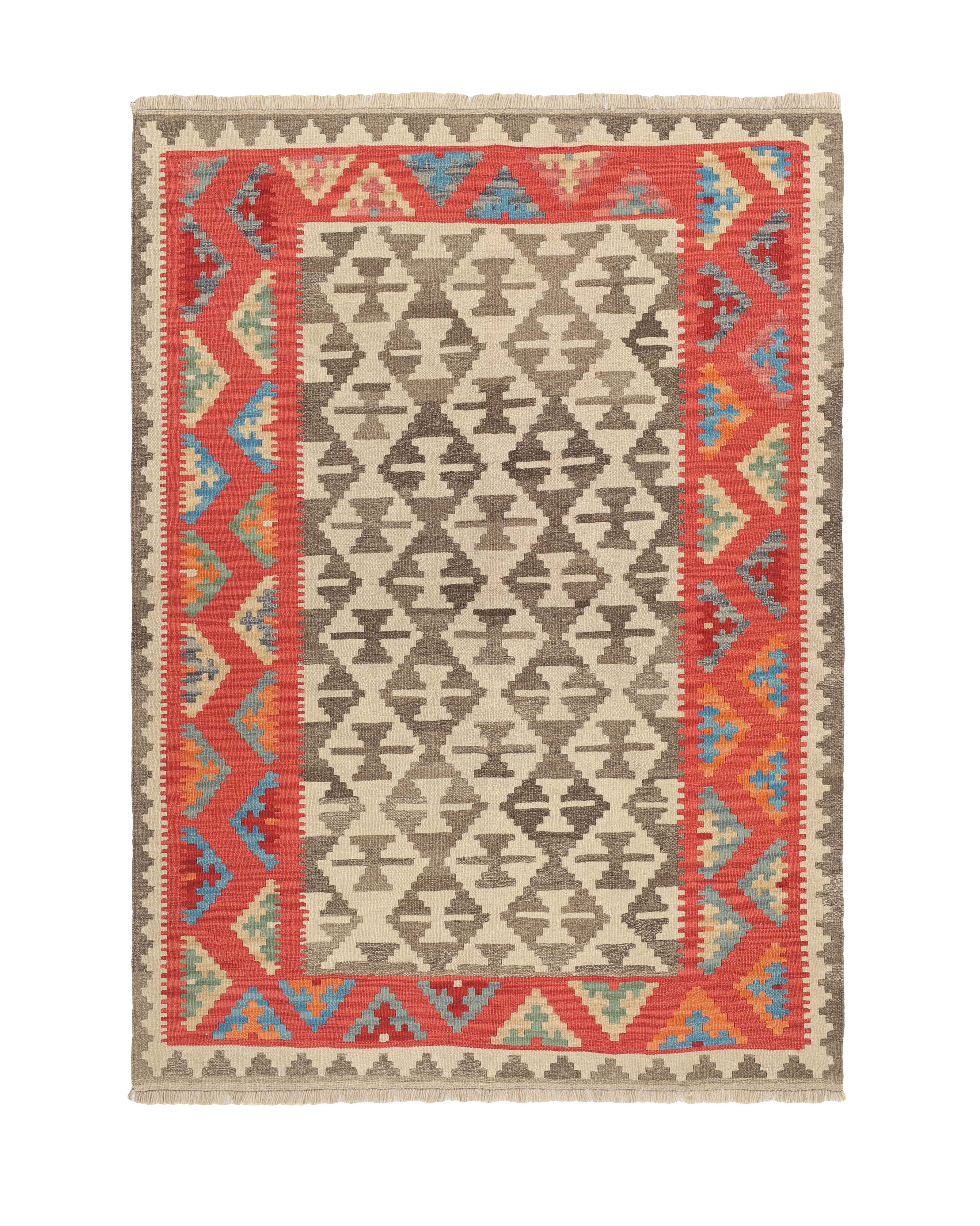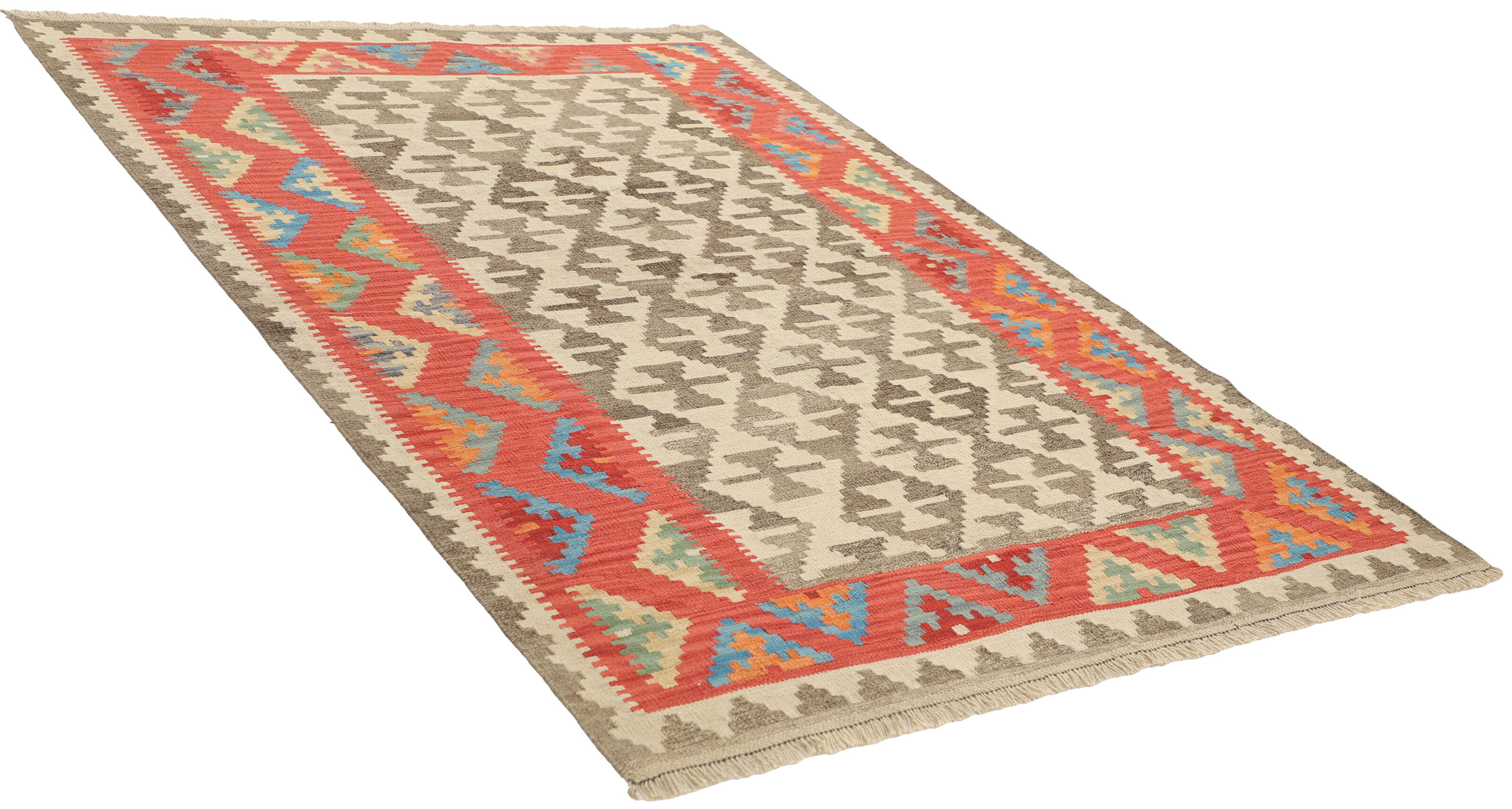 KelimItem no.: 1519360 Size: 160 cm x 216 cmThese Kelims are flat woven rugs, woven by nomads in western Persia. A special weaving technique is used, giving the rug a thinner, flatter surface, with no pile. Kelims are also quicker to produce, compared to common Oriental rugs. The colours are natural and no two rugs are alike. Kelims are produced in several regions and under many names, but the most well known Kelim types are Seneh, Sumak, Fars, and Kelim Gashghai.