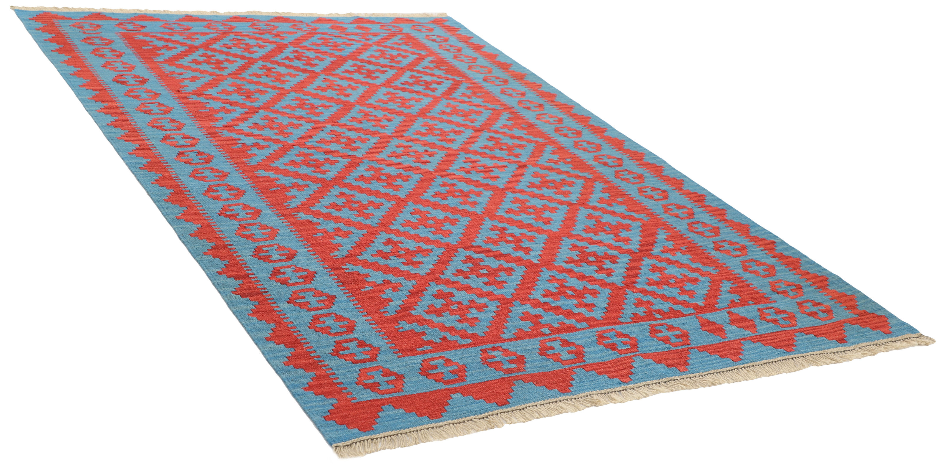 KelimItem no.: 1519366 Size: 166 cm x 236 cmThese Kelims are flat woven rugs, woven by nomads in western Persia. A special weaving technique is used, giving the rug a thinner, flatter surface, with no pile. Kelims are also quicker to produce, compared to common Oriental rugs. The colours are natural and no two rugs are alike. Kelims are produced in several regions and under many names, but the most well known Kelim types are Seneh, Sumak, Fars, and Kelim Gashghai.