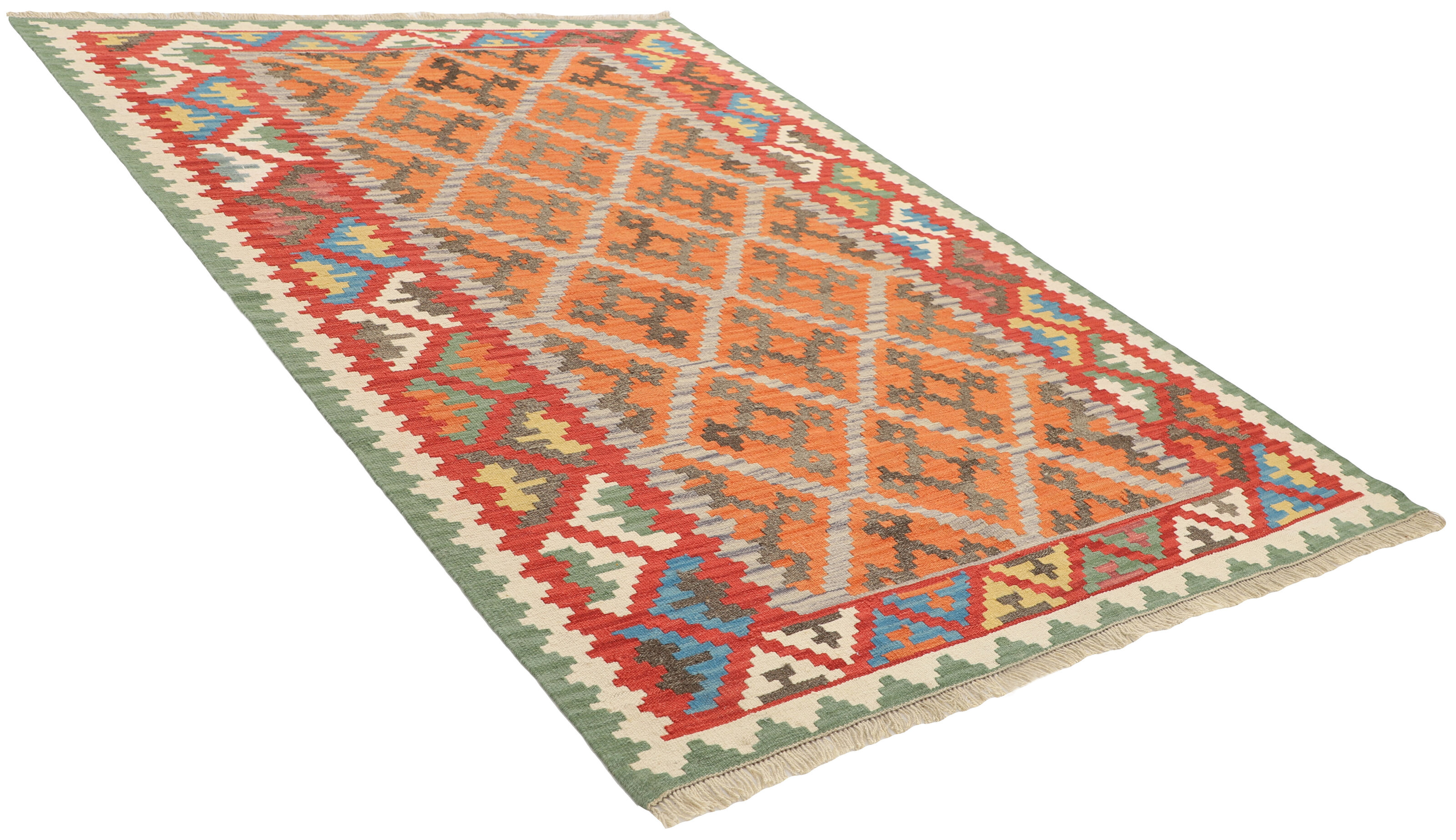 KelimItem no.: 1519370 Size: 172 cm x 245 cmThese Kelims are flat woven rugs, woven by nomads in western Persia. A special weaving technique is used, giving the rug a thinner, flatter surface, with no pile. Kelims are also quicker to produce, compared to common Oriental rugs. The colours are natural and no two rugs are alike. Kelims are produced in several regions and under many names, but the most well known Kelim types are Seneh, Sumak, Fars, and Kelim Gashghai.