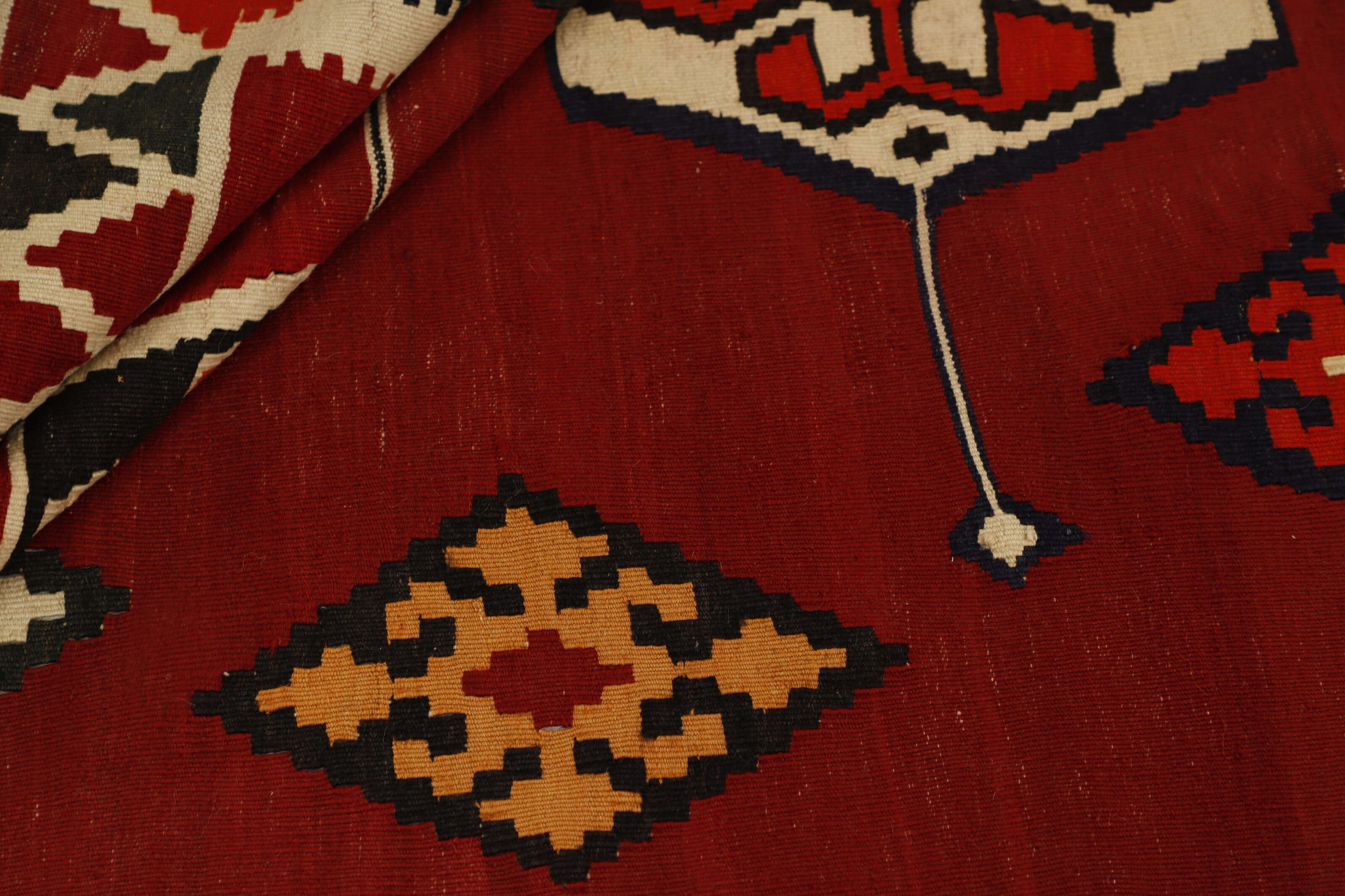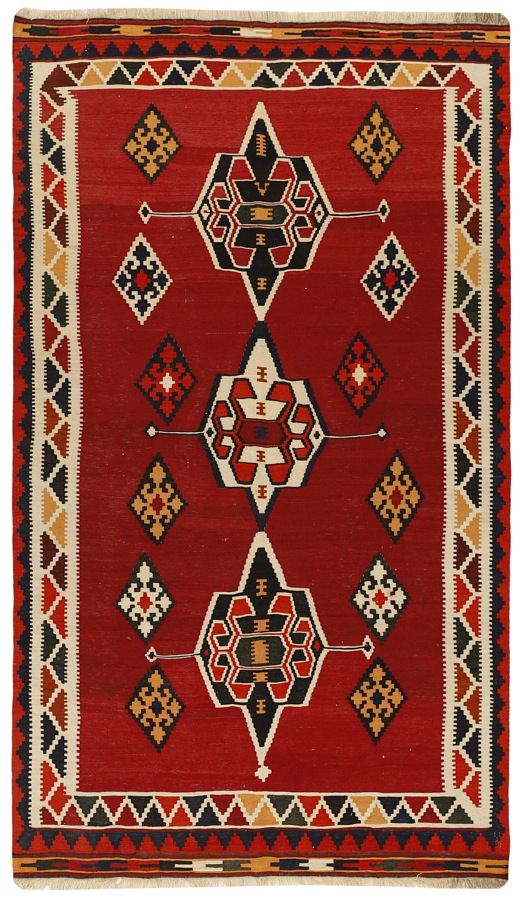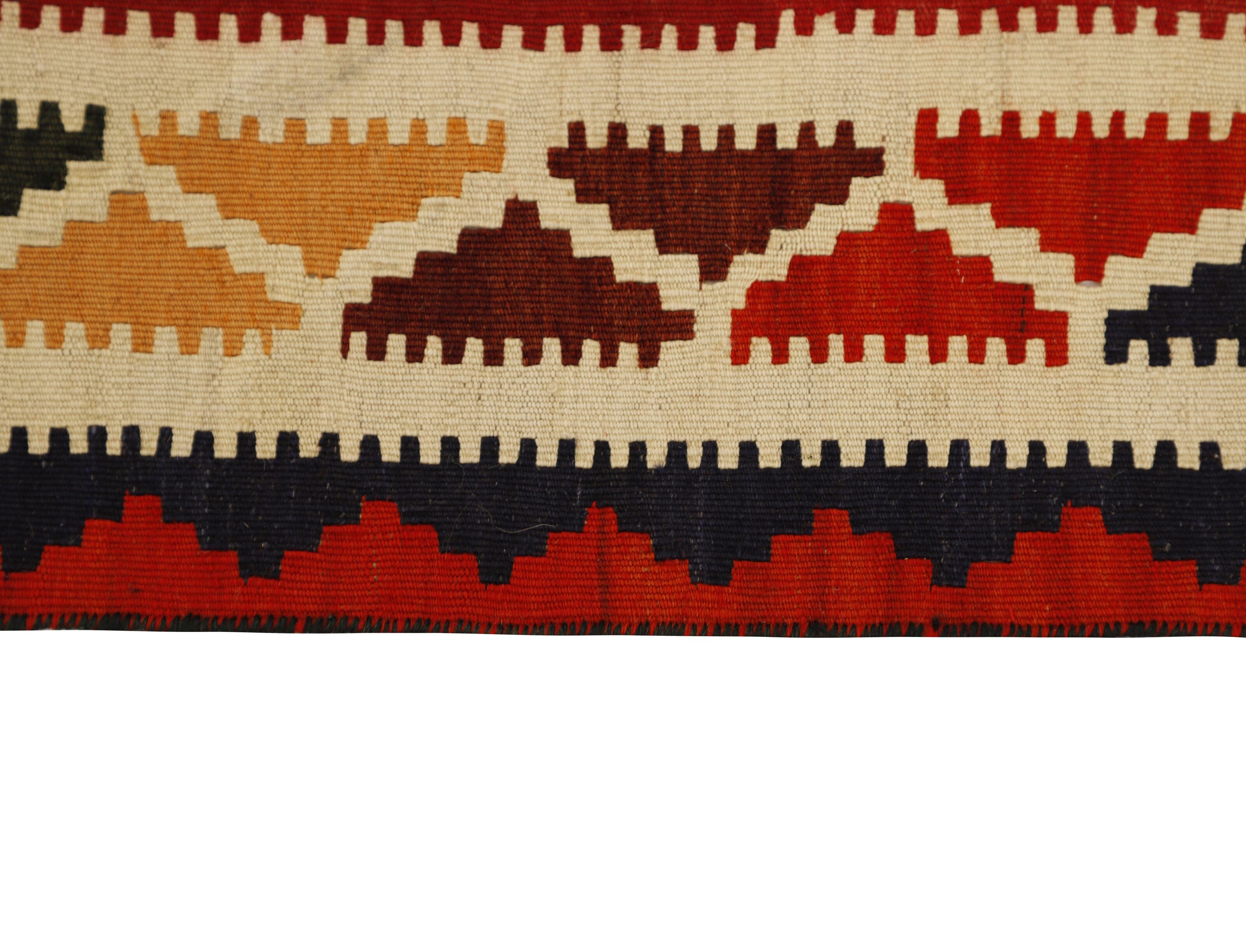 Kelim OldItem no.: 1514870 Size: 143 cm x 248 cmPersian Kelim Old are often oblong, and were originally used in tents by the nomads. Kelim rugs are often placed on top of other rugs as insulation. The rugs are often up to 50 years old, sometimes more than 80 years. The nomads knot or weave the rugs they need themselves, and use them for many different purposes, such as saddlebags for camels and donkeys, but they are mostly used for motorbikes, storing clothes, for sitting on, and as sleeping blankets.
