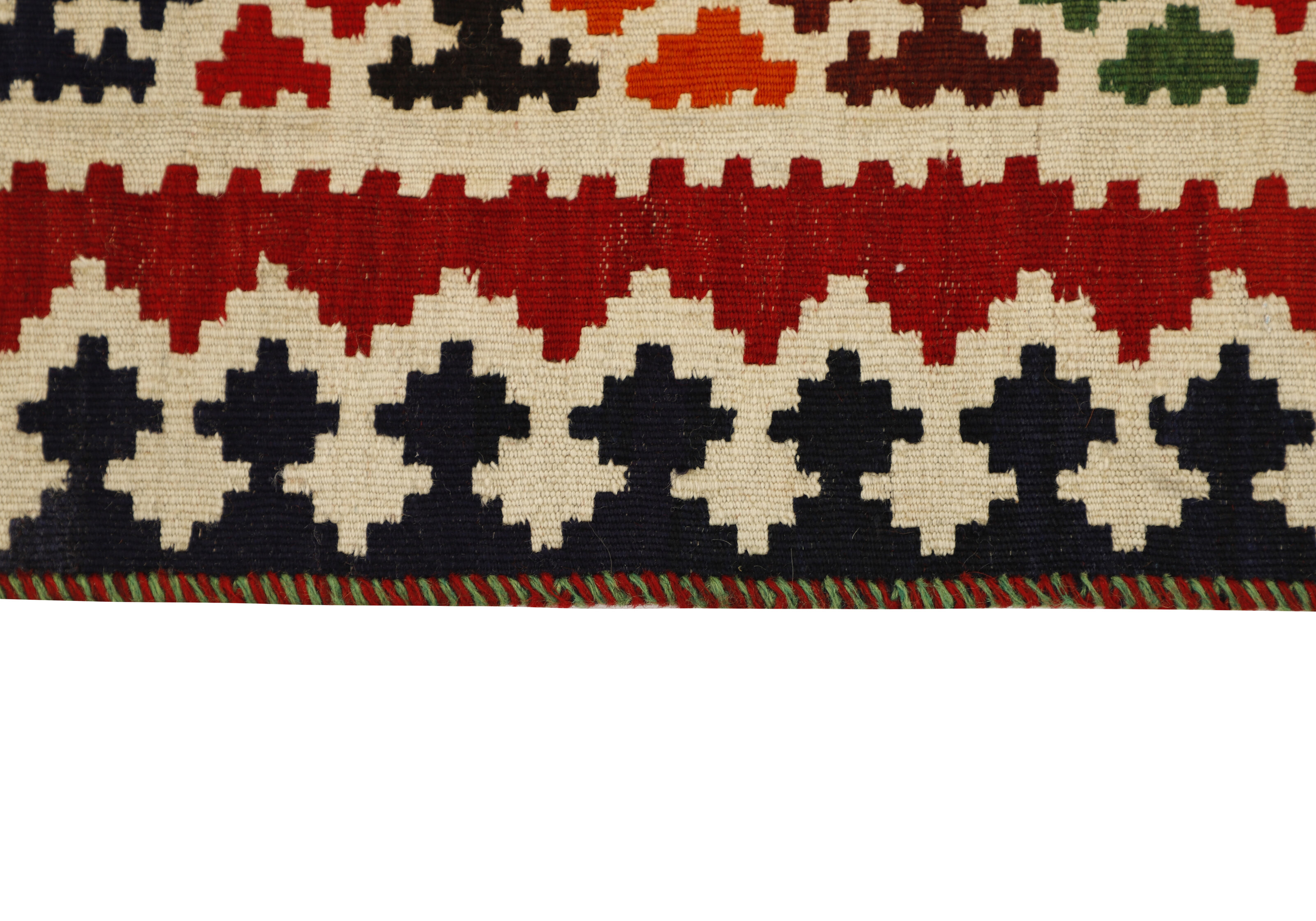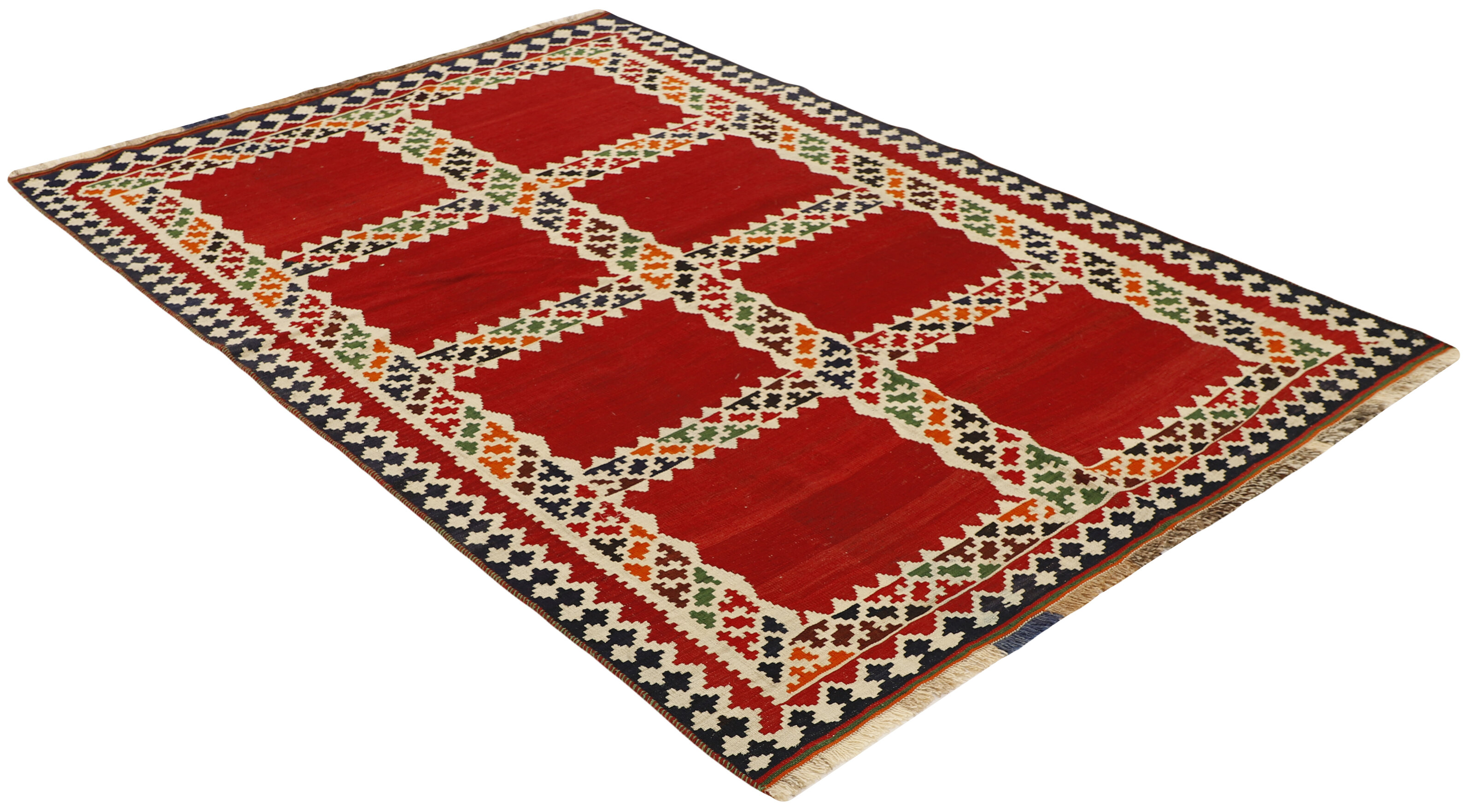 Kelim OldItem no.: 1514872 Size: 145 cm x 212 cmPersian Kelim Old are often oblong, and were originally used in tents by the nomads. Kelim rugs are often placed on top of other rugs as insulation. The rugs are often up to 50 years old, sometimes more than 80 years. The nomads knot or weave the rugs they need themselves, and use them for many different purposes, such as saddlebags for camels and donkeys, but they are mostly used for motorbikes, storing clothes, for sitting on, and as sleeping blankets.