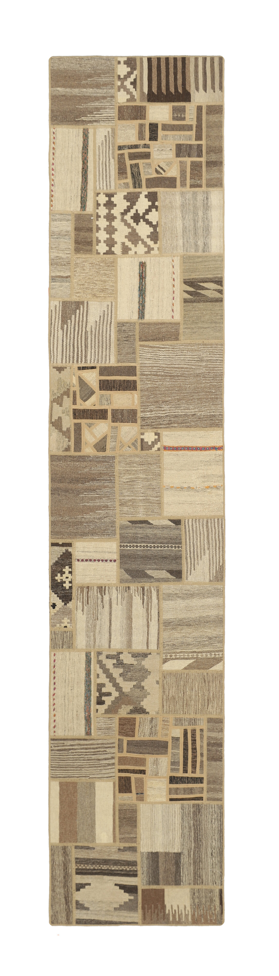 Tekkeh KelimItem no.: 1519425 Size: 80 cm x 400 cmTekkeh Kelims are produced from older Kelims that have been cut into smaller pieces, sewn together, and given a back cover. Tekkeh means piece, so Tekkeh Kelim means a patchwork rug where many pieces have been sewn together. Tekkeh Kelims are available in many sizes and have thoroughly unique patterns. The rugs are produced from 20-50 year old Kelims. Kelim rugs are hand woven rugs that are made using a special weaving technique, giving the rugs a thinner, felt-like quality. Tekkeh Kelim is produced of older kelim, cut into smaller pieces, sown together and with a backside applied. Tekkeh is the Oriental name for pieces, and Tekkeh kelim is an expression for a patchwork rug, where several pieces are sown together. Tekkeh Kelim is available in many sizes and all pieces has unique patterns. used a special weaving technique, that gives the rug a thinner and felt like quality.