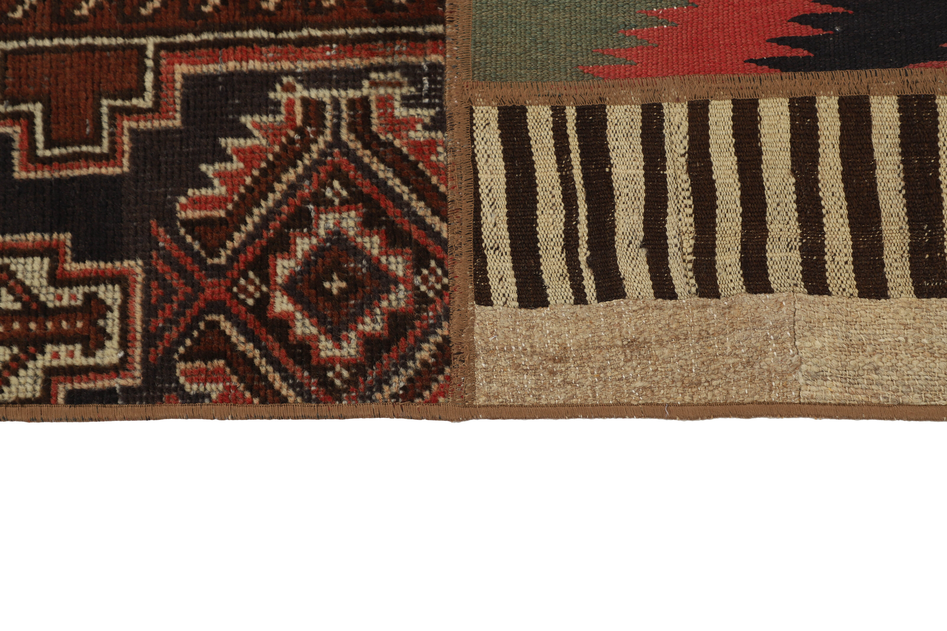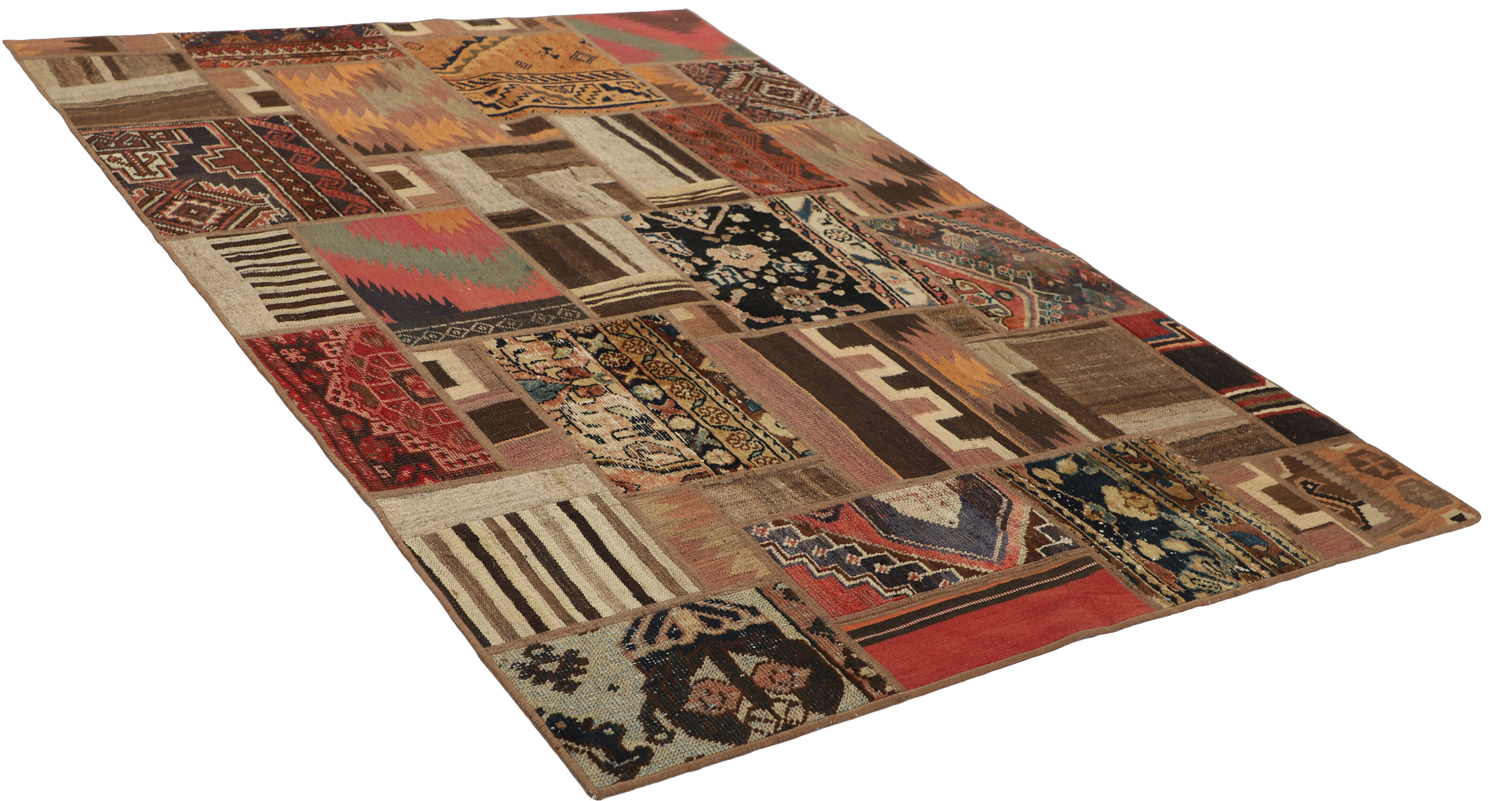 Tekkeh KelimItem no.: 1519436 Size: 140 cm x 200 cmTekkeh Kelims are produced from older Kelims that have been cut into smaller pieces, sewn together, and given a back cover. Tekkeh means piece, so Tekkeh Kelim means a patchwork rug where many pieces have been sewn together. Tekkeh Kelims are available in many sizes and have thoroughly unique patterns. The rugs are produced from 20-50 year old Kelims. Kelim rugs are hand woven rugs that are made using a special weaving technique, giving the rugs a thinner, felt-like quality. Tekkeh Kelim is produced of older kelim, cut into smaller pieces, sown together and with a backside applied. Tekkeh is the Oriental name for pieces, and Tekkeh kelim is an expression for a patchwork rug, where several pieces are sown together. Tekkeh Kelim is available in many sizes and all pieces has unique patterns. used a special weaving technique, that gives the rug a thinner and felt like quality.