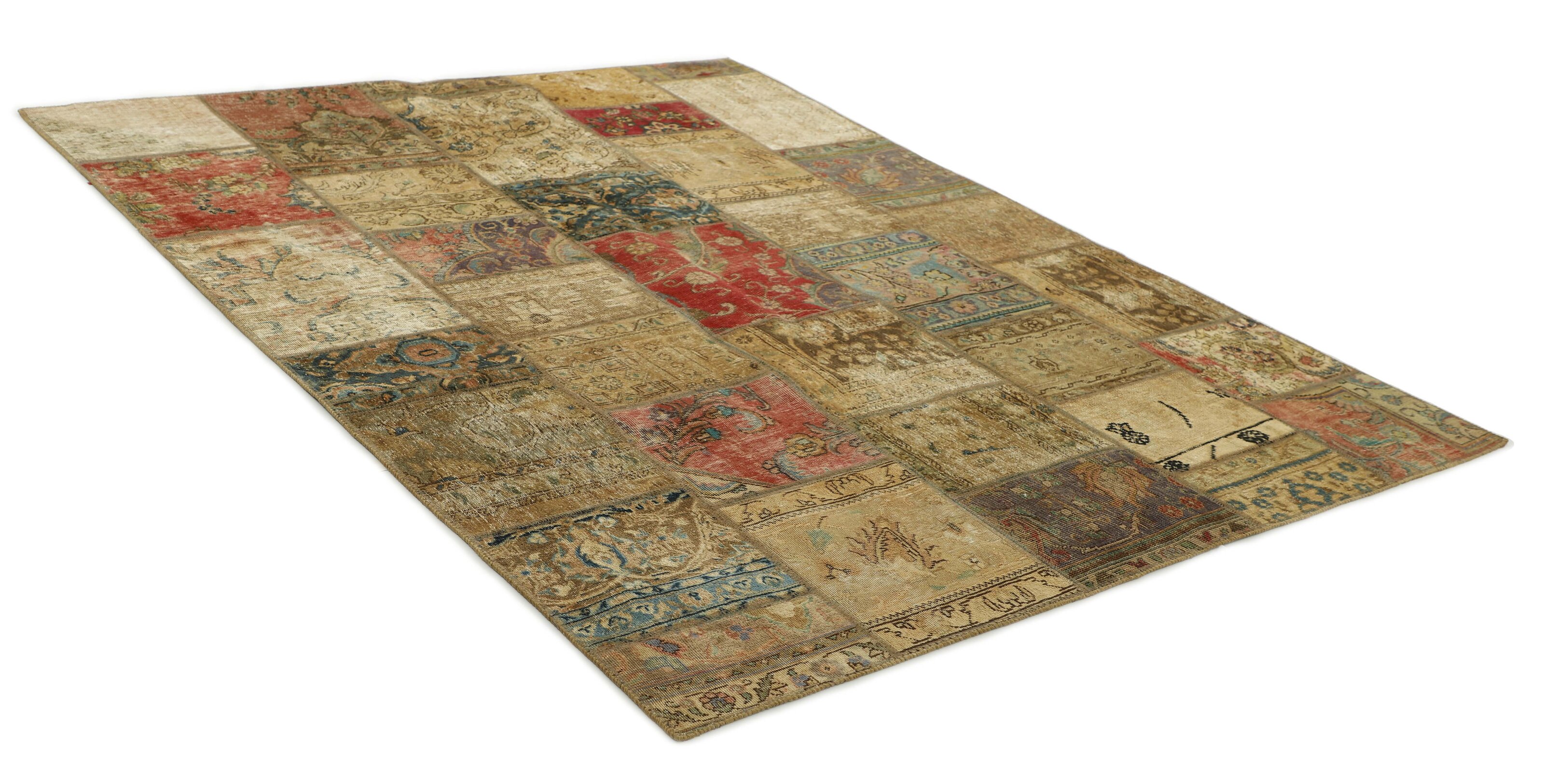Vintage PatchworkItem no.: 1495763 Size: 197 cm x 254 cmVintage Royals are antique hand knotted rugs of Persian origin. The Patchwork Collection consists of old rugs that have been beyond repair, and instead cut into smaller pieces and used for patchwork. The Patchwork pieces are stonewashed and recoloured in light, dark, or bright colours, with the old pattern just being visible. The Patchwork rug forms a whole new and unique design. The rugs are of a very high quality and are available in large sizes. With the Vintage Royal Patchwork Collection, you do not just get a rug; you adorn your home with a unique piece of antique, Persian handcraft.