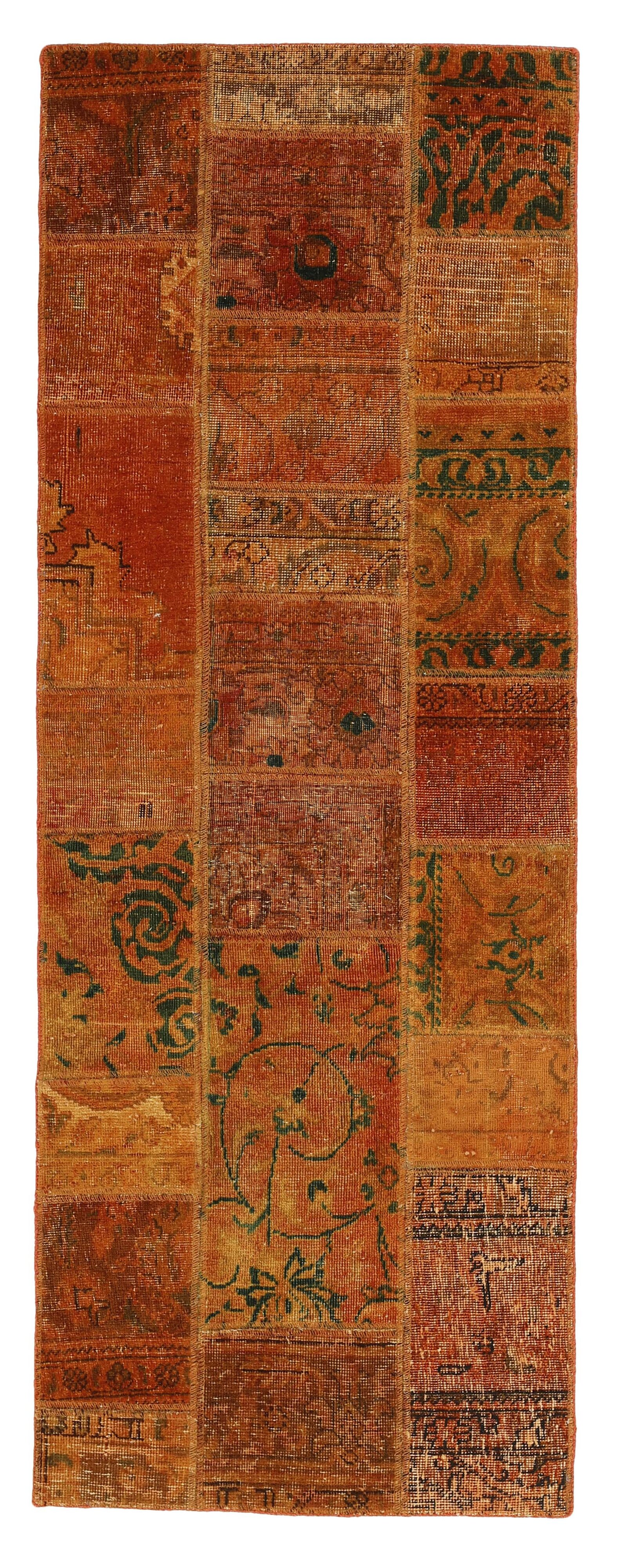 Vintage PatchworkItem no.: 1511569 Size: 76 cm x 206 cmVintage Royals are antique hand knotted rugs of Persian origin. The Patchwork Collection consists of old rugs that have been beyond repair, and instead cut into smaller pieces and used for patchwork. The Patchwork pieces are stonewashed and recoloured in light, dark, or bright colours, with the old pattern just being visible. The Patchwork rug forms a whole new and unique design. The rugs are of a very high quality and are available in large sizes. With the Vintage Royal Patchwork Collection, you do not just get a rug; you adorn your home with a unique piece of antique, Persian handcraft.