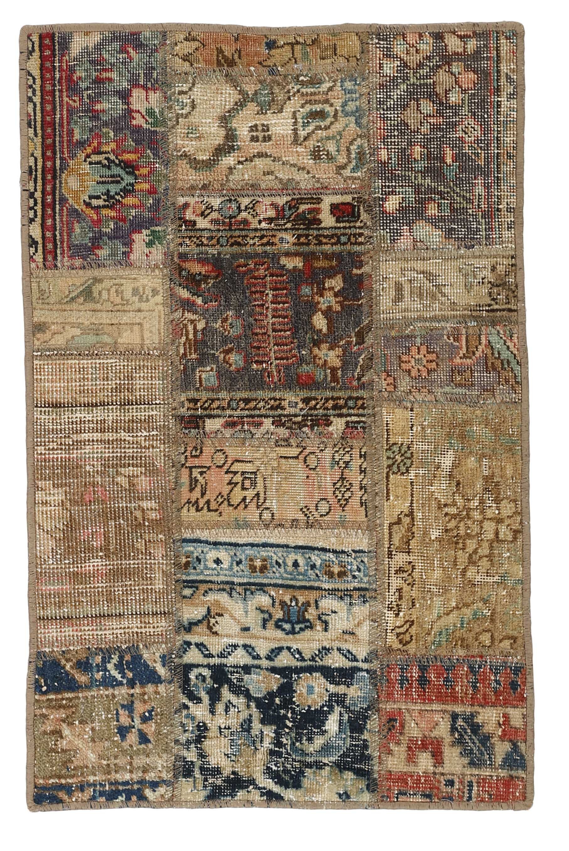 Vintage PatchworkItem no.: 1511631 Size: 60 cm x 90 cmVintage Royals are antique hand knotted rugs of Persian origin. The Patchwork Collection consists of old rugs that have been beyond repair, and instead cut into smaller pieces and used for patchwork. The Patchwork pieces are stonewashed and recoloured in light, dark, or bright colours, with the old pattern just being visible. The Patchwork rug forms a whole new and unique design. The rugs are of a very high quality and are available in large sizes. With the Vintage Royal Patchwork Collection, you do not just get a rug; you adorn your home with a unique piece of antique, Persian handcraft.
