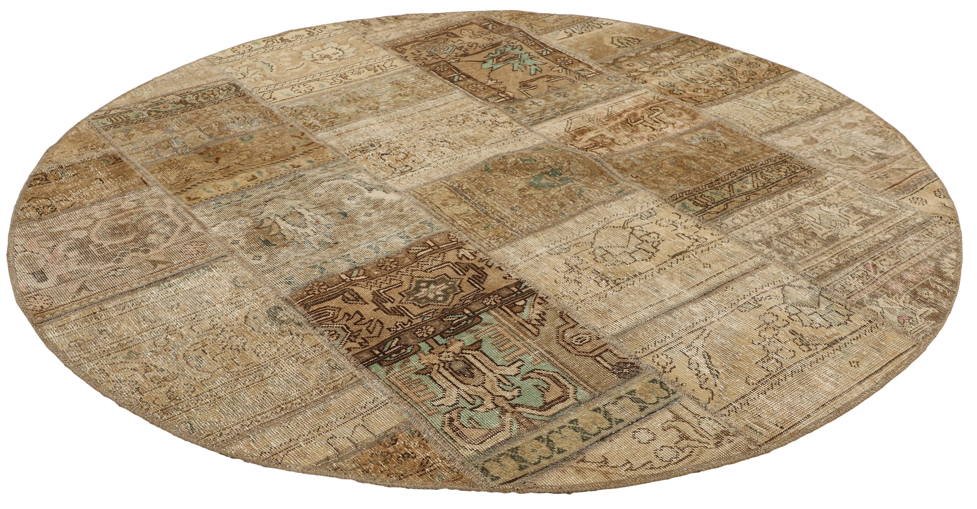 Vintage PatchworkItem no.: 1511691 Size: 200 cm x 200 cmVintage Royals are antique hand knotted rugs of Persian origin. The Patchwork Collection consists of old rugs that have been beyond repair, and instead cut into smaller pieces and used for patchwork. The Patchwork pieces are stonewashed and recoloured in light, dark, or bright colours, with the old pattern just being visible. The Patchwork rug forms a whole new and unique design. The rugs are of a very high quality and are available in large sizes. With the Vintage Royal Patchwork Collection, you do not just get a rug; you adorn your home with a unique piece of antique, Persian handcraft.