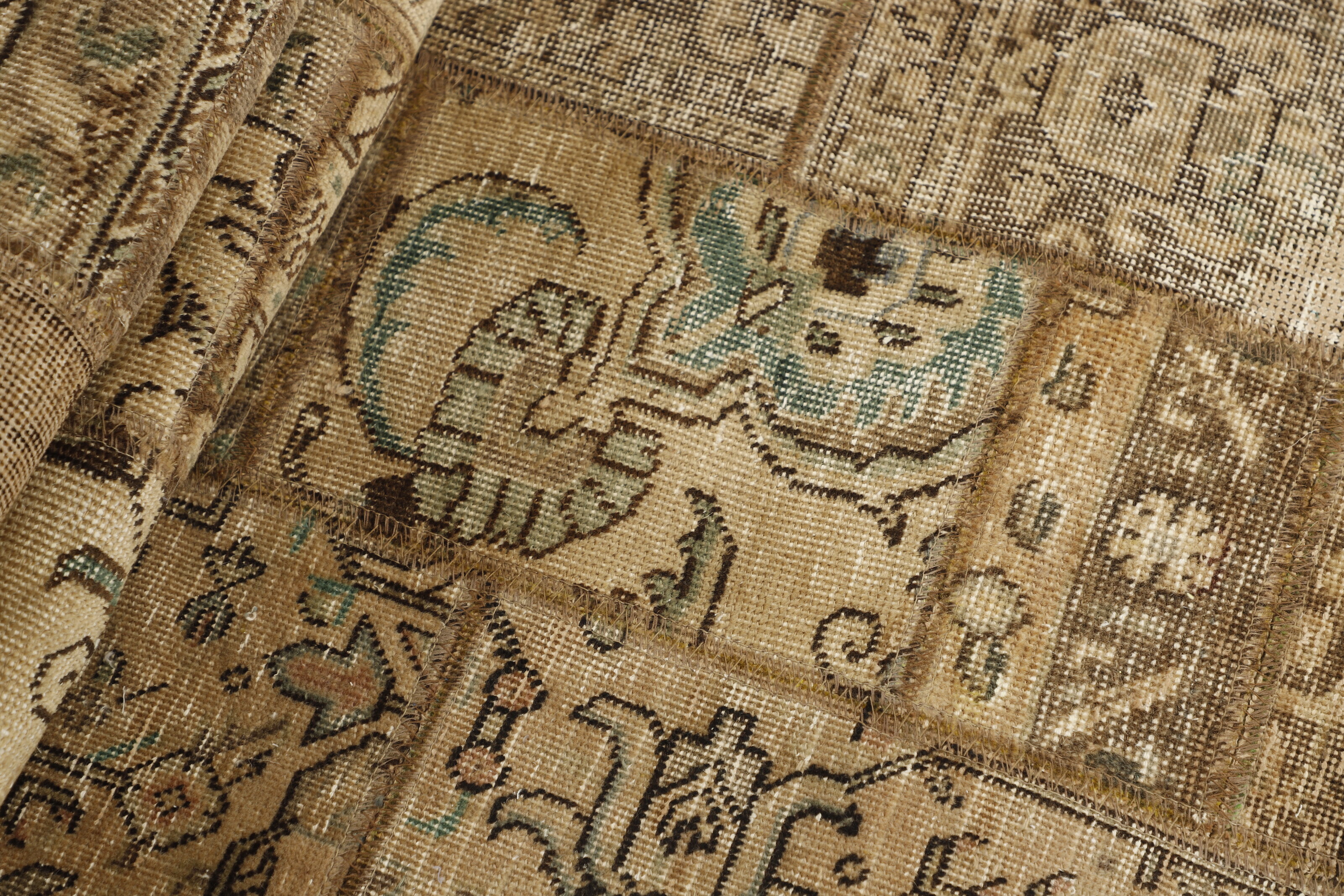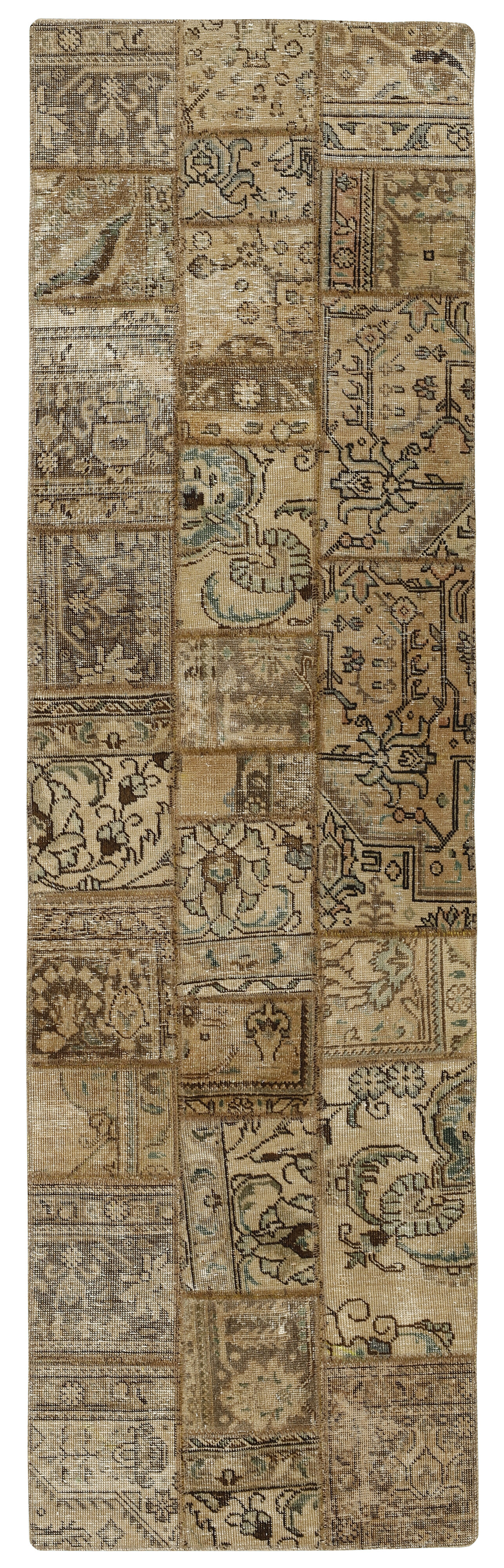 Vintage PatchworkItem no.: 1515786 Size: 75 cm x 258 cmVintage Royals are antique hand knotted rugs of Persian origin. The Patchwork Collection consists of old rugs that have been beyond repair, and instead cut into smaller pieces and used for patchwork. The Patchwork pieces are stonewashed and recoloured in light, dark, or bright colours, with the old pattern just being visible. The Patchwork rug forms a whole new and unique design. The rugs are of a very high quality and are available in large sizes. With the Vintage Royal Patchwork Collection, you do not just get a rug; you adorn your home with a unique piece of antique, Persian handcraft.