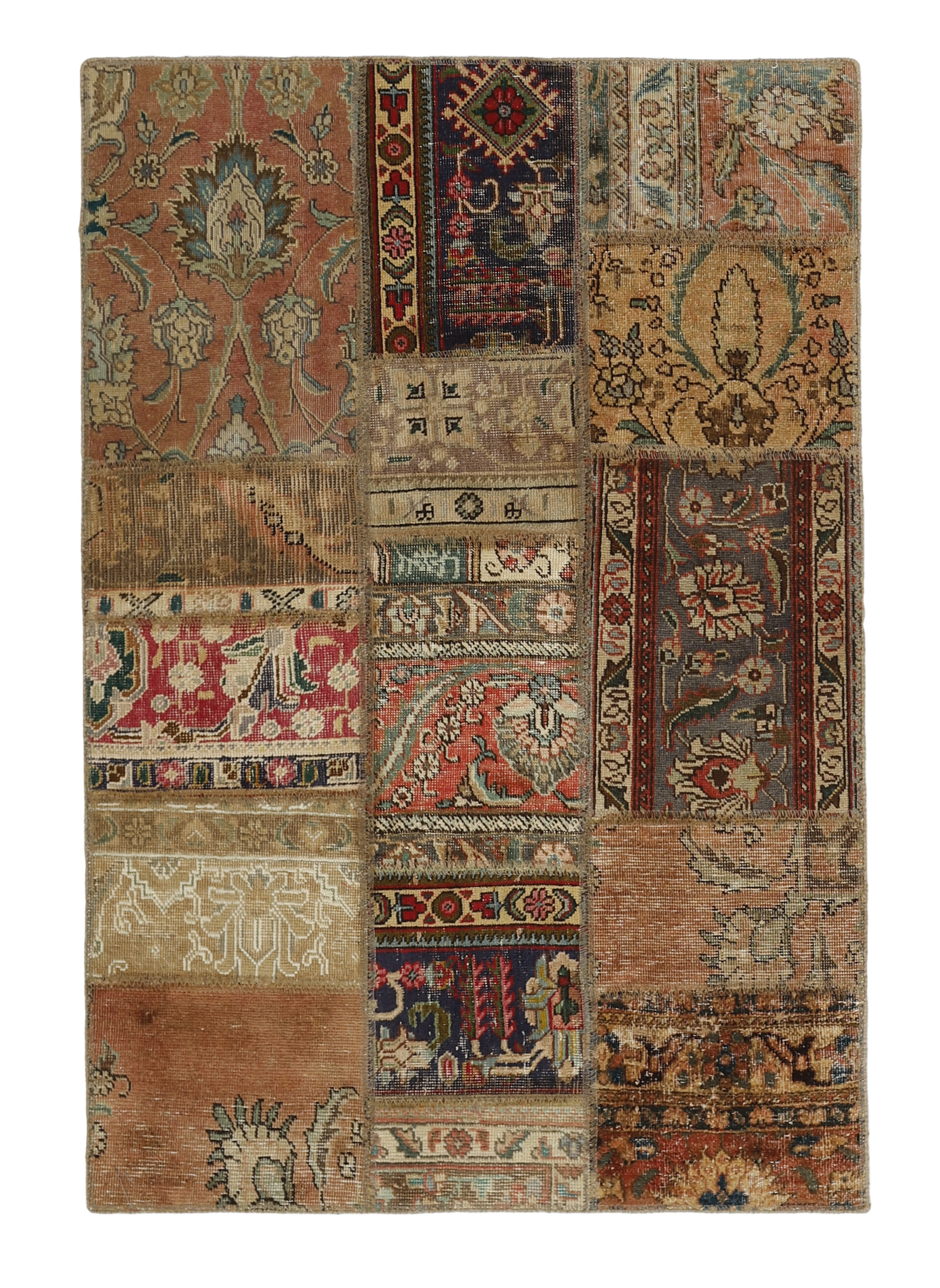 Vintage PatchworkItem no.: 1515859 Size: 106 cm x 154 cmVintage Royals are antique hand knotted rugs of Persian origin. The Patchwork Collection consists of old rugs that have been beyond repair, and instead cut into smaller pieces and used for patchwork. The Patchwork pieces are stonewashed and recoloured in light, dark, or bright colours, with the old pattern just being visible. The Patchwork rug forms a whole new and unique design. The rugs are of a very high quality and are available in large sizes. With the Vintage Royal Patchwork Collection, you do not just get a rug; you adorn your home with a unique piece of antique, Persian handcraft.