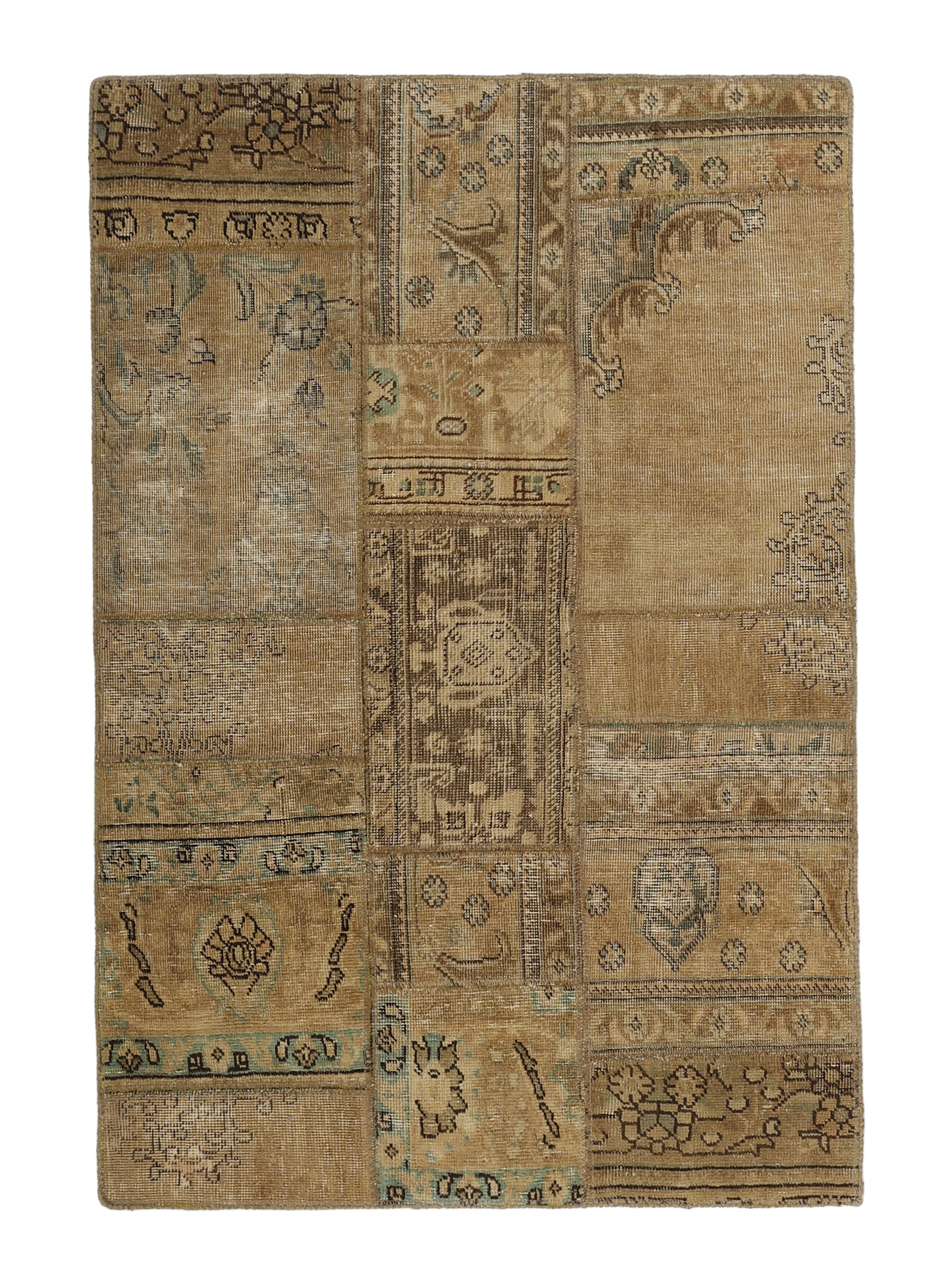 Vintage PatchworkItem no.: 1515862 Size: 105 cm x 155 cmVintage Royals are antique hand knotted rugs of Persian origin. The Patchwork Collection consists of old rugs that have been beyond repair, and instead cut into smaller pieces and used for patchwork. The Patchwork pieces are stonewashed and recoloured in light, dark, or bright colours, with the old pattern just being visible. The Patchwork rug forms a whole new and unique design. The rugs are of a very high quality and are available in large sizes. With the Vintage Royal Patchwork Collection, you do not just get a rug; you adorn your home with a unique piece of antique, Persian handcraft.