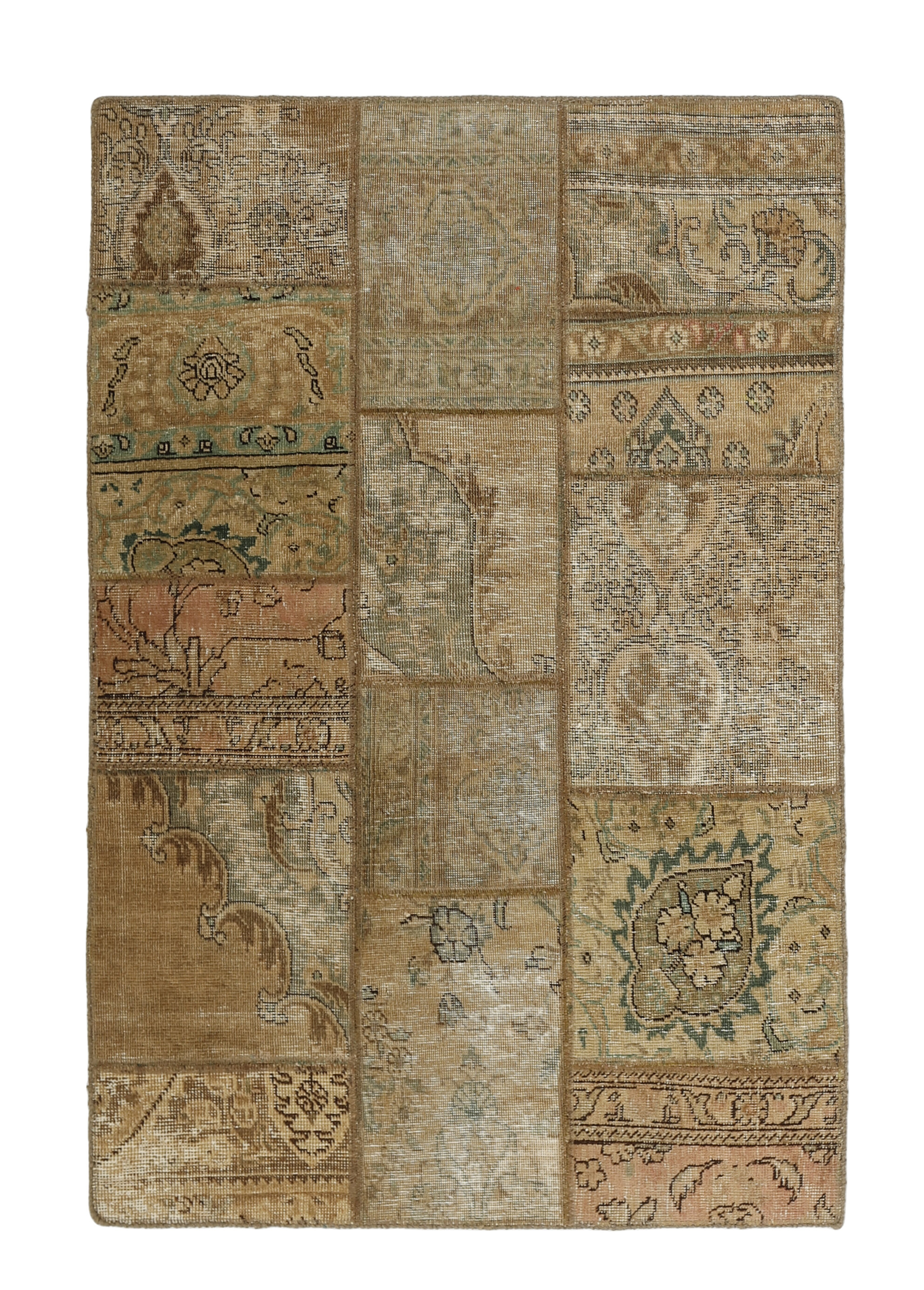 Vintage PatchworkItem no.: 1515864 Size: 108 cm x 157 cmVintage Royals are antique hand knotted rugs of Persian origin. The Patchwork Collection consists of old rugs that have been beyond repair, and instead cut into smaller pieces and used for patchwork. The Patchwork pieces are stonewashed and recoloured in light, dark, or bright colours, with the old pattern just being visible. The Patchwork rug forms a whole new and unique design. The rugs are of a very high quality and are available in large sizes. With the Vintage Royal Patchwork Collection, you do not just get a rug; you adorn your home with a unique piece of antique, Persian handcraft.