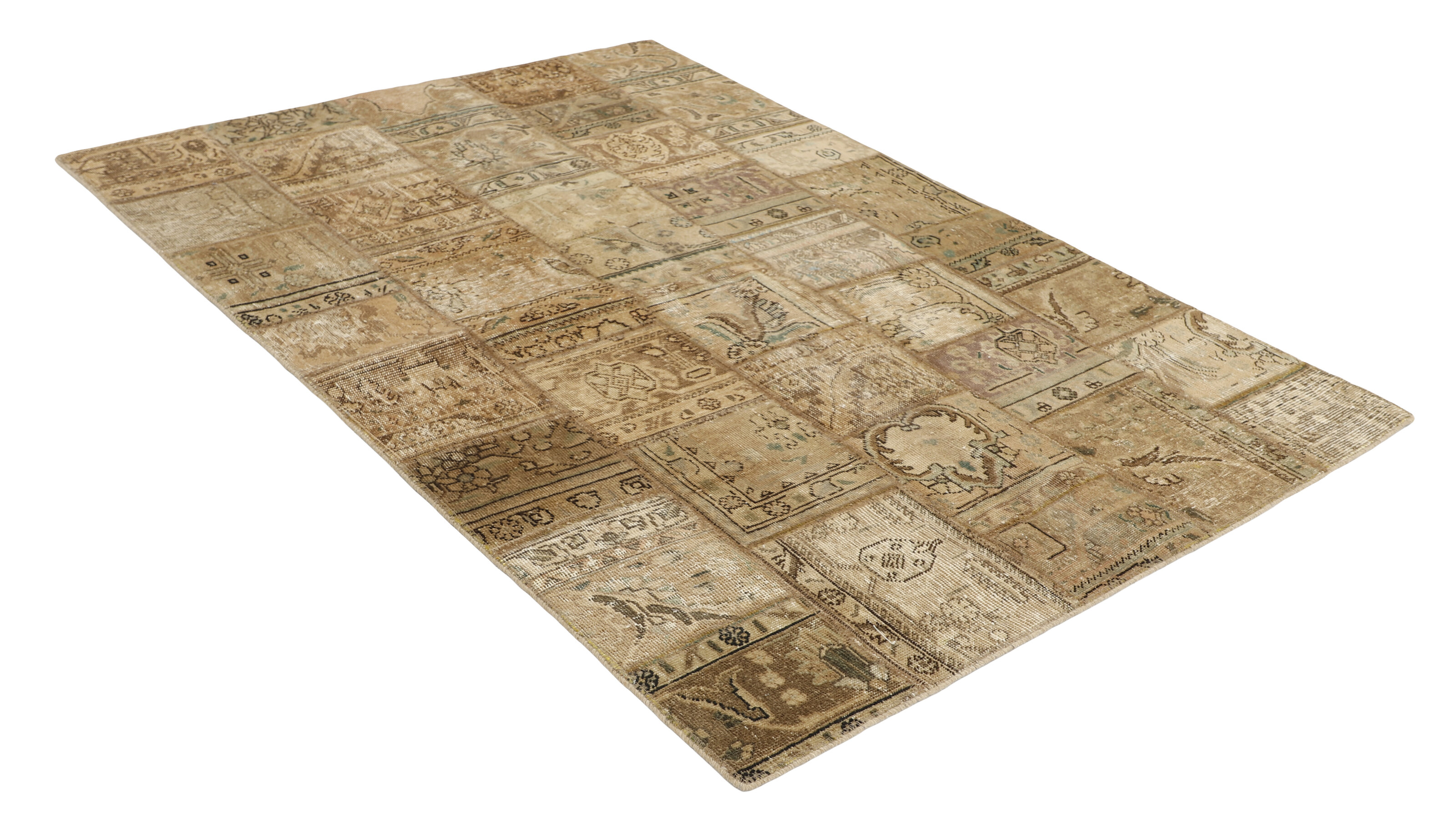 Vintage PatchworkItem no.: 1515890 Size: 143 cm x 204 cmVintage Royals are antique hand knotted rugs of Persian origin. The Patchwork Collection consists of old rugs that have been beyond repair, and instead cut into smaller pieces and used for patchwork. The Patchwork pieces are stonewashed and recoloured in light, dark, or bright colours, with the old pattern just being visible. The Patchwork rug forms a whole new and unique design. The rugs are of a very high quality and are available in large sizes. With the Vintage Royal Patchwork Collection, you do not just get a rug; you adorn your home with a unique piece of antique, Persian handcraft.