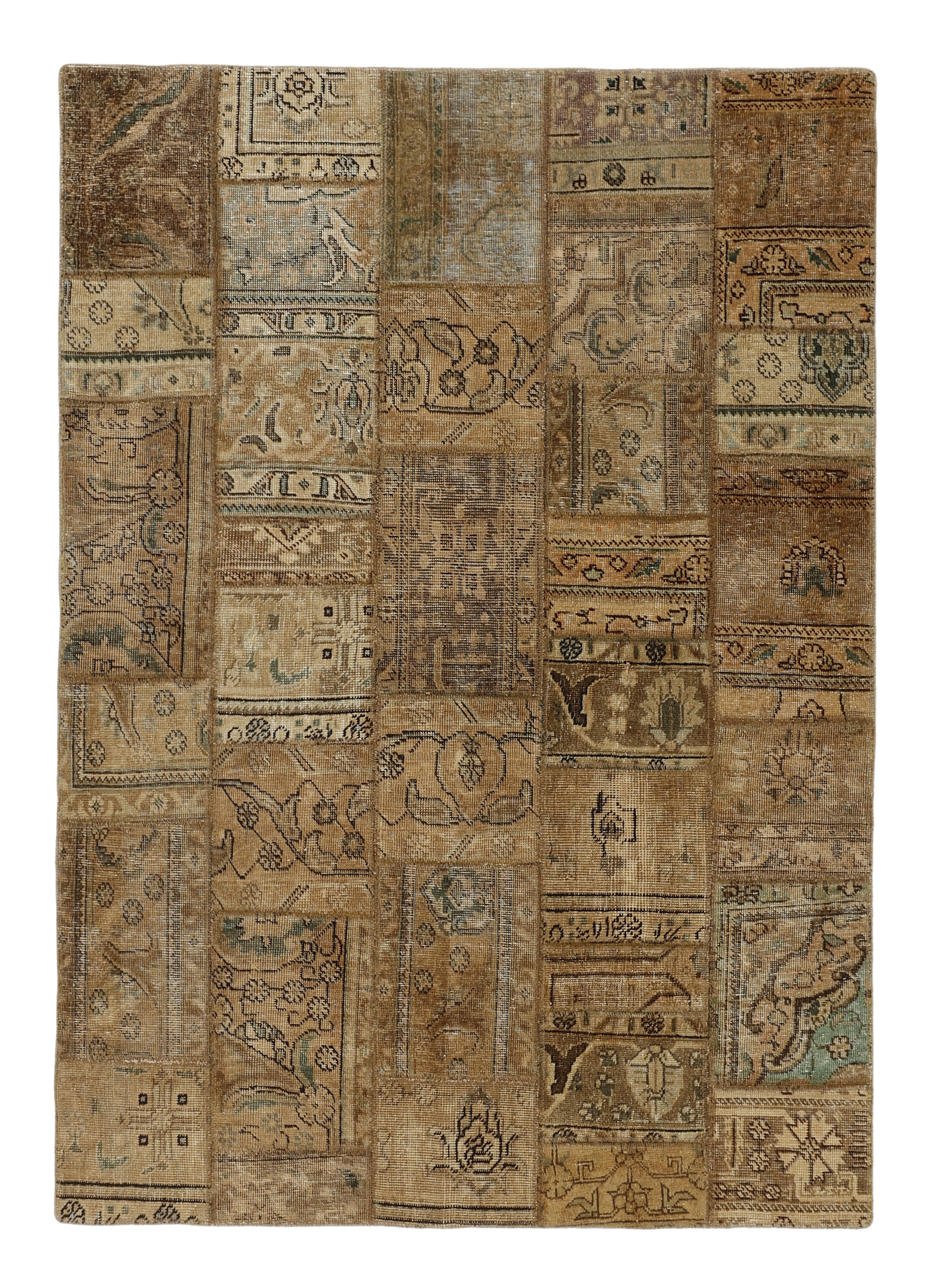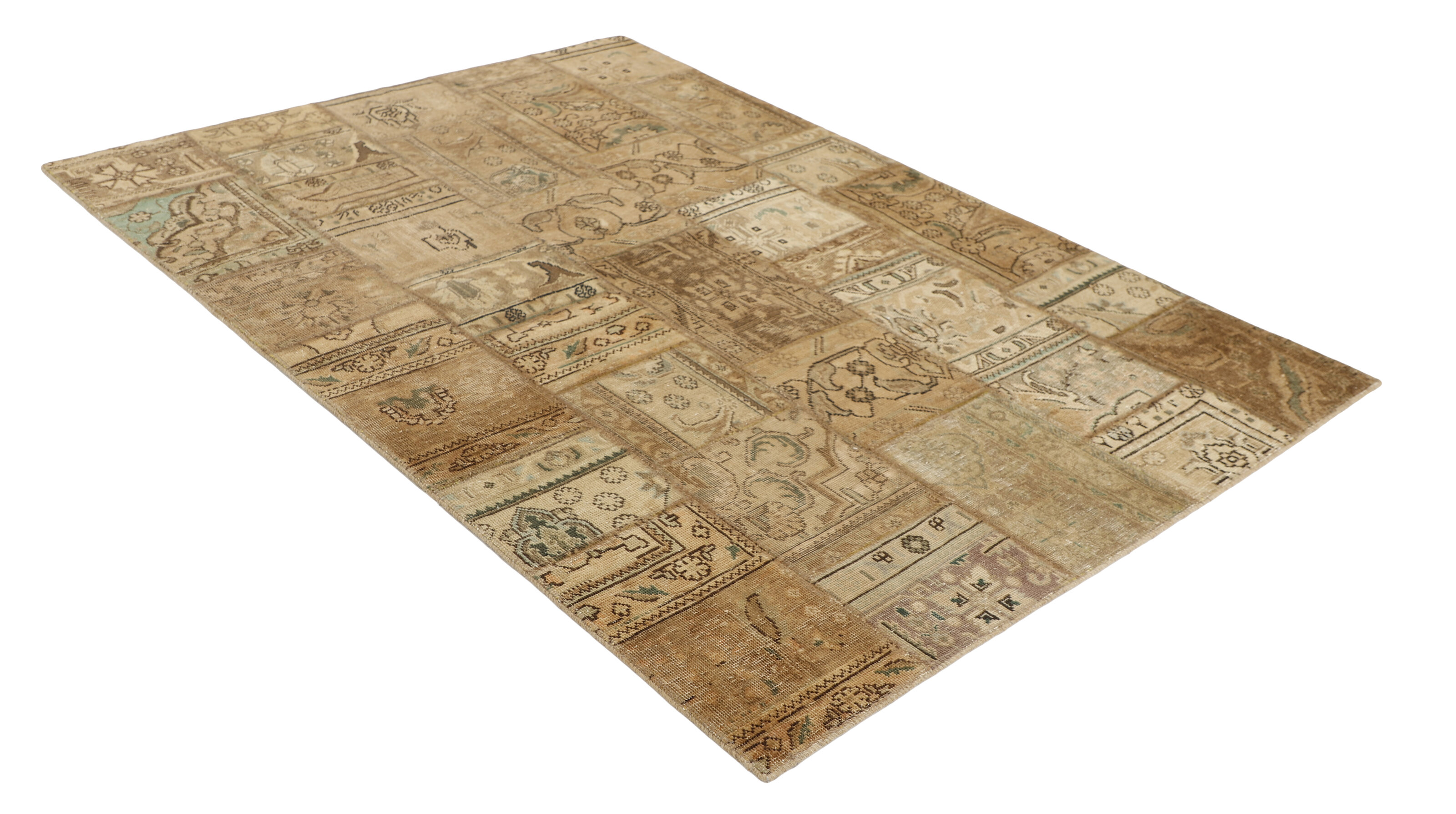 Vintage PatchworkItem no.: 1515893 Size: 145 cm x 205 cmVintage Royals are antique hand knotted rugs of Persian origin. The Patchwork Collection consists of old rugs that have been beyond repair, and instead cut into smaller pieces and used for patchwork. The Patchwork pieces are stonewashed and recoloured in light, dark, or bright colours, with the old pattern just being visible. The Patchwork rug forms a whole new and unique design. The rugs are of a very high quality and are available in large sizes. With the Vintage Royal Patchwork Collection, you do not just get a rug; you adorn your home with a unique piece of antique, Persian handcraft.