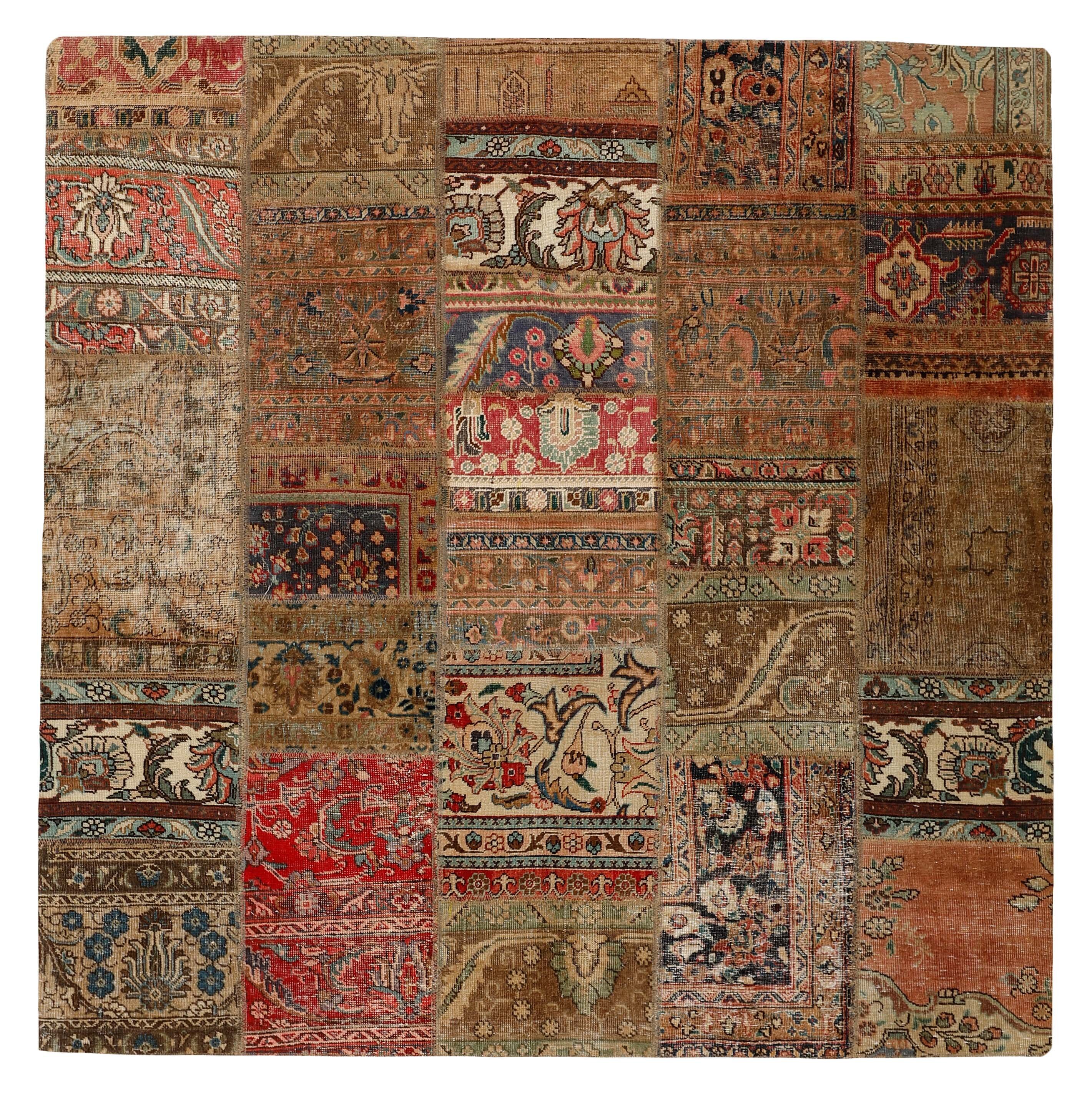 Vintage PatchworkItem no.: 1515910 Size: 205 cm x 204 cmVintage Royals are antique hand knotted rugs of Persian origin. The Patchwork Collection consists of old rugs that have been beyond repair, and instead cut into smaller pieces and used for patchwork. The Patchwork pieces are stonewashed and recoloured in light, dark, or bright colours, with the old pattern just being visible. The Patchwork rug forms a whole new and unique design. The rugs are of a very high quality and are available in large sizes. With the Vintage Royal Patchwork Collection, you do not just get a rug; you adorn your home with a unique piece of antique, Persian handcraft.