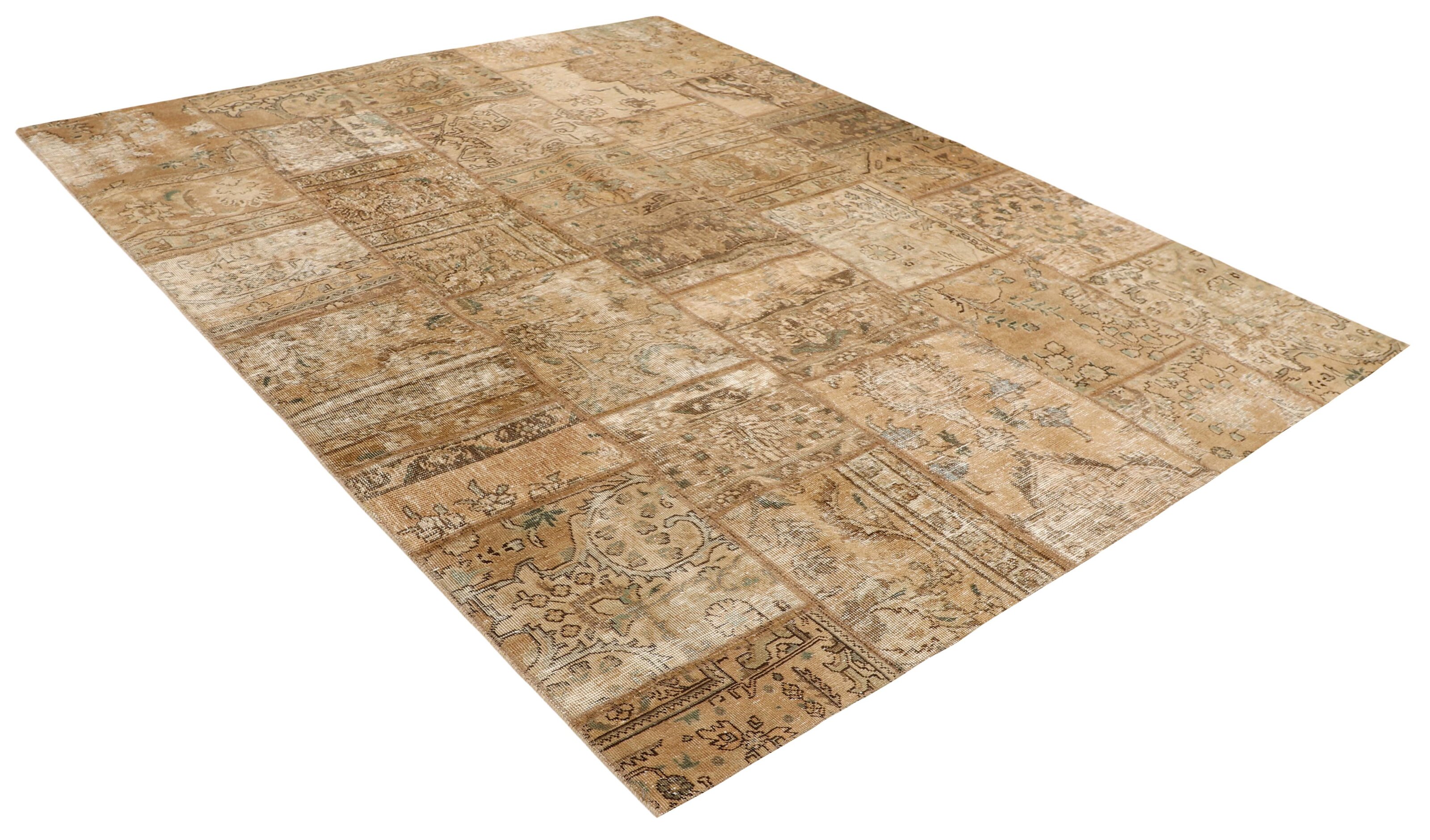 Vintage PatchworkItem no.: 1515922 Size: 205 cm x 252 cmVintage Royals are antique hand knotted rugs of Persian origin. The Patchwork Collection consists of old rugs that have been beyond repair, and instead cut into smaller pieces and used for patchwork. The Patchwork pieces are stonewashed and recoloured in light, dark, or bright colours, with the old pattern just being visible. The Patchwork rug forms a whole new and unique design. The rugs are of a very high quality and are available in large sizes. With the Vintage Royal Patchwork Collection, you do not just get a rug; you adorn your home with a unique piece of antique, Persian handcraft.