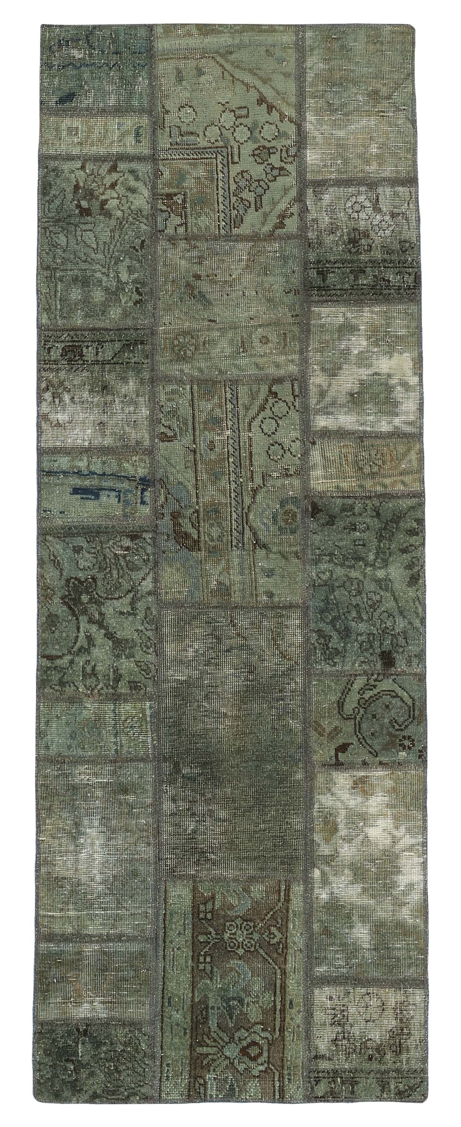 Vintage PatchworkItem no.: 1515934 Size: 75 cm x 203 cmVintage Royals are antique hand knotted rugs of Persian origin. The Patchwork Collection consists of old rugs that have been beyond repair, and instead cut into smaller pieces and used for patchwork. The Patchwork pieces are stonewashed and recoloured in light, dark, or bright colours, with the old pattern just being visible. The Patchwork rug forms a whole new and unique design. The rugs are of a very high quality and are available in large sizes. With the Vintage Royal Patchwork Collection, you do not just get a rug; you adorn your home with a unique piece of antique, Persian handcraft.