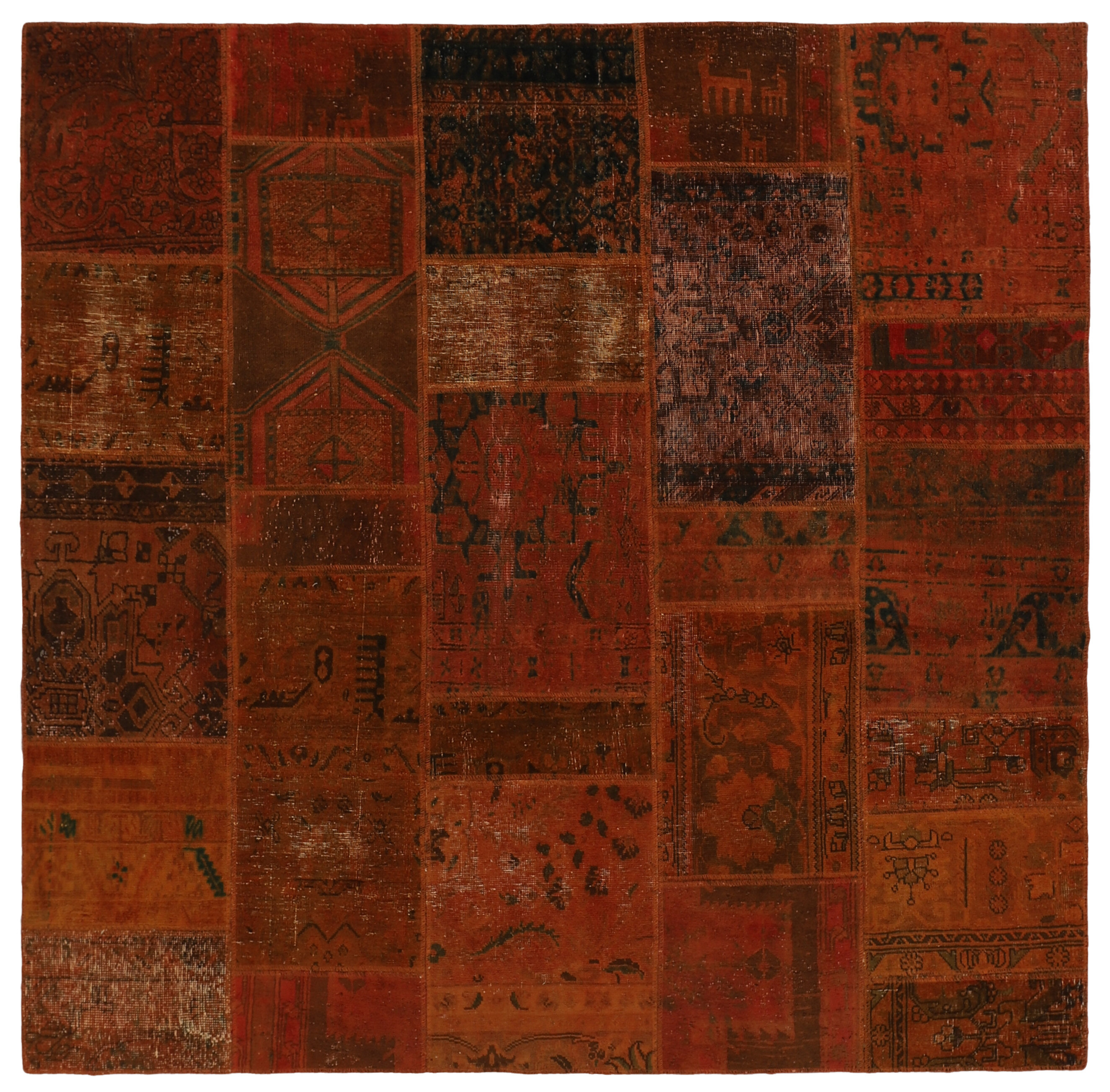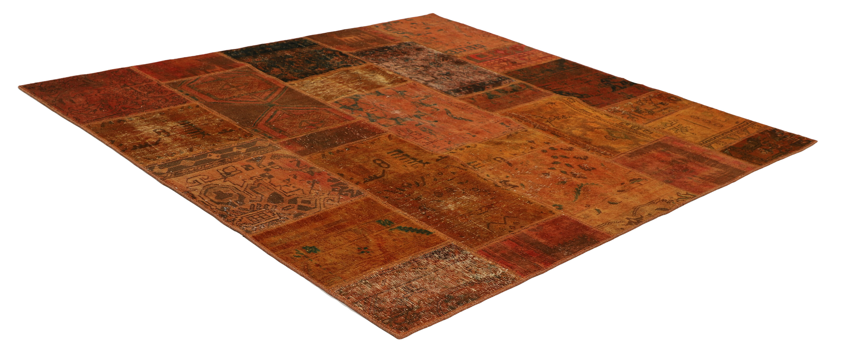 Vintage PatchworkItem no.: 1515973 Size: 208 cm x 202 cmVintage Royals are antique hand knotted rugs of Persian origin. The Patchwork Collection consists of old rugs that have been beyond repair, and instead cut into smaller pieces and used for patchwork. The Patchwork pieces are stonewashed and recoloured in light, dark, or bright colours, with the old pattern just being visible. The Patchwork rug forms a whole new and unique design. The rugs are of a very high quality and are available in large sizes. With the Vintage Royal Patchwork Collection, you do not just get a rug; you adorn your home with a unique piece of antique, Persian handcraft.