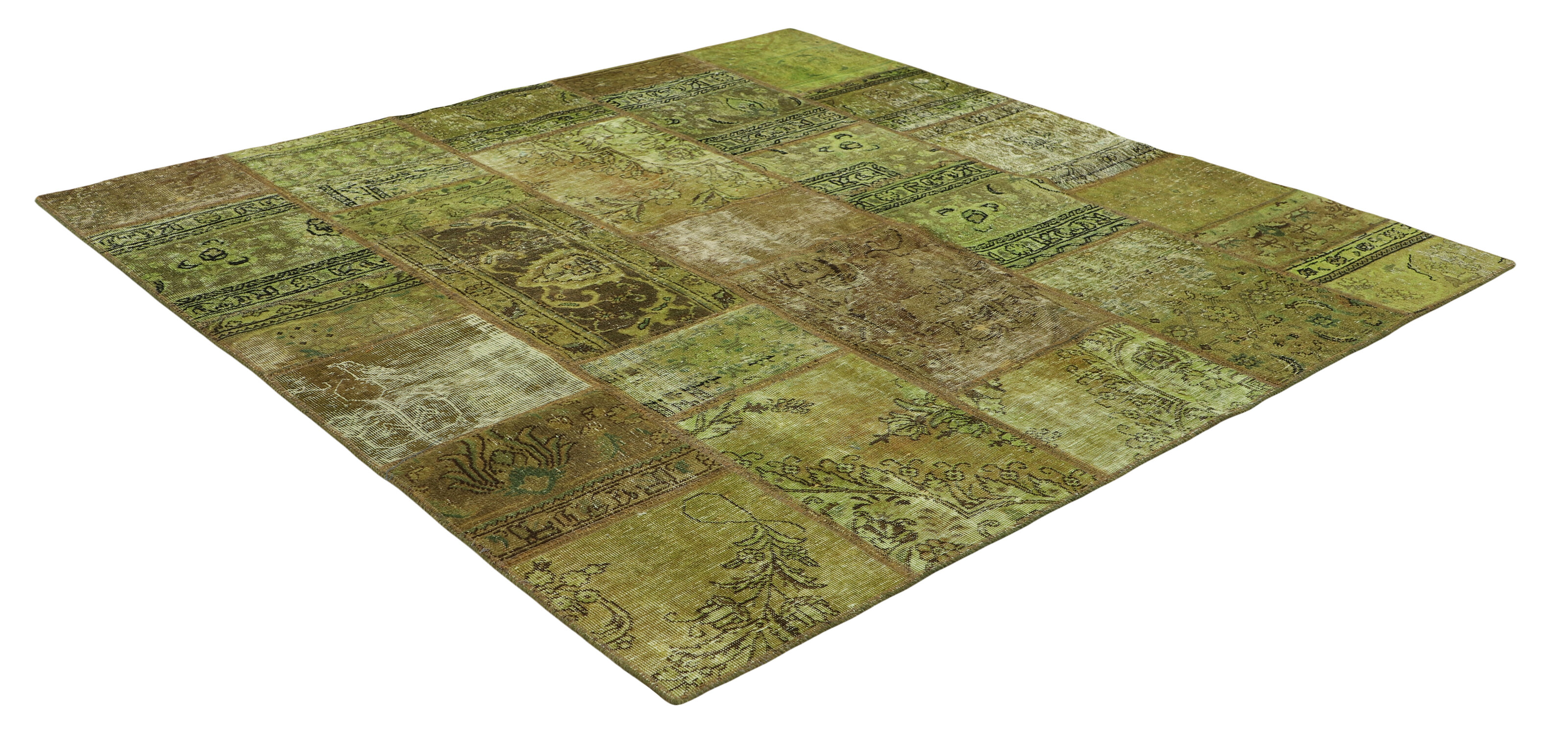 Vintage PatchworkItem no.: 1515976 Size: 203 cm x 202 cmVintage Royals are antique hand knotted rugs of Persian origin. The Patchwork Collection consists of old rugs that have been beyond repair, and instead cut into smaller pieces and used for patchwork. The Patchwork pieces are stonewashed and recoloured in light, dark, or bright colours, with the old pattern just being visible. The Patchwork rug forms a whole new and unique design. The rugs are of a very high quality and are available in large sizes. With the Vintage Royal Patchwork Collection, you do not just get a rug; you adorn your home with a unique piece of antique, Persian handcraft.