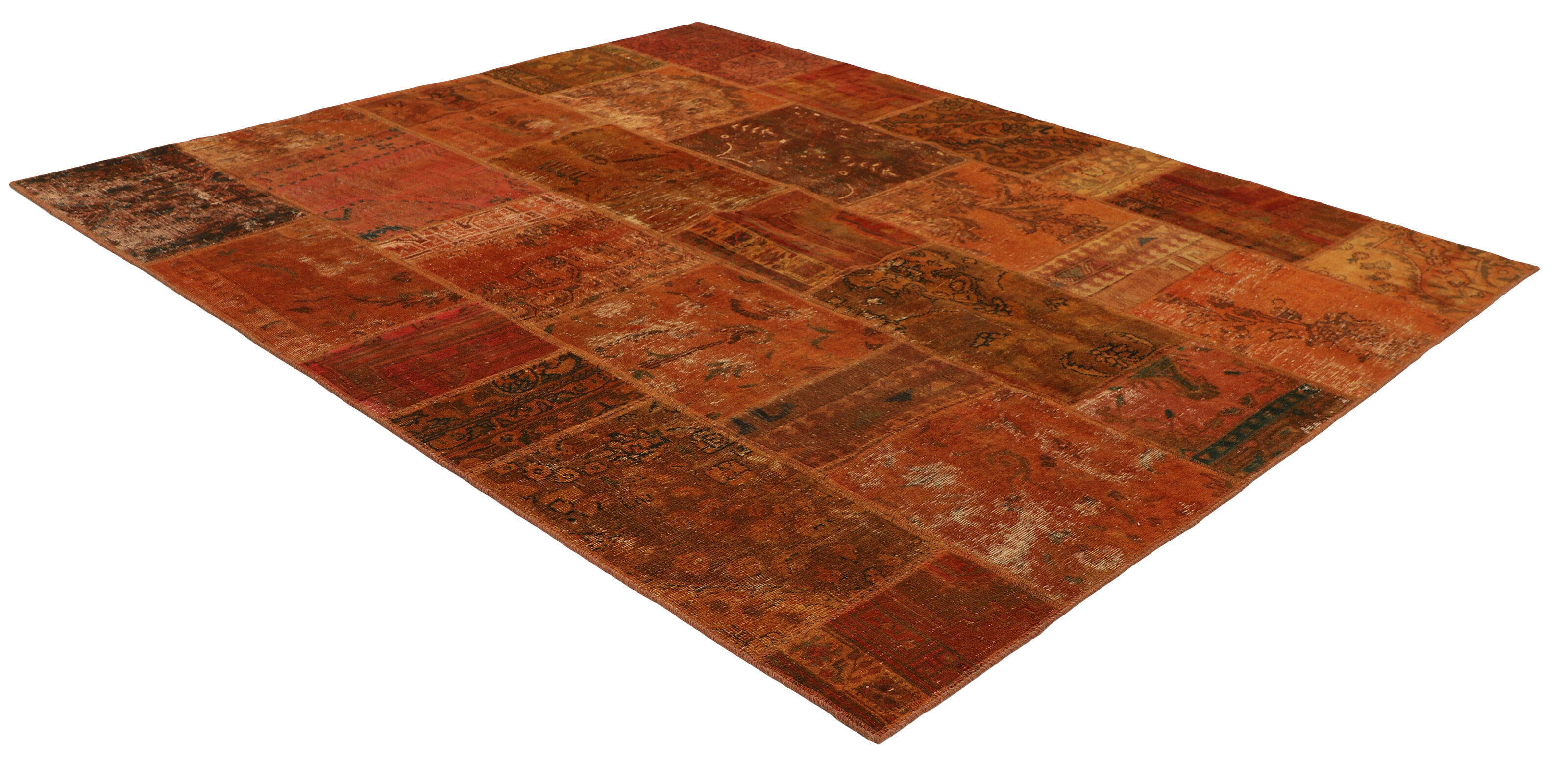 Vintage PatchworkItem no.: 1516016 Size: 199 cm x 255 cmVintage Royals are antique hand knotted rugs of Persian origin. The Patchwork Collection consists of old rugs that have been beyond repair, and instead cut into smaller pieces and used for patchwork. The Patchwork pieces are stonewashed and recoloured in light, dark, or bright colours, with the old pattern just being visible. The Patchwork rug forms a whole new and unique design. The rugs are of a very high quality and are available in large sizes. With the Vintage Royal Patchwork Collection, you do not just get a rug; you adorn your home with a unique piece of antique, Persian handcraft.