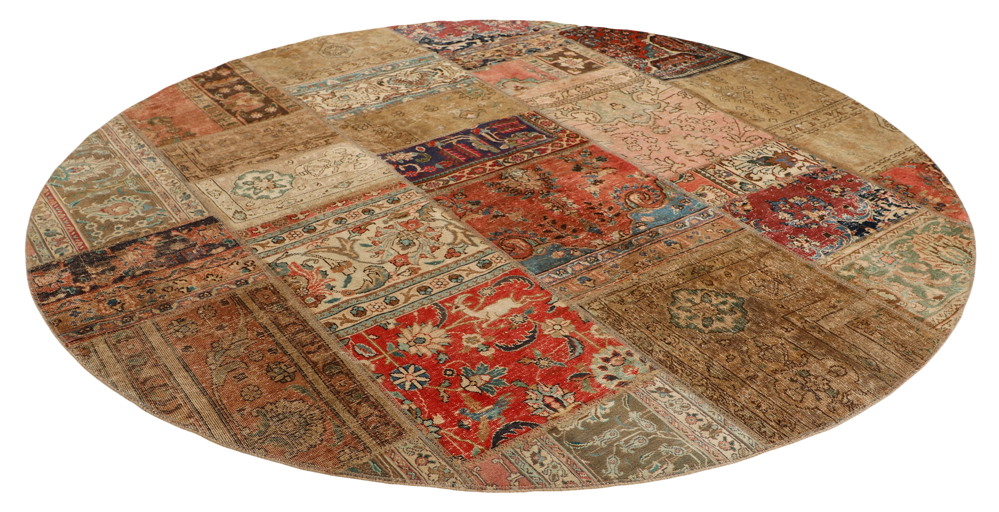 Vintage PatchworkItem no.: 1516028 Size: 250 cm x 250 cmVintage Royals are antique hand knotted rugs of Persian origin. The Patchwork Collection consists of old rugs that have been beyond repair, and instead cut into smaller pieces and used for patchwork. The Patchwork pieces are stonewashed and recoloured in light, dark, or bright colours, with the old pattern just being visible. The Patchwork rug forms a whole new and unique design. The rugs are of a very high quality and are available in large sizes. With the Vintage Royal Patchwork Collection, you do not just get a rug; you adorn your home with a unique piece of antique, Persian handcraft.