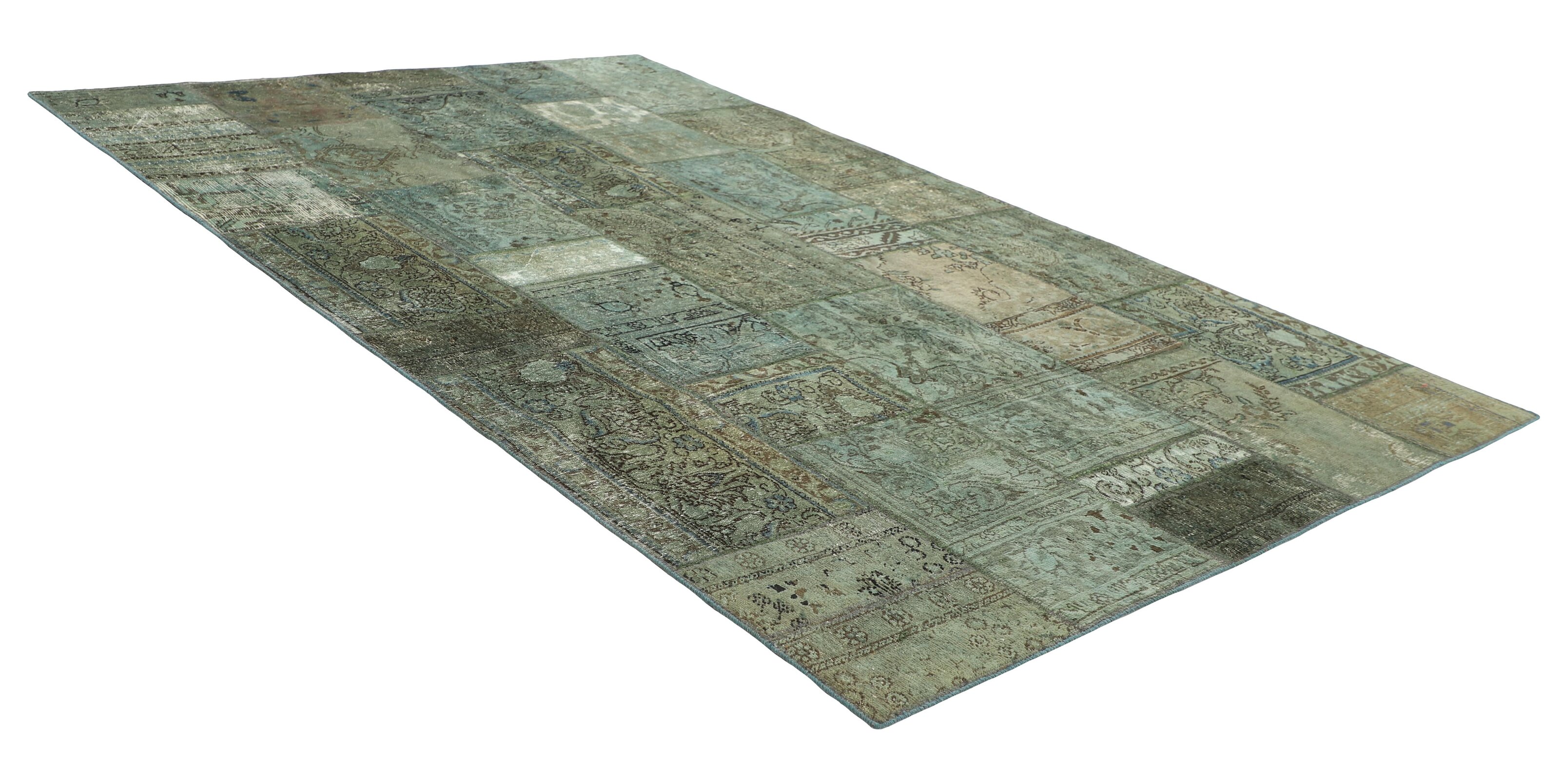 Vintage PatchworkItem no.: 1516059 Size: 205 cm x 309 cmVintage Royals are antique hand knotted rugs of Persian origin. The Patchwork Collection consists of old rugs that have been beyond repair, and instead cut into smaller pieces and used for patchwork. The Patchwork pieces are stonewashed and recoloured in light, dark, or bright colours, with the old pattern just being visible. The Patchwork rug forms a whole new and unique design. The rugs are of a very high quality and are available in large sizes. With the Vintage Royal Patchwork Collection, you do not just get a rug; you adorn your home with a unique piece of antique, Persian handcraft.