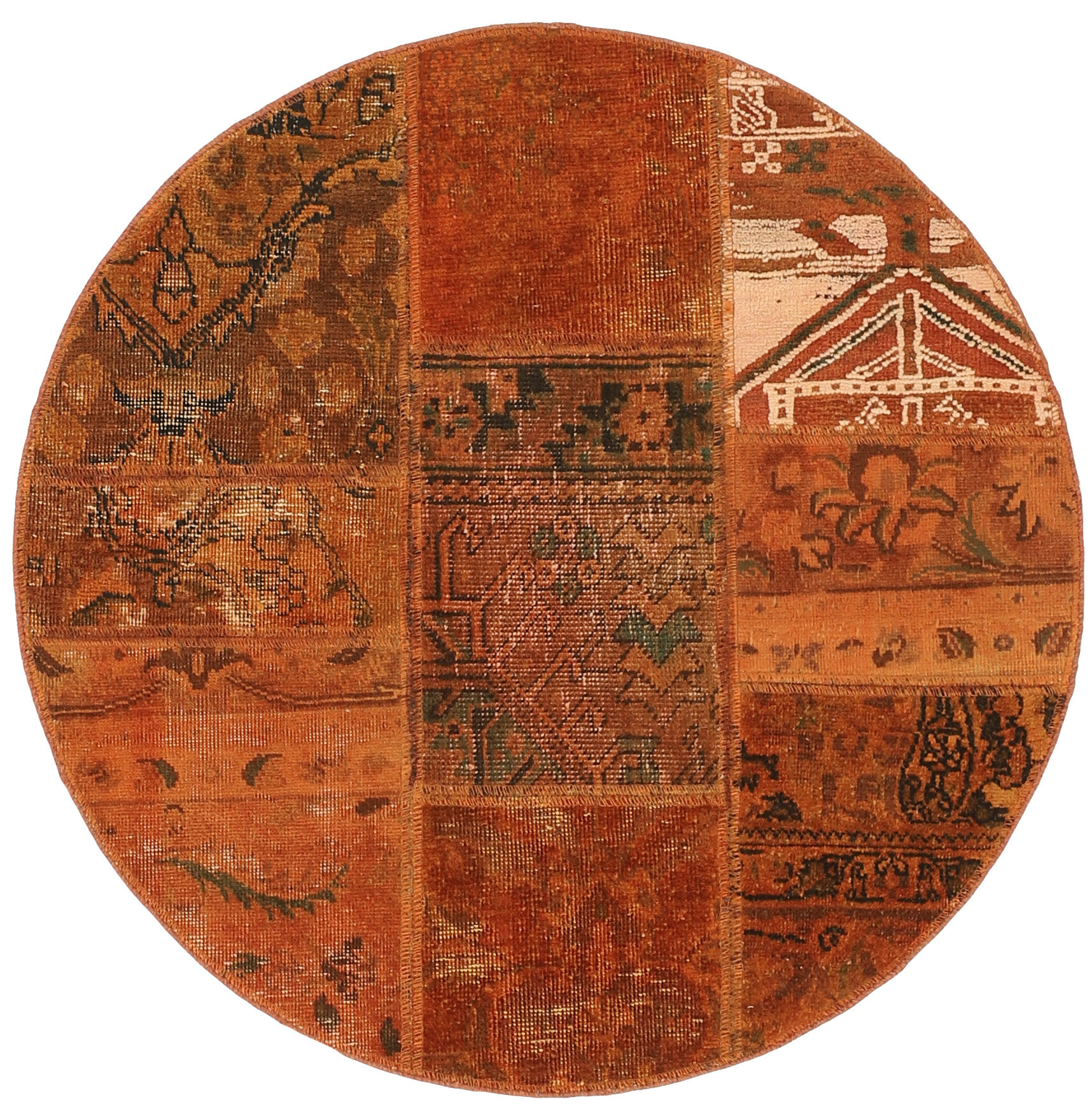 Vintage PatchworkItem no.: 1516076 Size: 100 cm x 100 cmVintage Royals are antique hand knotted rugs of Persian origin. The Patchwork Collection consists of old rugs that have been beyond repair, and instead cut into smaller pieces and used for patchwork. The Patchwork pieces are stonewashed and recoloured in light, dark, or bright colours, with the old pattern just being visible. The Patchwork rug forms a whole new and unique design. The rugs are of a very high quality and are available in large sizes. With the Vintage Royal Patchwork Collection, you do not just get a rug; you adorn your home with a unique piece of antique, Persian handcraft.