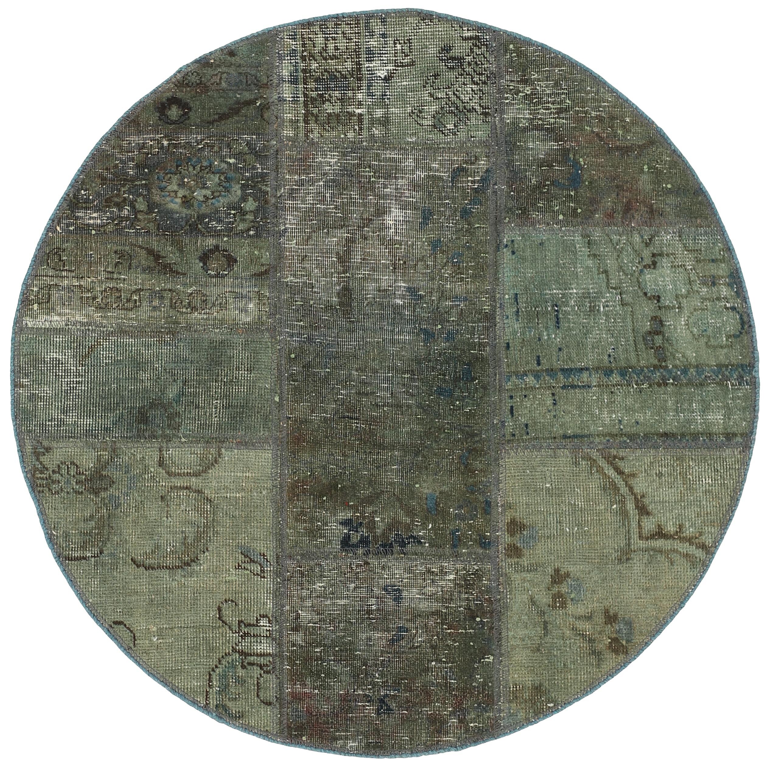Vintage PatchworkItem no.: 1516103 Size: 100 cm x 100 cmVintage Royals are antique hand knotted rugs of Persian origin. The Patchwork Collection consists of old rugs that have been beyond repair, and instead cut into smaller pieces and used for patchwork. The Patchwork pieces are stonewashed and recoloured in light, dark, or bright colours, with the old pattern just being visible. The Patchwork rug forms a whole new and unique design. The rugs are of a very high quality and are available in large sizes. With the Vintage Royal Patchwork Collection, you do not just get a rug; you adorn your home with a unique piece of antique, Persian handcraft.