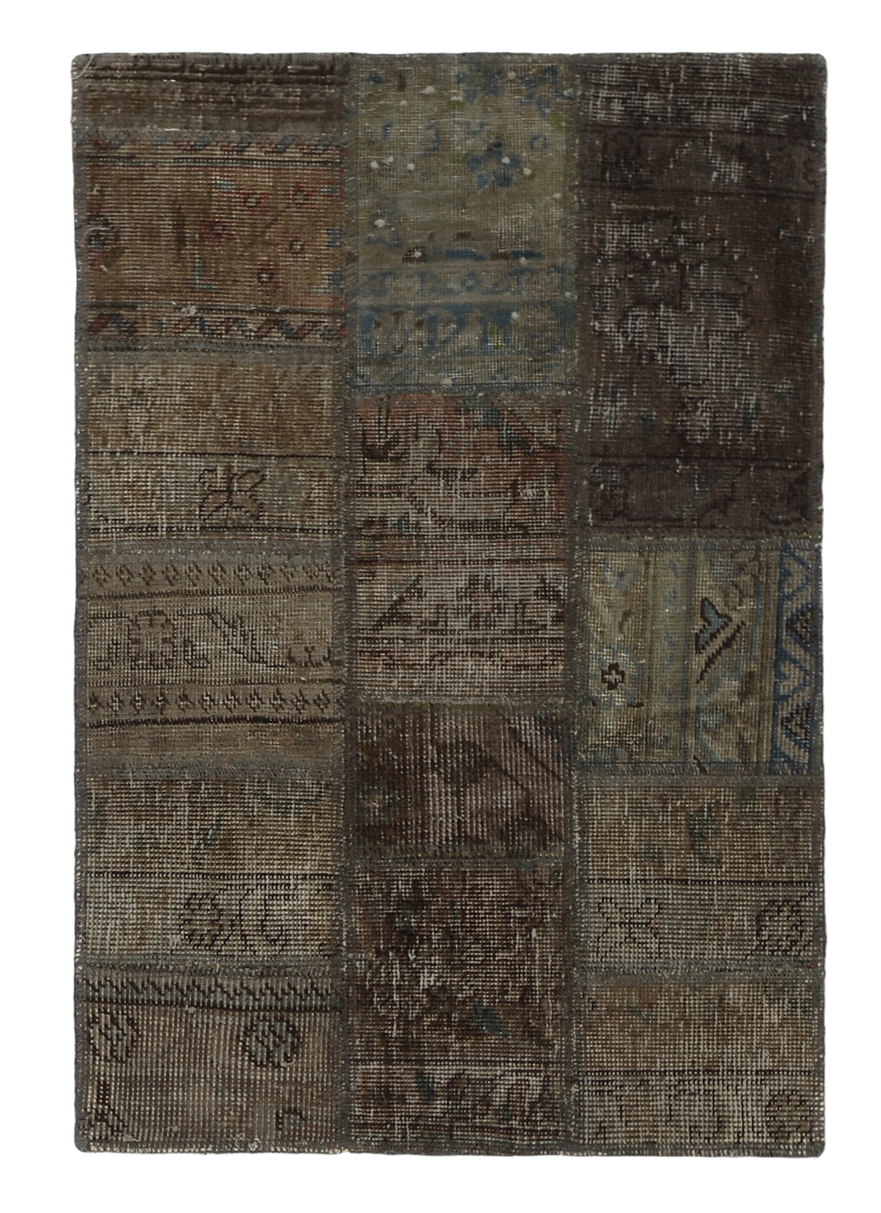 Vintage PatchworkItem no.: 1516123 Size: 60 cm x 90 cmVintage Royals are antique hand knotted rugs of Persian origin. The Patchwork Collection consists of old rugs that have been beyond repair, and instead cut into smaller pieces and used for patchwork. The Patchwork pieces are stonewashed and recoloured in light, dark, or bright colours, with the old pattern just being visible. The Patchwork rug forms a whole new and unique design. The rugs are of a very high quality and are available in large sizes. With the Vintage Royal Patchwork Collection, you do not just get a rug; you adorn your home with a unique piece of antique, Persian handcraft.