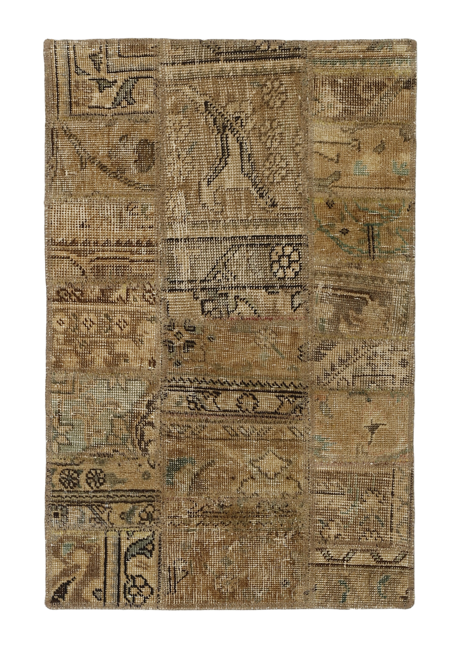 Vintage PatchworkItem no.: 1516129 Size: 60 cm x 90 cmVintage Royals are antique hand knotted rugs of Persian origin. The Patchwork Collection consists of old rugs that have been beyond repair, and instead cut into smaller pieces and used for patchwork. The Patchwork pieces are stonewashed and recoloured in light, dark, or bright colours, with the old pattern just being visible. The Patchwork rug forms a whole new and unique design. The rugs are of a very high quality and are available in large sizes. With the Vintage Royal Patchwork Collection, you do not just get a rug; you adorn your home with a unique piece of antique, Persian handcraft.