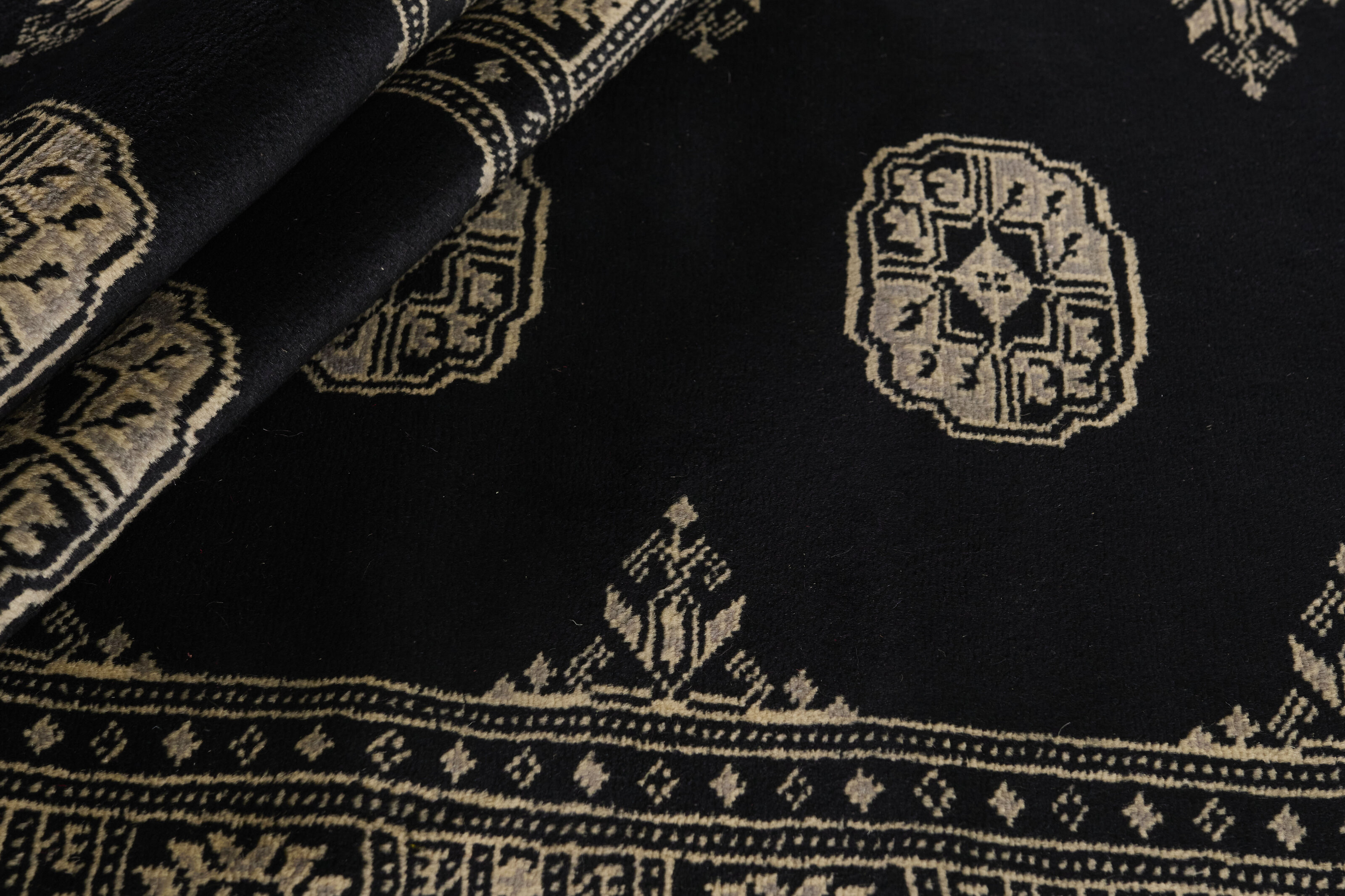 The 2-Ply rugs are produced in Lahore, Pakistan’s second largest city, which is also is the centre of the country’s hand knotted rug production. The rugs most often have the Tekke and Bokara patterns, which were originally inspired by patterns from Turkmenistan. The people of the Tekke Tribe, which was the largest nomadic tribe in Turkmenistan, were known as very industrious rug producers. The term Ply indicates the number of threads wound together to produce the yarn itself; 2-Ply thus guarantees that two threads were wound together during the knotting to make the yarn. The quality of wool is particularly soft and shining, and the warm-coloured patterns are simple and harmonious.