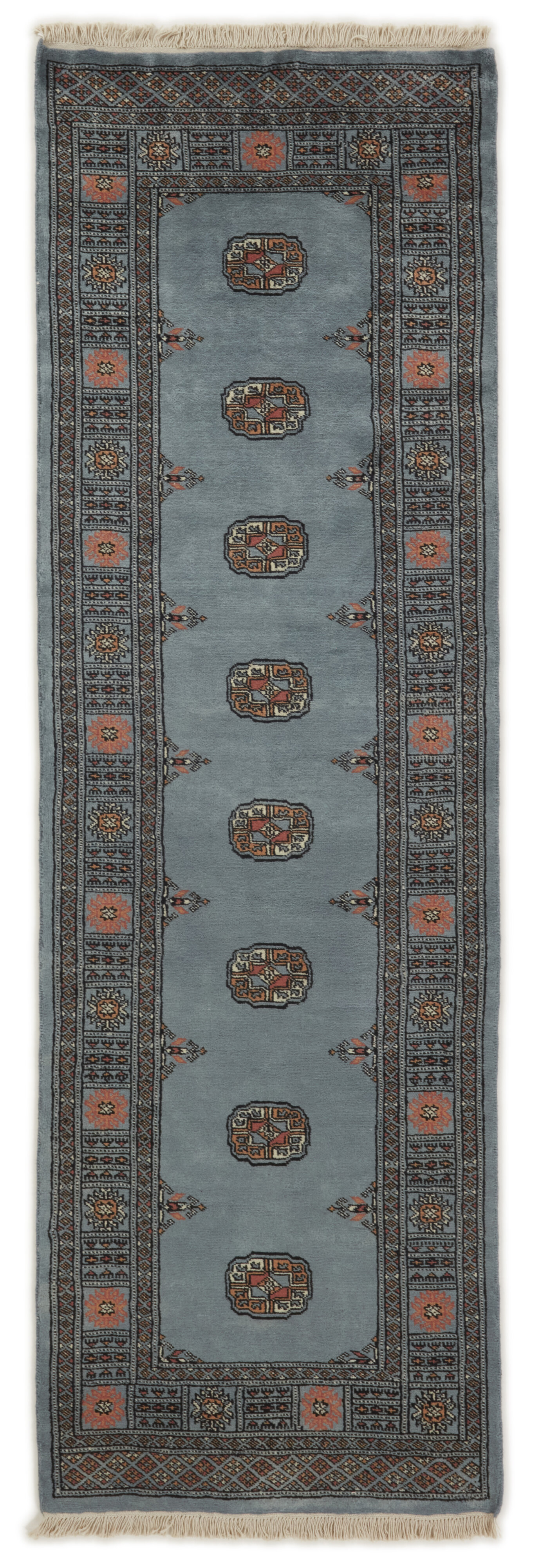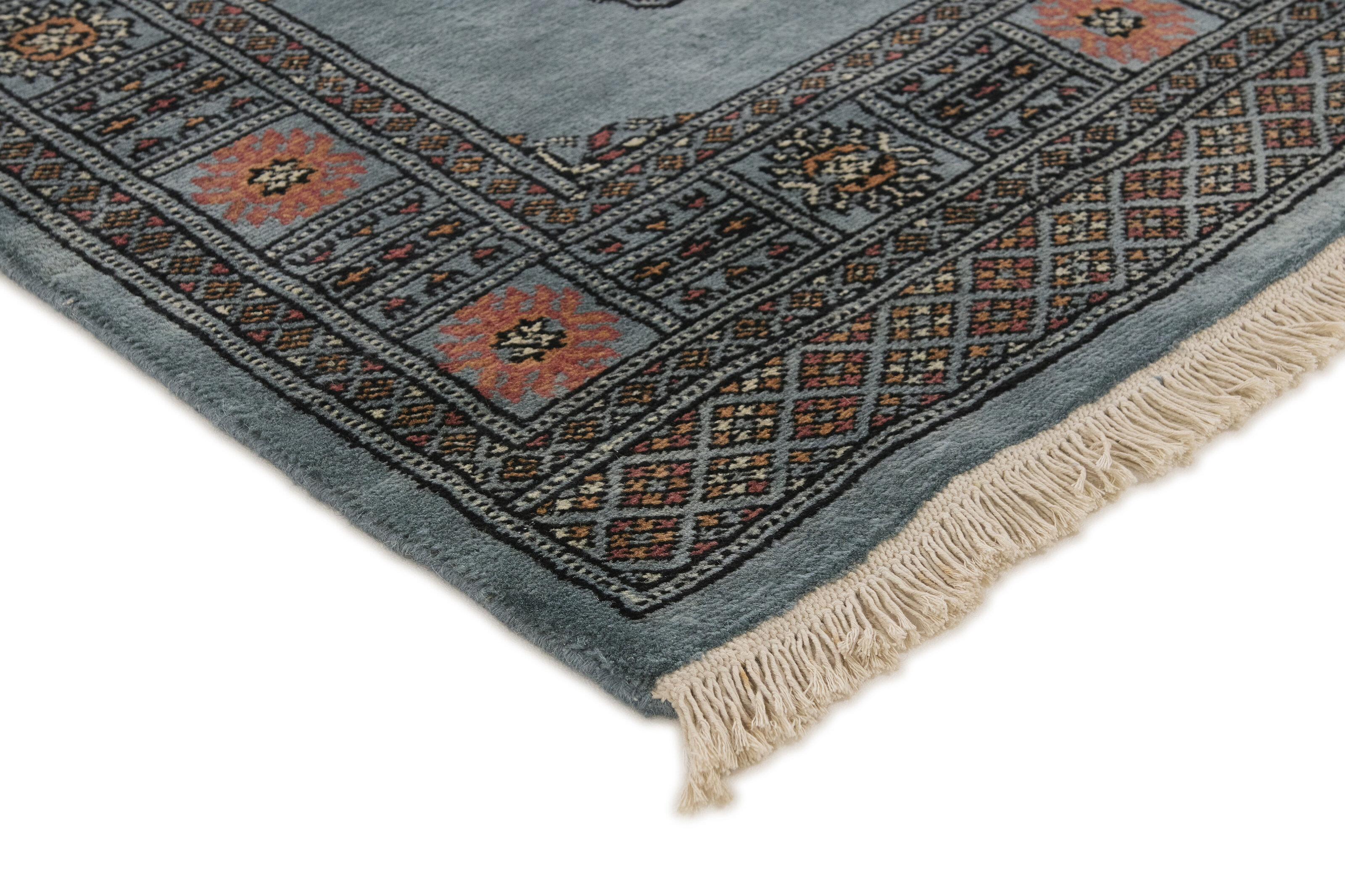 The 2-Ply rugs are produced in Lahore, Pakistan’s second largest city, which is also is the centre of the country’s hand knotted rug production. The rugs most often have the Tekke and Bokara patterns, which were originally inspired by patterns from Turkmenistan. The people of the Tekke Tribe, which was the largest nomadic tribe in Turkmenistan, were known as very industrious rug producers. The term Ply indicates the number of threads wound together to produce the yarn itself; 2-Ply thus guarantees that two threads were wound together during the knotting to make the yarn. The quality of wool is particularly soft and shining, and the warm-coloured patterns are simple and harmonious.