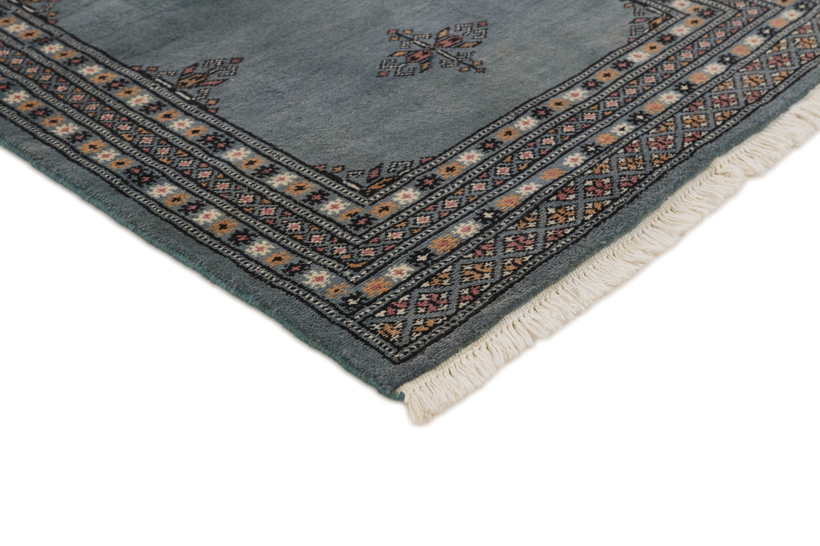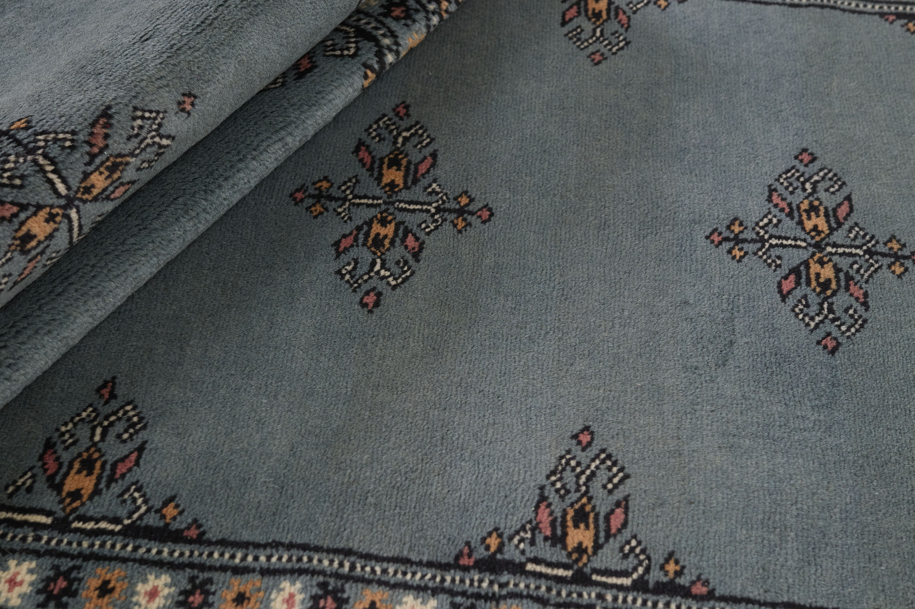 The 2-Ply rugs are produced in Lahore, Pakistan’s second largest city, which is also is the centre of the country’s hand knotted rug production. The rugs most often have the Tekke and Bokara patterns, which were originally inspired by patterns from Turkmenistan. The people of the Tekke Tribe, which was the largest nomadic tribe in Turkmenistan, were known as very industrious rug producers. The term Ply indicates the number of threads wound together to produce the yarn itself; 2-Ply thus guarantees that two threads were wound together during the knotting to make the yarn. The quality of wool is particularly soft and shining, and the warm-coloured patterns are simple and harmonious.