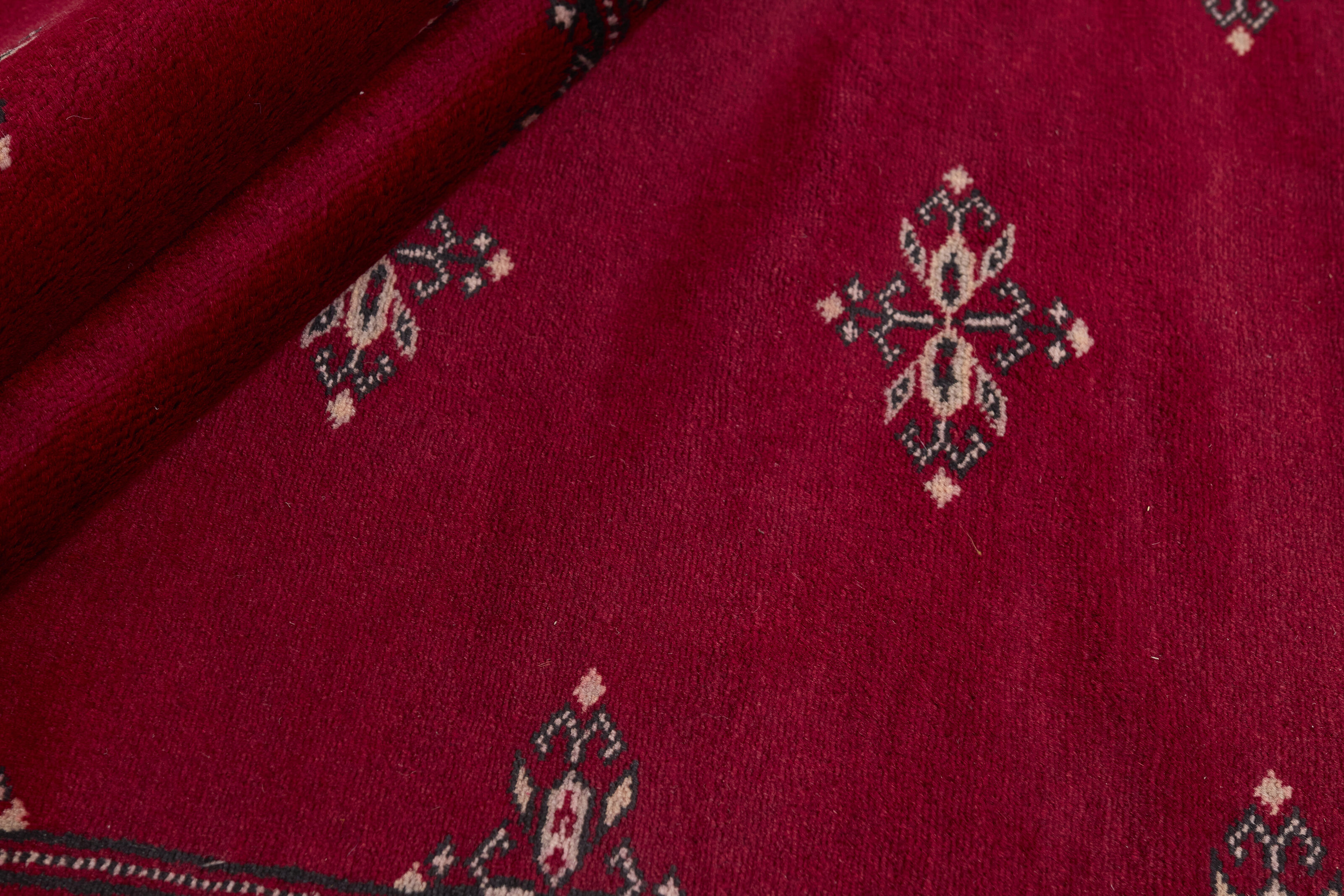 The 2-Ply rugs are produced in Lahore, Pakistan’s second largest city, which is also is the centre of the country’s hand knotted rug production. The rugs most often have the Tekke and Bokara patterns, which were originally inspired by patterns from Turkmenistan. The people of the Tekke Tribe, which was the largest nomadic tribe in Turkmenistan, were known as very industrious rug producers. The term Ply indicates the number of threads wound together to produce the yarn itself; 2-Ply thus guarantees that two threads were wound together during the knotting to make the yarn. The quality of wool is particularly soft and shining, and the warm-coloured patterns are simple and harmonious.