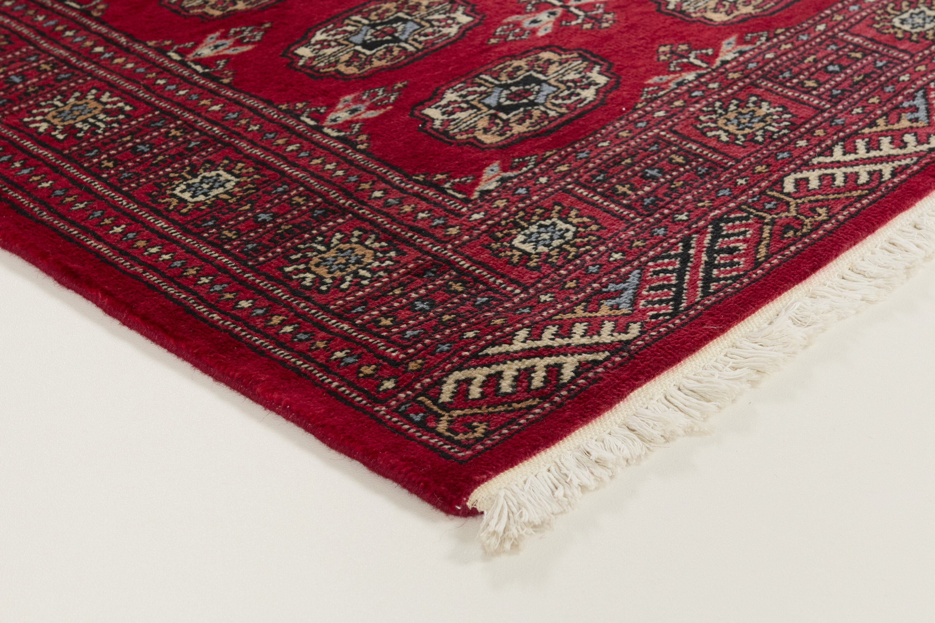 The 3-Ply rugs are produced in Lahore, Pakistan’s second largest city, which is also is the centre of the country’s hand knotted rug production. The rugs most often have the Tekke and Bokara patterns, which were originally inspired by patterns from Turkmenistan. The people of the Tekke Tribe, which was the largest nomadic tribe in Turkmenistan, were known as very industrious rug producers. The term Ply indicates the number of threads wound together to produce the yarn itself; 3-Ply thus guarantees that the yarn consists of three threads wound together. 3-Ply rugs appear thicker and softer than 2-Ply, as more wool is used to produce the rug. The quality of wool is particularly soft and shining, and the warm-coloured patterns are simple and harmonious.