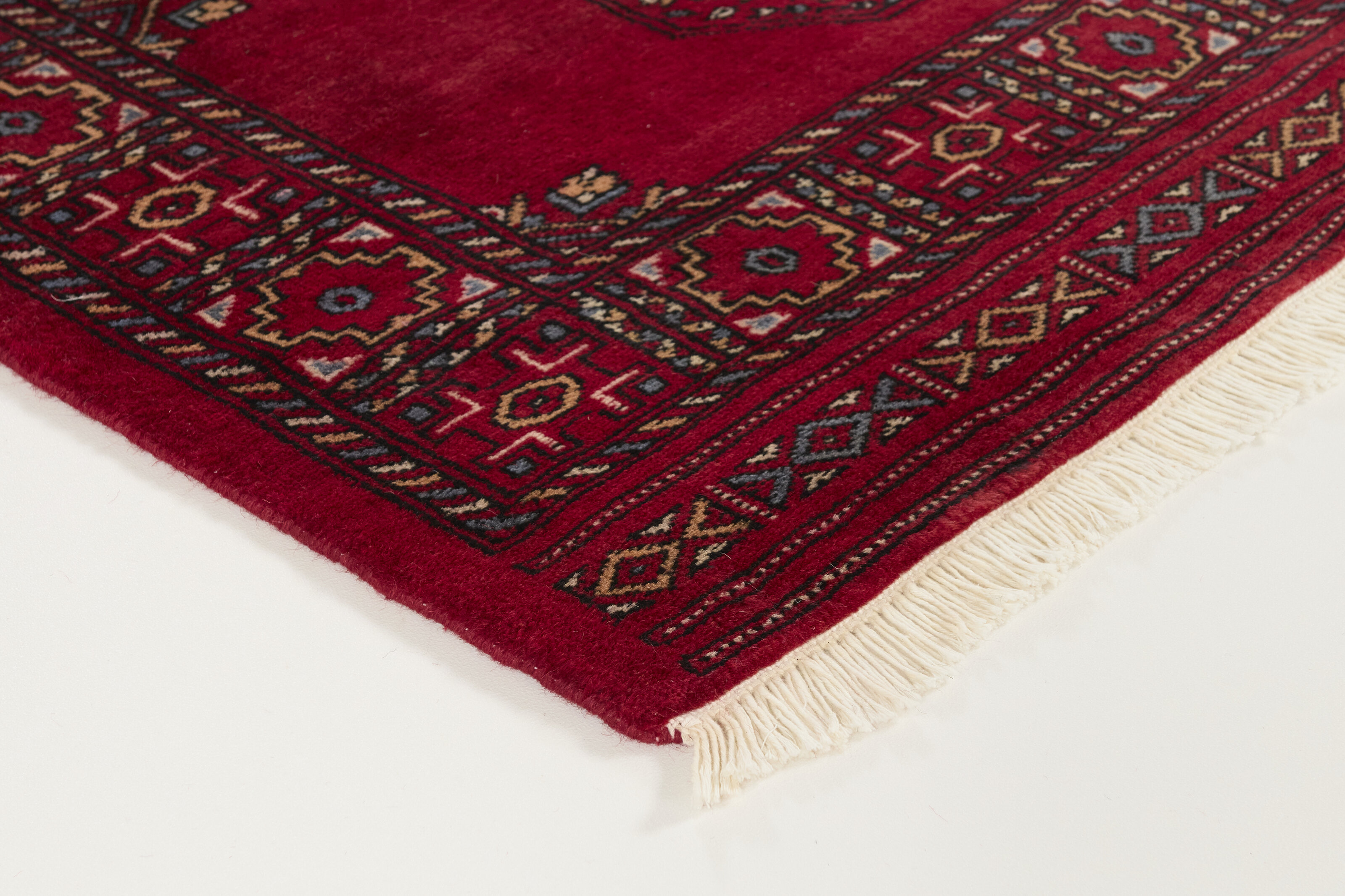 The 3-Ply rugs are produced in Lahore, Pakistan’s second largest city, which is also is the centre of the country’s hand knotted rug production. The rugs most often have the Tekke and Bokara patterns, which were originally inspired by patterns from Turkmenistan. The people of the Tekke Tribe, which was the largest nomadic tribe in Turkmenistan, were known as very industrious rug producers. The term Ply indicates the number of threads wound together to produce the yarn itself; 3-Ply thus guarantees that the yarn consists of three threads wound together. 3-Ply rugs appear thicker and softer than 2-Ply, as more wool is used to produce the rug. The quality of wool is particularly soft and shining, and the warm-coloured patterns are simple and harmonious.