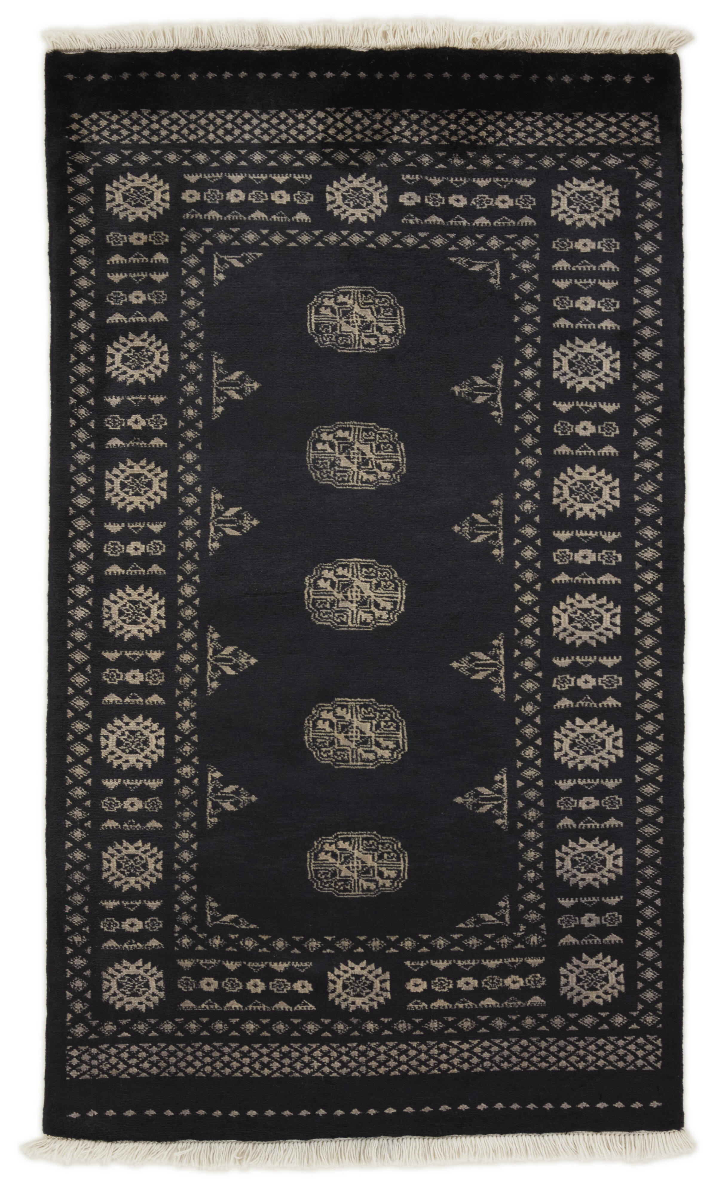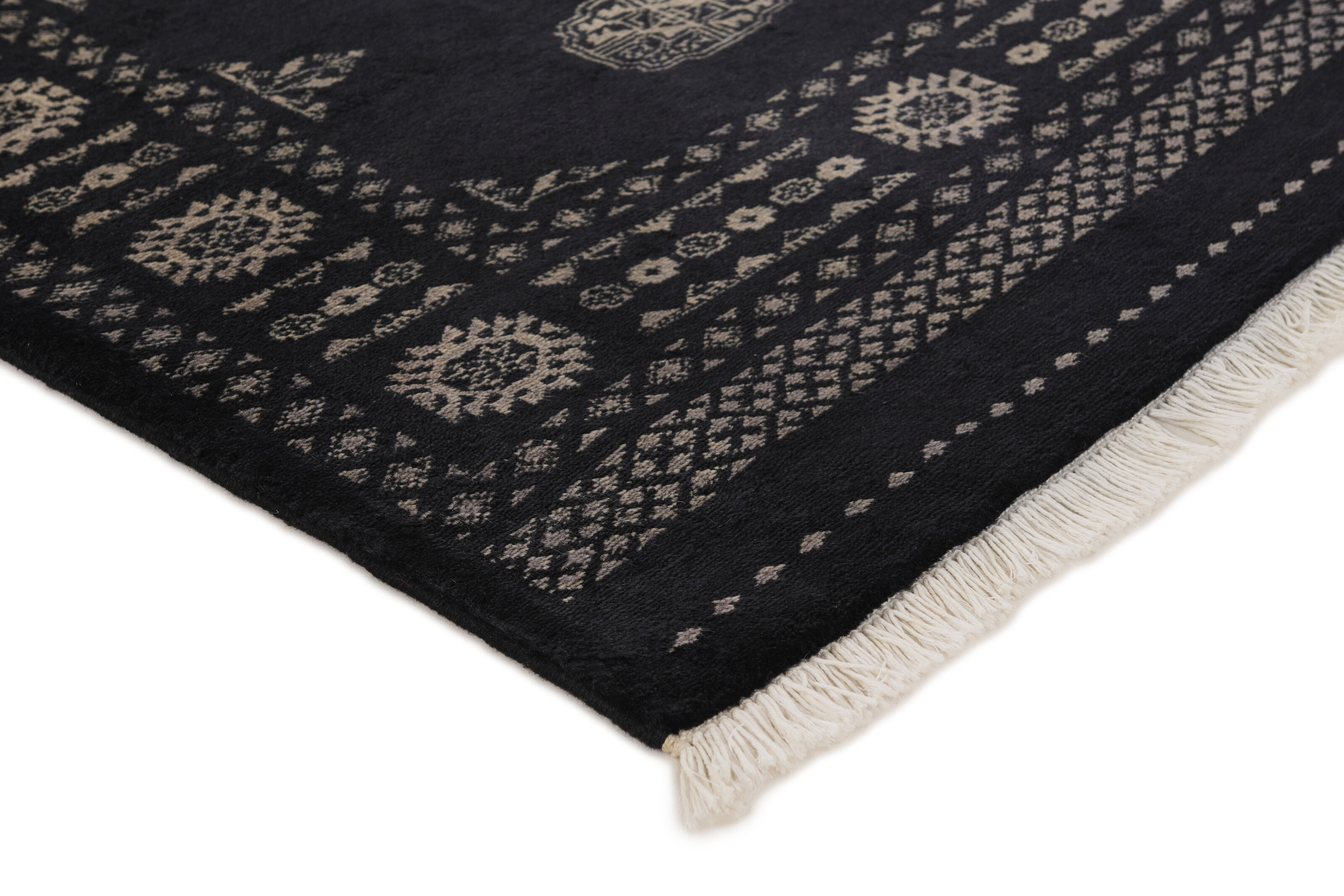 The 3-Ply rugs are produced in Lahore, Pakistan’s second largest city, which is also is the centre of the country’s hand knotted rug production. The rugs most often have the Tekke and Bokara patterns, which were originally inspired by patterns from Turkmenistan. The people of the Tekke Tribe, which was the largest nomadic tribe in Turkmenistan, were known as very industrious rug producers. The term Ply indicates the number of threads wound together to produce the yarn itself; 3-Ply thus guarantees that the yarn consists of three threads wound together. 3-Ply rugs appear thicker and softer than 2-Ply, as more wool is used to produce the rug. The quality of wool is particularly soft and shining, and the warm-coloured patterns are simple and harmonious.