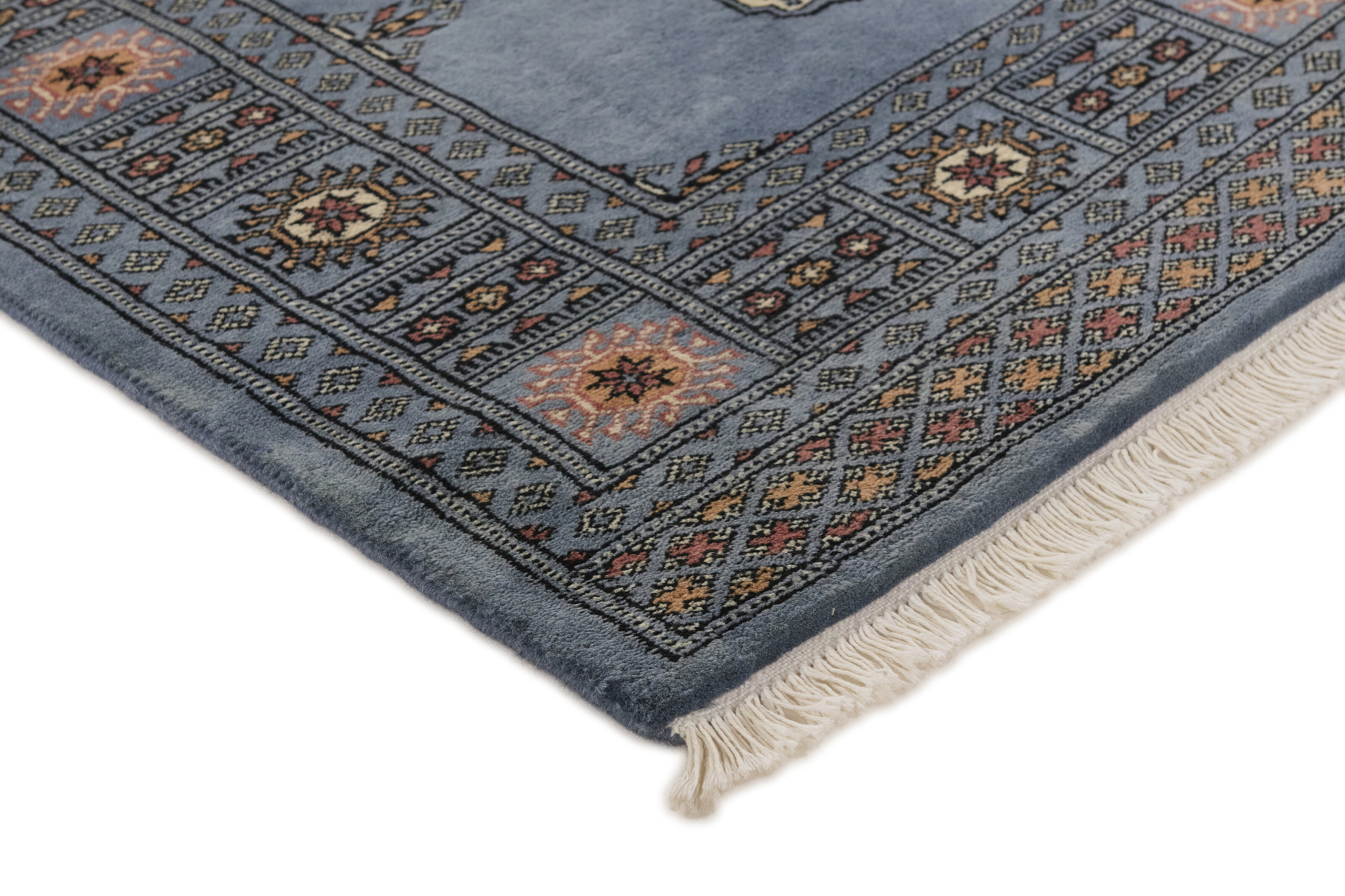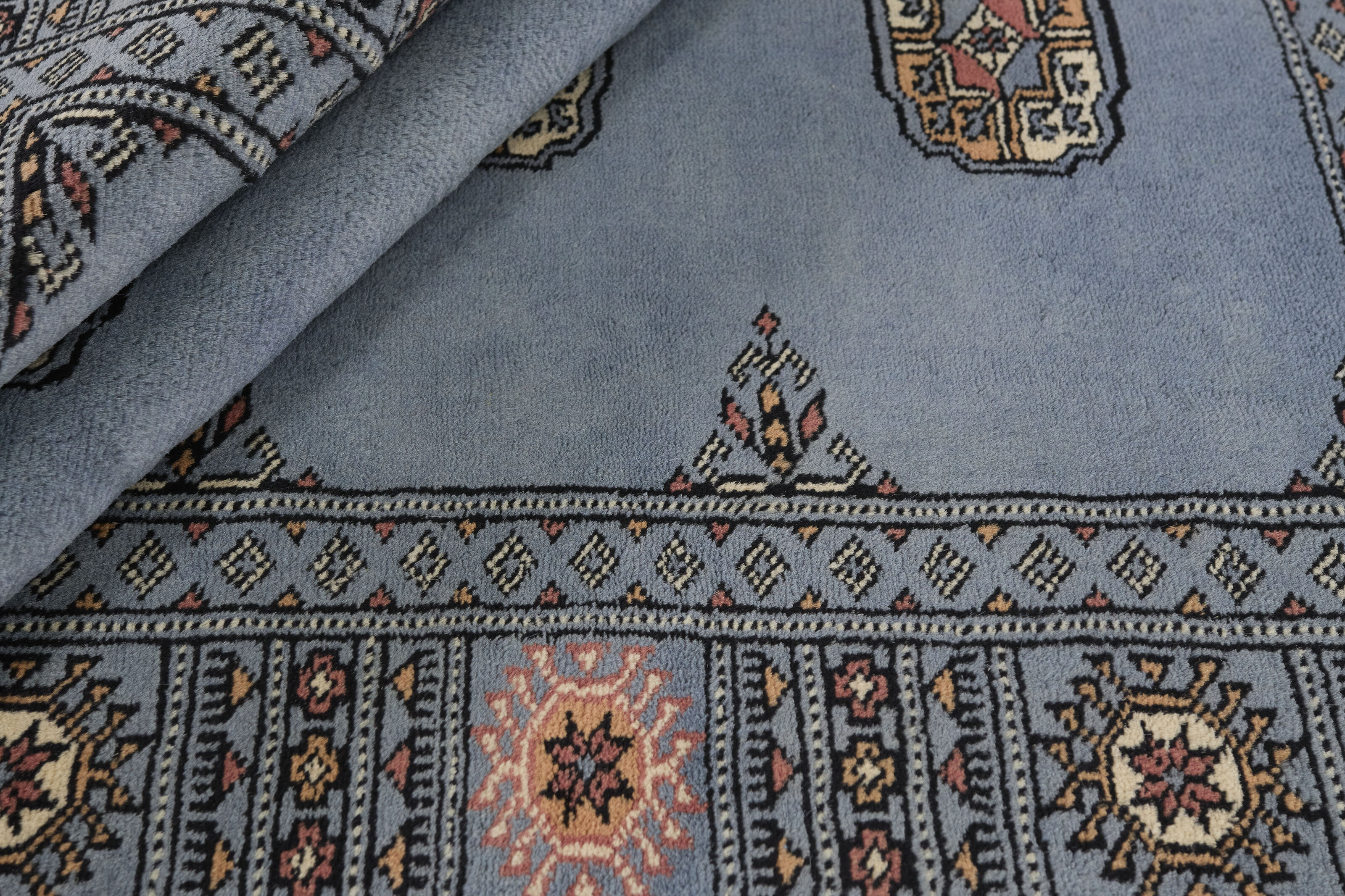 The 3-Ply rugs are produced in Lahore, Pakistan’s second largest city, which is also is the centre of the country’s hand knotted rug production. The rugs most often have the Tekke and Bokara patterns, which were originally inspired by patterns from Turkmenistan. The people of the Tekke Tribe, which was the largest nomadic tribe in Turkmenistan, were known as very industrious rug producers. The term Ply indicates the number of threads wound together to produce the yarn itself; 3-Ply thus guarantees that the yarn consists of three threads wound together. 3-Ply rugs appear thicker and softer than 2-Ply, as more wool is used to produce the rug. The quality of wool is particularly soft and shining, and the warm-coloured patterns are simple and harmonious.