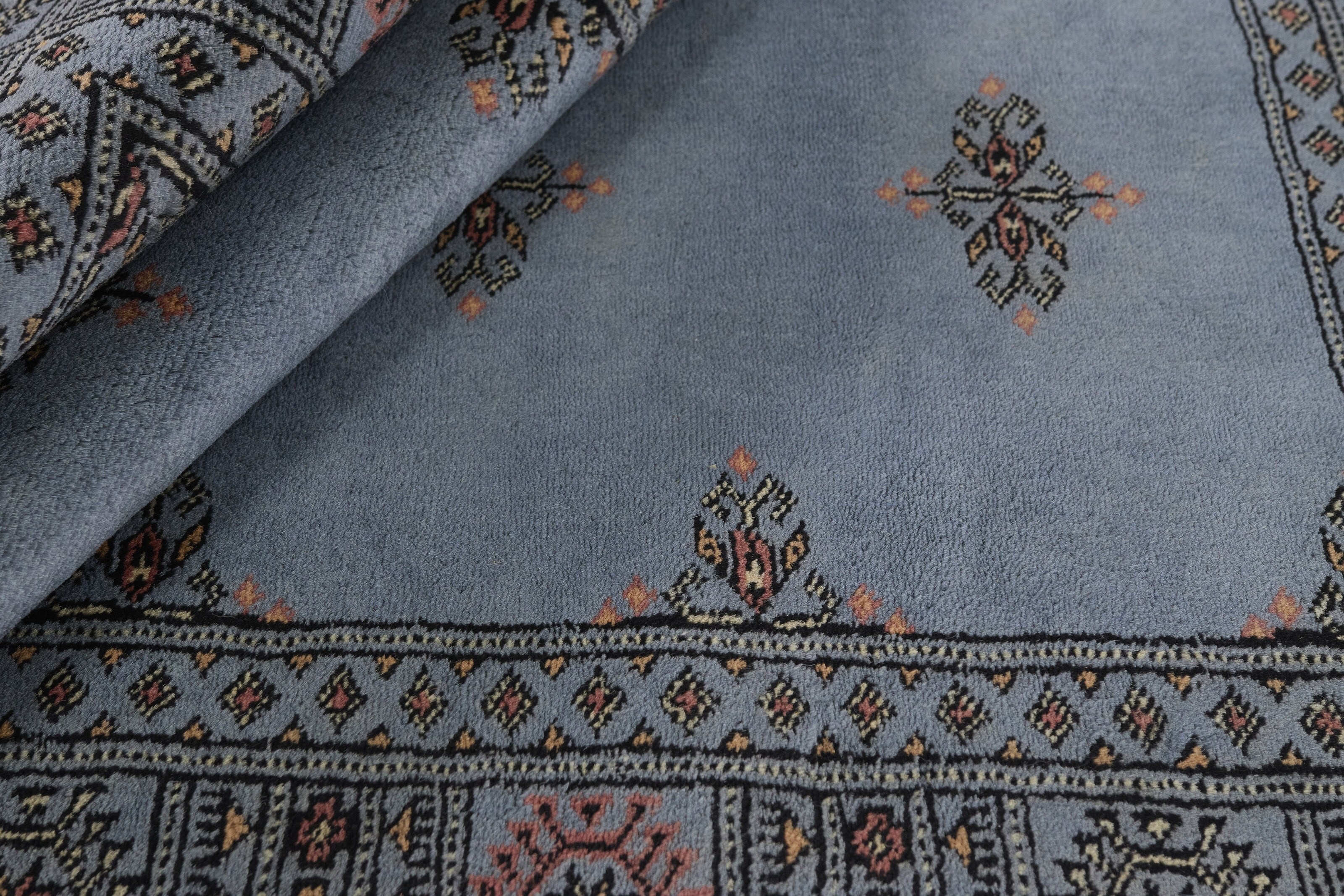 The 3-Ply rugs are produced in Lahore, Pakistan’s second largest city, which is also is the centre of the country’s hand knotted rug production. The rugs most often have the Tekke and Bokara patterns, which were originally inspired by patterns from Turkmenistan. The people of the Tekke Tribe, which was the largest nomadic tribe in Turkmenistan, were known as very industrious rug producers. The term Ply indicates the number of threads wound together to produce the yarn itself; 3-Ply thus guarantees that the yarn consists of three threads wound together. 3-Ply rugs appear thicker and softer than 2-Ply, as more wool is used to produce the rug. The quality of wool is particularly soft and shining, and the warm-coloured patterns are simple and harmonious.