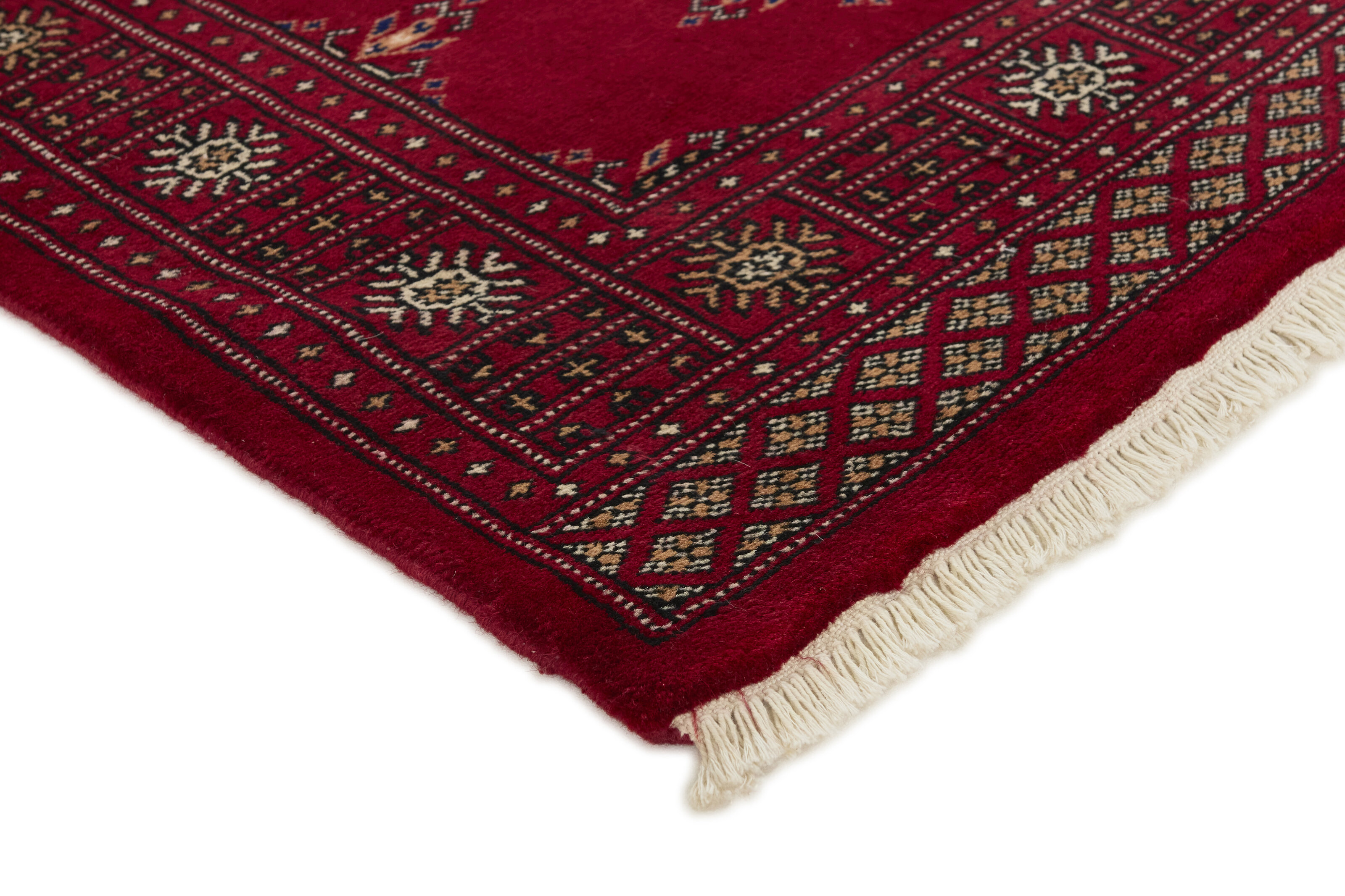 The 3-Ply rugs are produced in Lahore, Pakistan’s second largest city, which is also is the centre of the country’s hand knotted rug production. The rugs most often have the Tekke and Bokara patterns, which were originally inspired by patterns from Turkmenistan. The people of the Tekke Tribe, which was the largest nomadic tribe in Turkmenistan, were known as very industrious rug producers. The term Ply indicates the number of threads wound together to produce the yarn itself; 3-Ply thus guarantees that the yarn consists of three threads wound together. 3-Ply rugs appear thicker and softer than 2-Ply, as more wool is used to produce the rug. The quality of wool is particularly soft and shining, and the warm-coloured patterns are simple and harmonious.