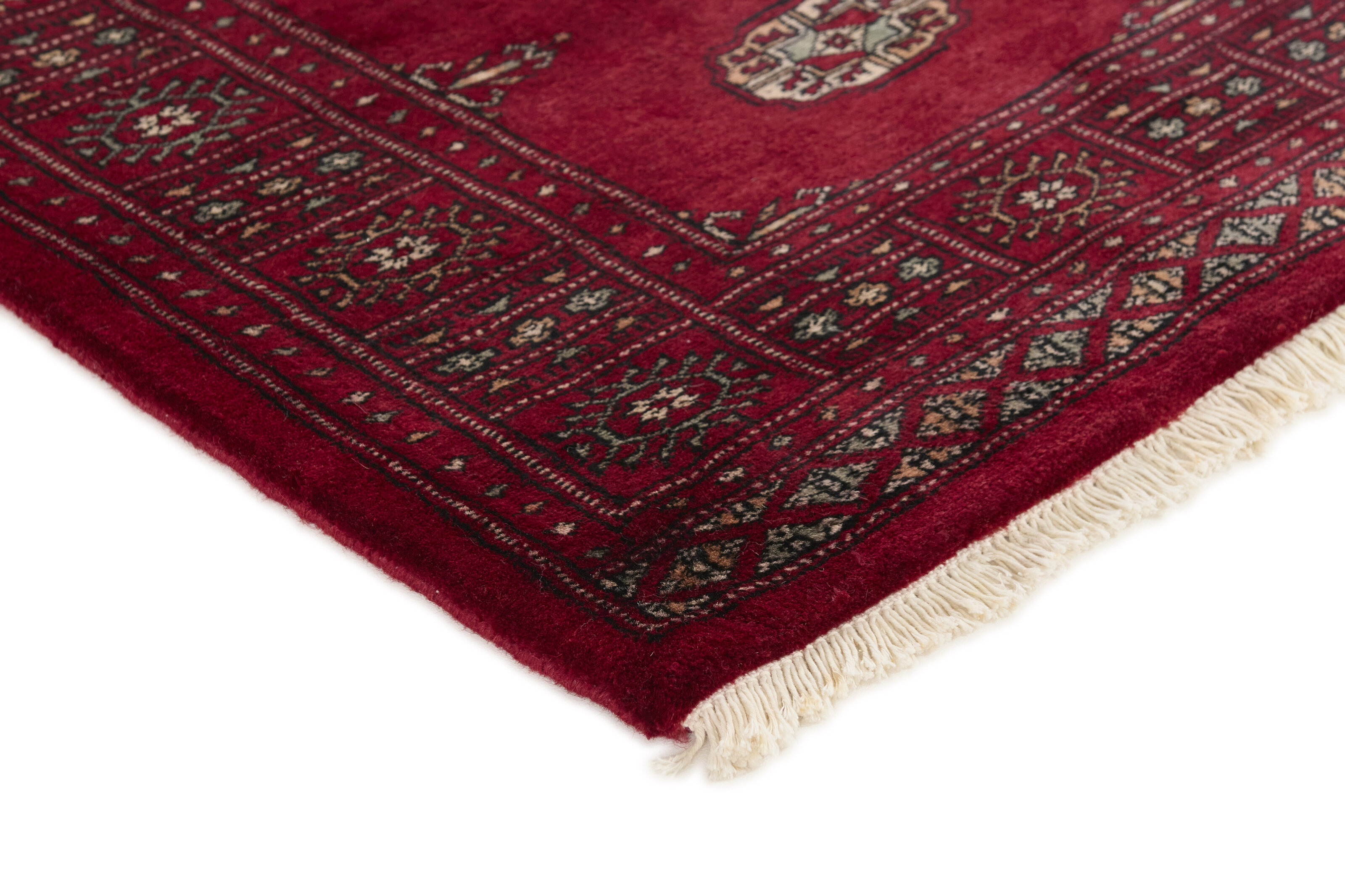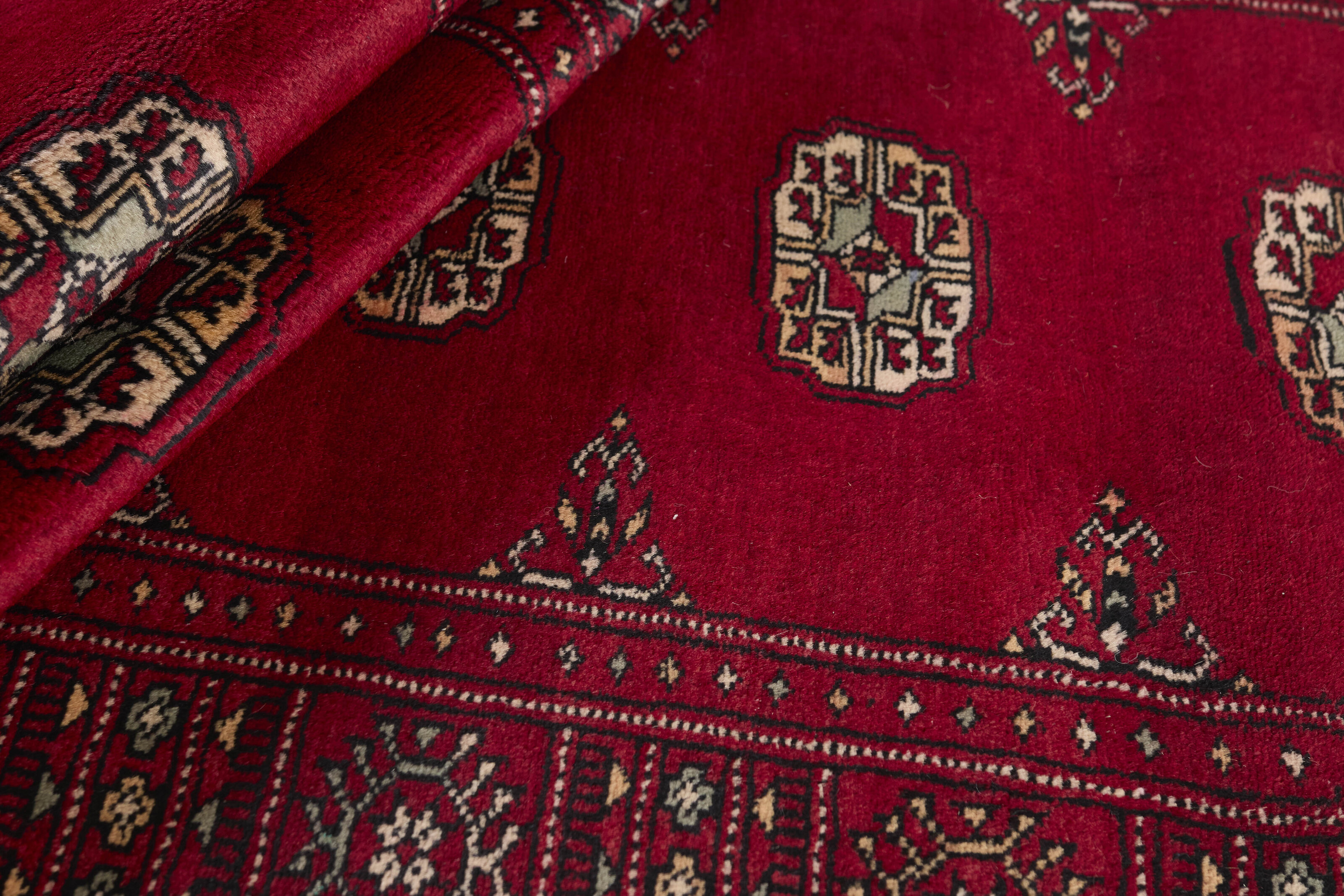 The 3-Ply rugs are produced in Lahore, Pakistan’s second largest city, which is also is the centre of the country’s hand knotted rug production. The rugs most often have the Tekke and Bokara patterns, which were originally inspired by patterns from Turkmenistan. The people of the Tekke Tribe, which was the largest nomadic tribe in Turkmenistan, were known as very industrious rug producers. The term Ply indicates the number of threads wound together to produce the yarn itself; 3-Ply thus guarantees that the yarn consists of three threads wound together. 3-Ply rugs appear thicker and softer than 2-Ply, as more wool is used to produce the rug. The quality of wool is particularly soft and shining, and the warm-coloured patterns are simple and harmonious.