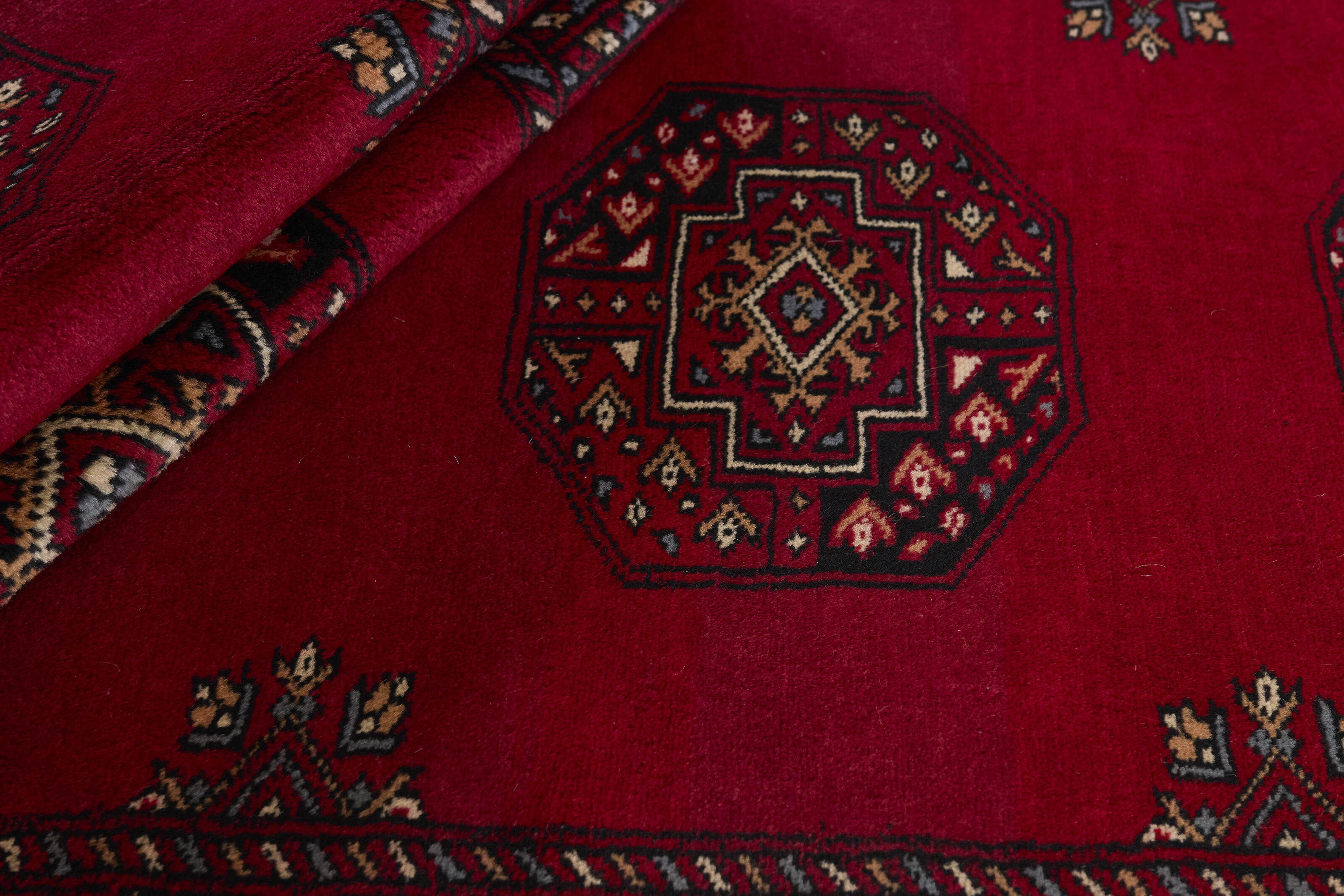 The 3-Ply rugs are produced in Lahore, Pakistan’s second largest city, which is also is the centre of the country’s hand knotted rug production. The rugs most often have the Tekke and Bokara patterns, which were originally inspired by patterns from Turkmenistan. The people of the Tekke Tribe, which was the largest nomadic tribe in Turkmenistan, were known as very industrious rug producers. The term Ply indicates the number of threads wound together to produce the yarn itself; 3-Ply thus guarantees that the yarn consists of three threads wound together. 3-Ply rugs appear thicker and softer than 2-Ply, as more wool is used to produce the rug. The quality of wool is particularly soft and shining, and the warm-coloured patterns are simple and harmonious.
