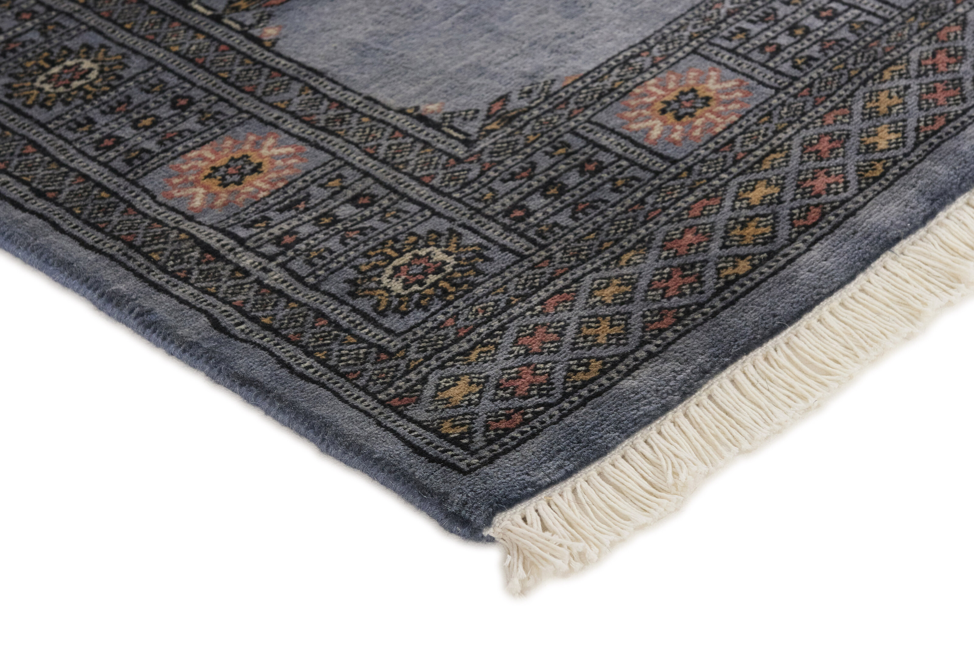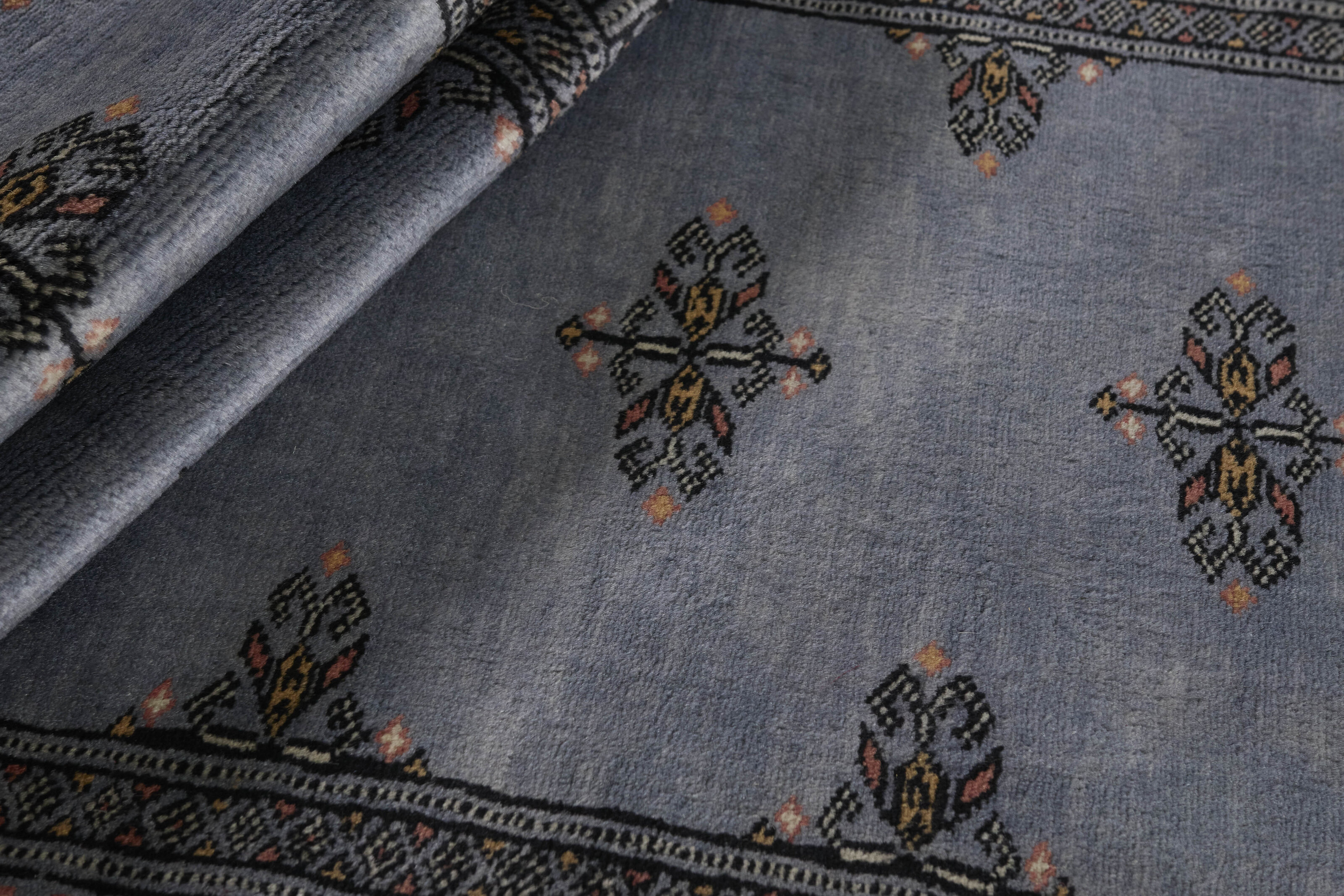 The 3-Ply rugs are produced in Lahore, Pakistan’s second largest city, which is also is the centre of the country’s hand knotted rug production. The rugs most often have the Tekke and Bokara patterns, which were originally inspired by patterns from Turkmenistan. The people of the Tekke Tribe, which was the largest nomadic tribe in Turkmenistan, were known as very industrious rug producers. The term Ply indicates the number of threads wound together to produce the yarn itself; 3-Ply thus guarantees that the yarn consists of three threads wound together. 3-Ply rugs appear thicker and softer than 2-Ply, as more wool is used to produce the rug. The quality of wool is particularly soft and shining, and the warm-coloured patterns are simple and harmonious.
