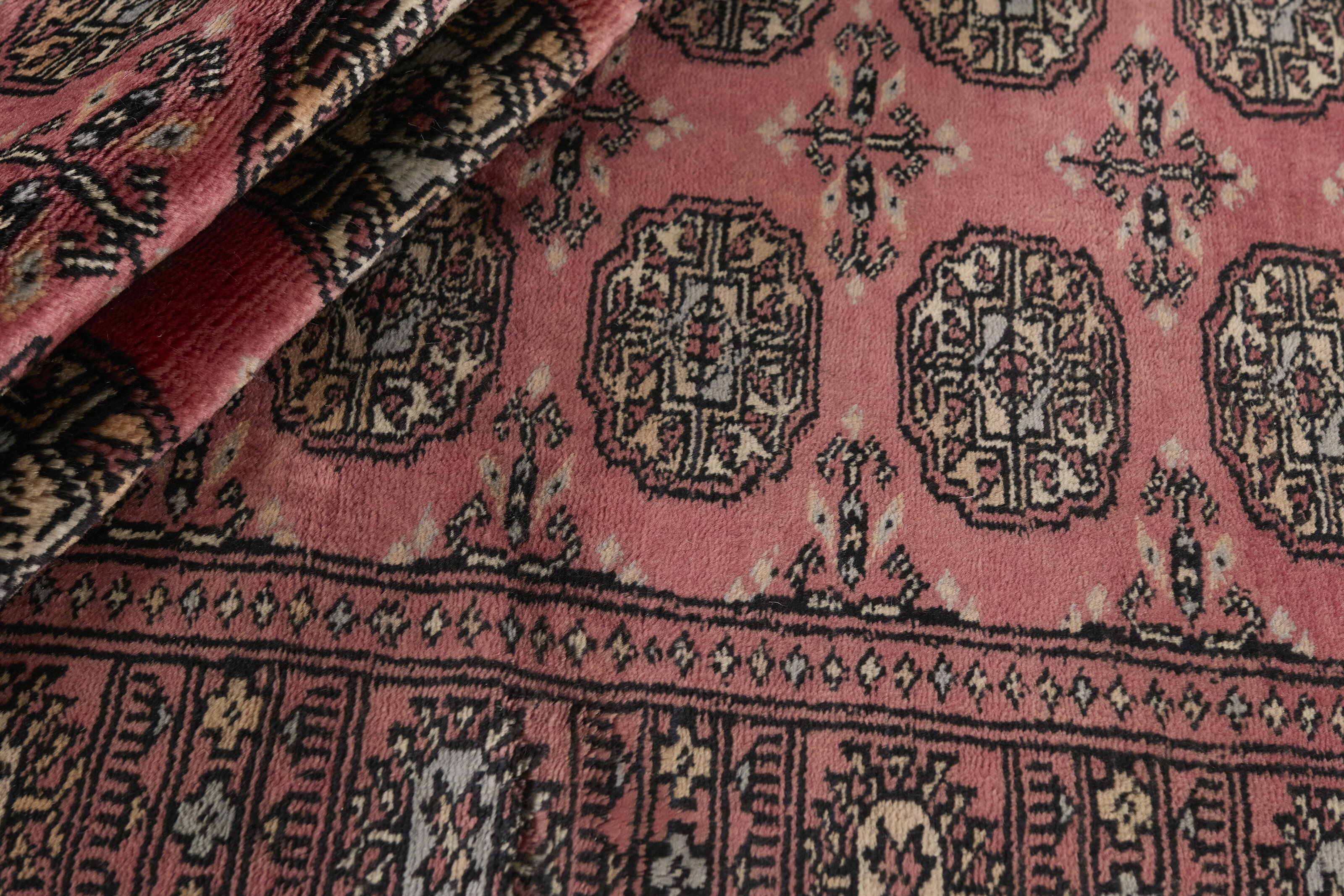 The 3-Ply rugs are produced in Lahore, Pakistan’s second largest city, which is also is the centre of the country’s hand knotted rug production. The rugs most often have the Tekke and Bokara patterns, which were originally inspired by patterns from Turkmenistan. The people of the Tekke Tribe, which was the largest nomadic tribe in Turkmenistan, were known as very industrious rug producers. The term Ply indicates the number of threads wound together to produce the yarn itself; 3-Ply thus guarantees that the yarn consists of three threads wound together. 3-Ply rugs appear thicker and softer than 2-Ply, as more wool is used to produce the rug. The quality of wool is particularly soft and shining, and the warm-coloured patterns are simple and harmonious.